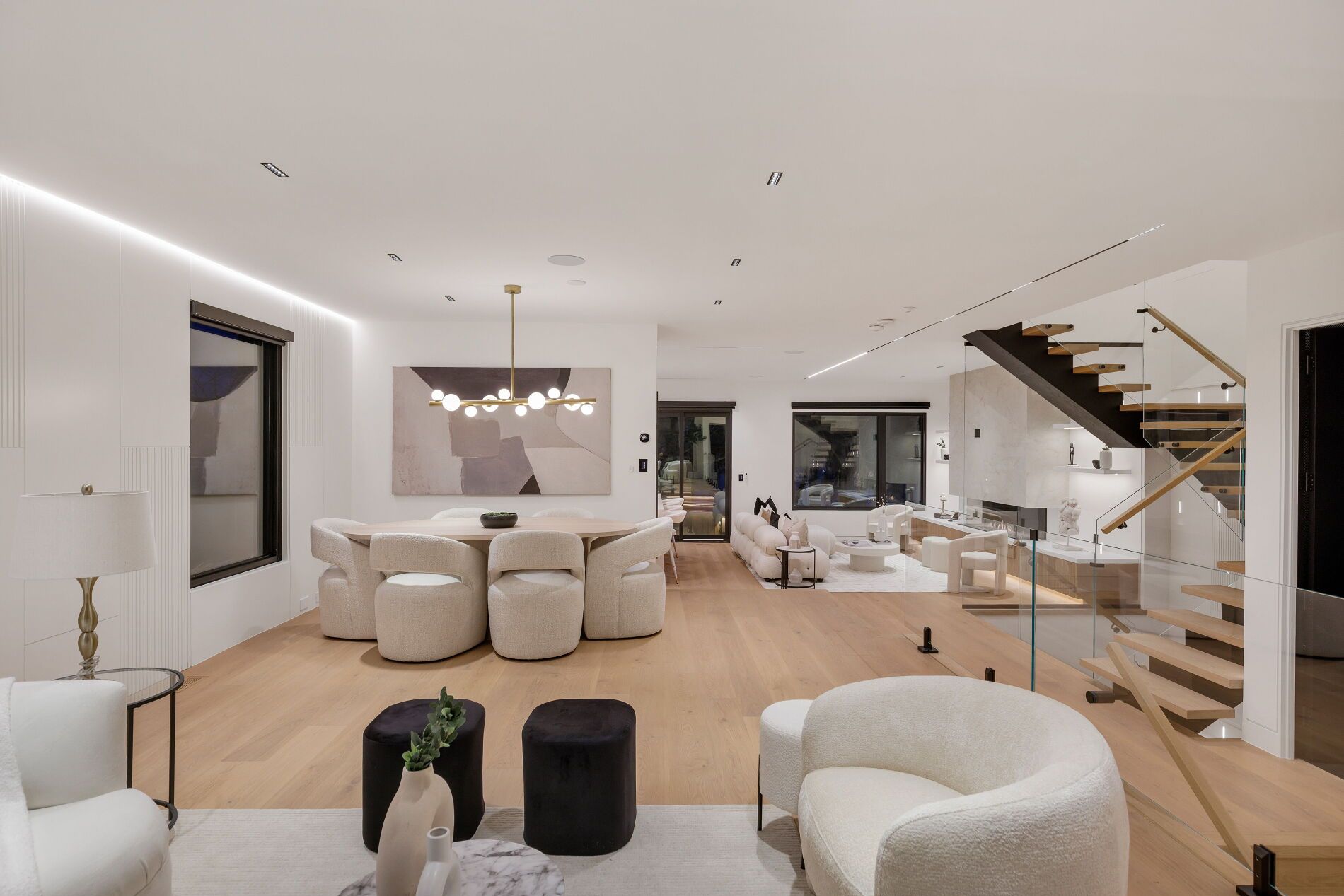 • Dramatic foyer and floating staircase create a striking first impression.