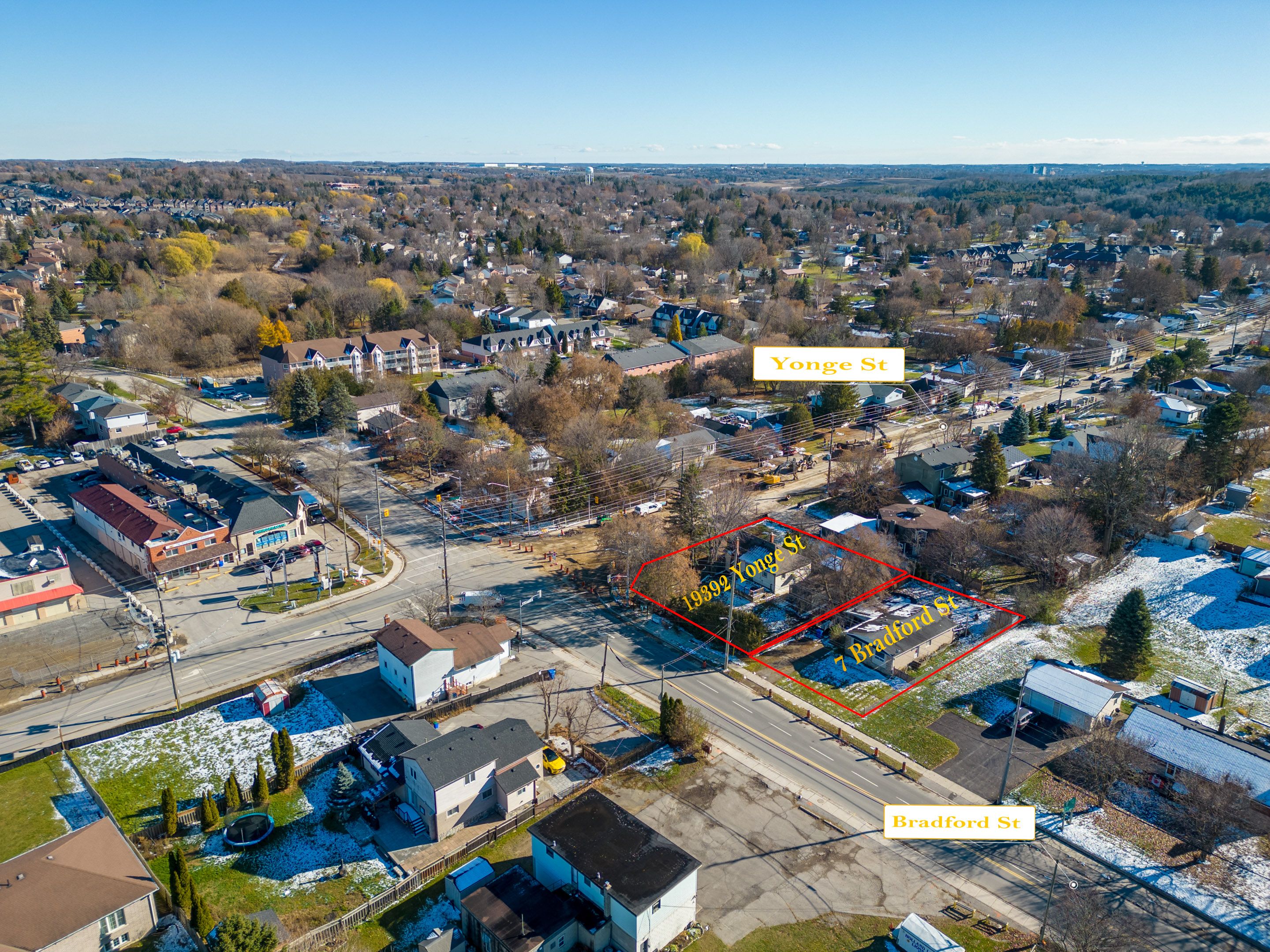 Corner of yonge and bradford streets in the growing town of holland landing minutes from upper canada mall and southlake regional health centre in newmarket. Evolving neighbourhood. Property is zoned r1 offering an array of options for future planning. The property next door is also available for sale, creating a unique assembly opportunity. Nearby proposal at yonge st. & thompson dr. Includes 97 residential units in four-storey townhomes, highlighting the area's growth.