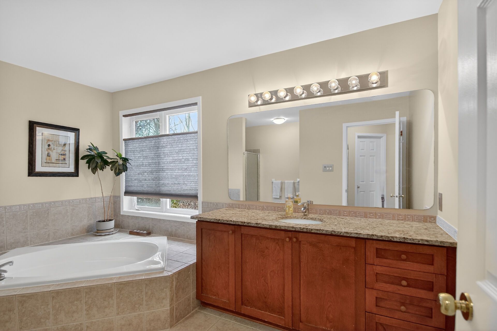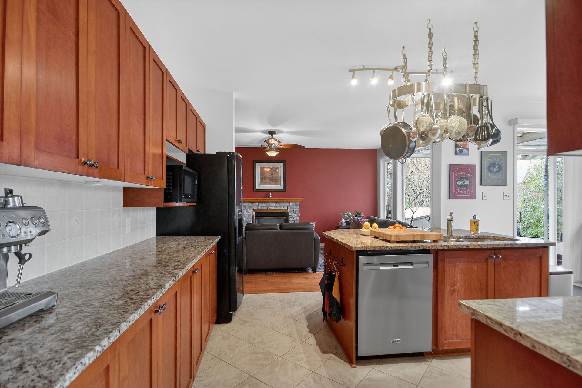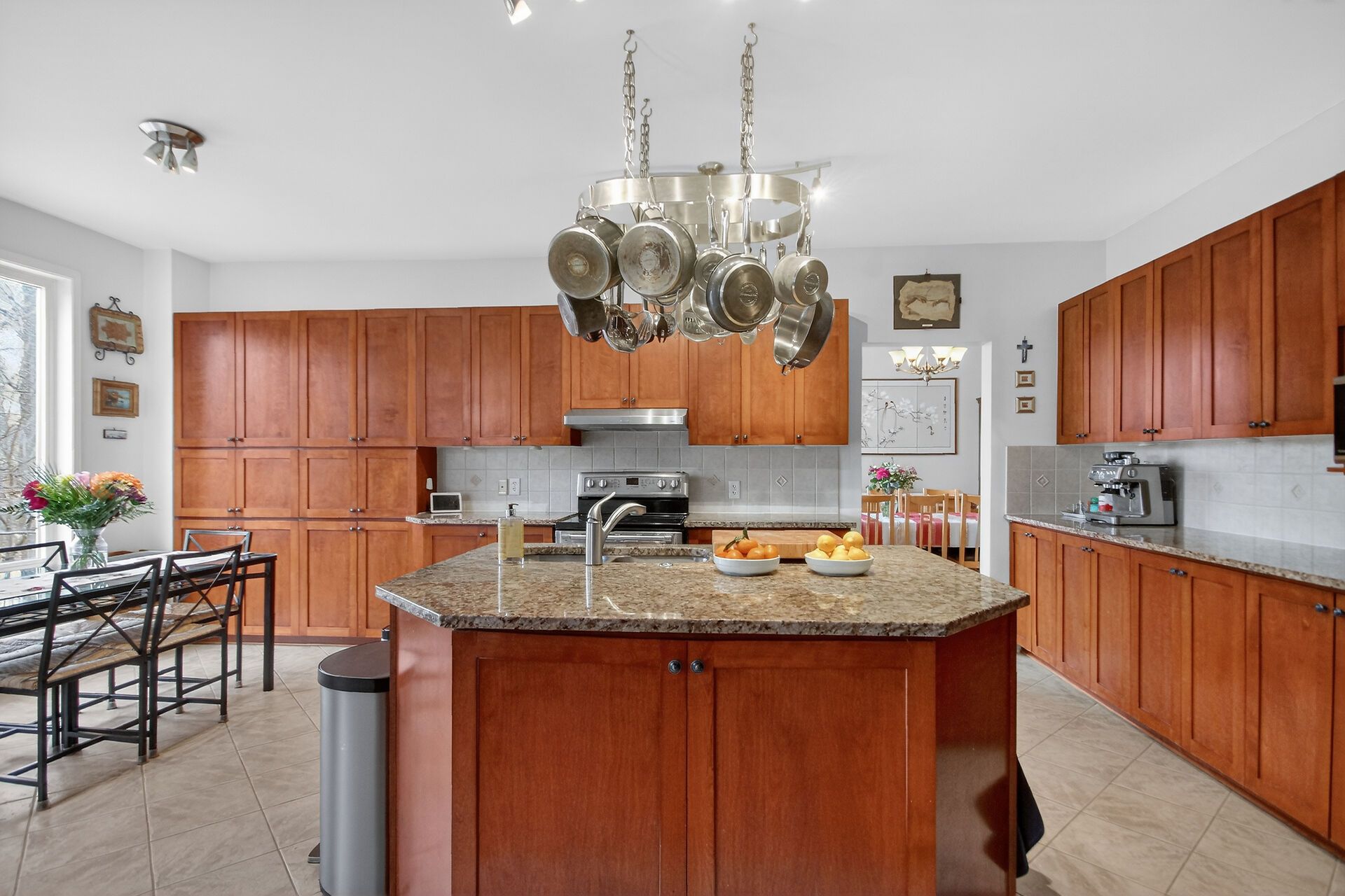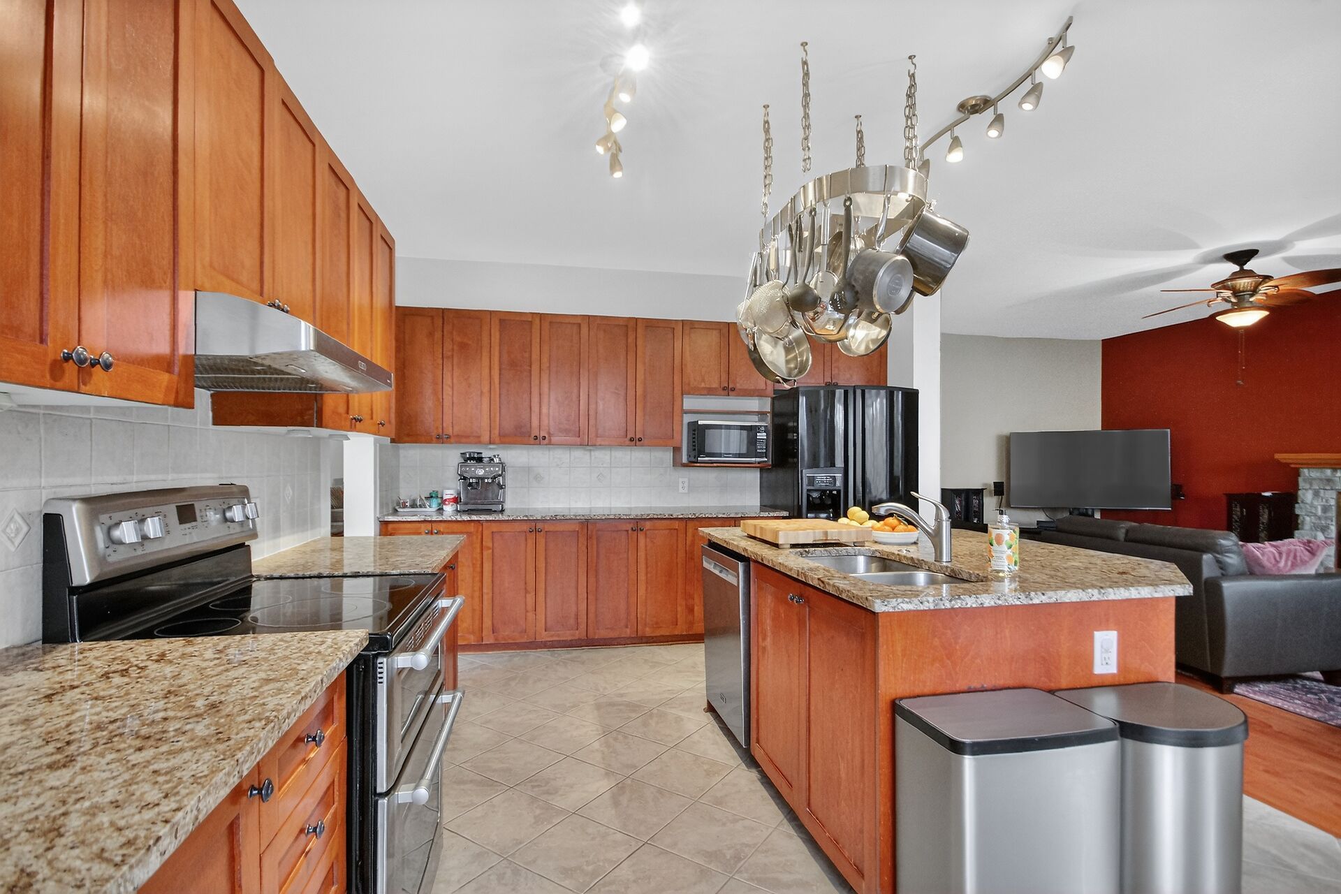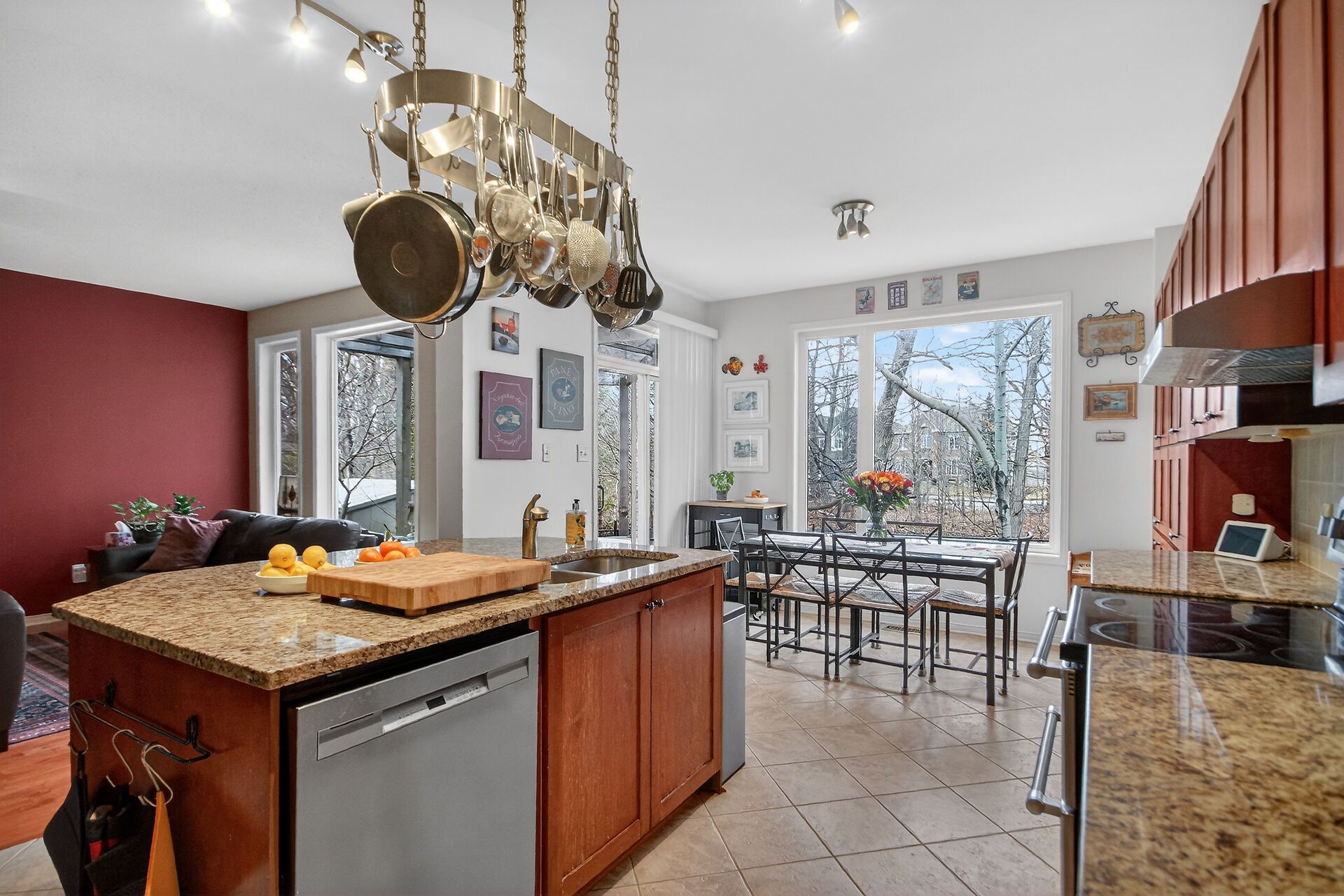 • Gourmet kitchen with granite counters and large eating area for meals.