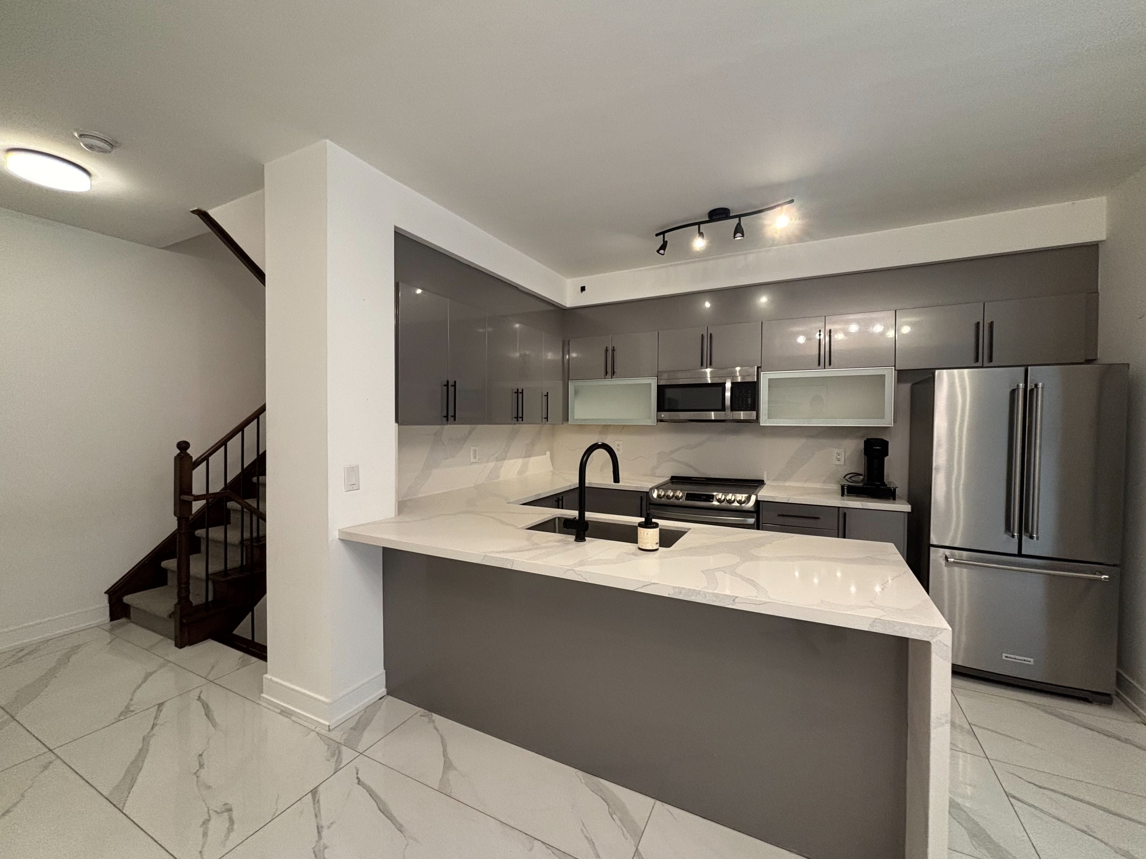 Remarkable freehold executive townhouse located in prestigious thornhill. This beautifully appointed home features 9-ft ceilings on the main level, hardwood flooring throughout, granite countertops, marble backsplash, and stainless steel appliances. Enjoy an exceptional layout with a primary bedroom open balcony and a main-level patio-perfect for indoor-outdoor living. Includes two underground parking spaces with direct access to the basement. Tenant enjoys access to upscale condo-style amenities, including a fully equipped gym, water spa, theatre room, party room, and guest suites. Prime location close to shops, dining, transit, and major highways.