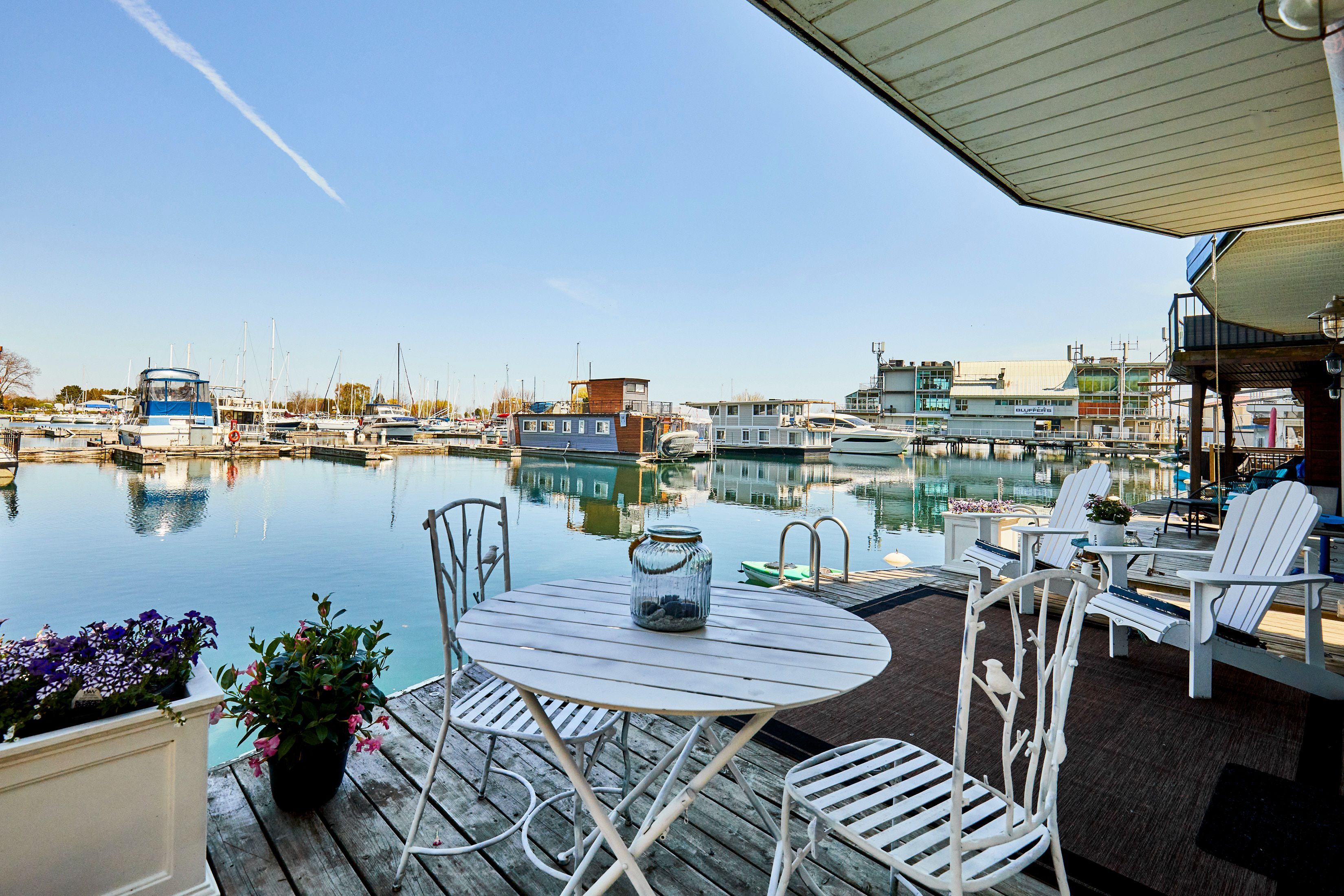 Live the lakeside cottage lifestyle year-round, right in the city. Discover a hidden gem with toronto's unique one-of-a-kind lifestyle opportunity: a unique float home community, tucked inside bluffers park marina. With only 24 floating homes, this vibrant waterfront enclave is one of the city's best-kept secrets. Step into this unique 2-bedroom, 1. 5-bath, two-storey float home and take in sweeping water views from every level. Designed for both comfort and lifestyle, the open-concept main floor features hardwood floors, a cozy gas fireplace, and a spacious kitchen with a center island and breakfast bar - plus a convenient 2-piece powder room, and ensuite main floor laundry. Upstairs, each bedroom has its own private deck, including a large east-facing terrace off the primary suite - perfect for sunrise views. The full 4-piece bath boasts a deep jacuzzi tub for unwinding in style. Top it all off with the showstopper: a rooftop deck with panoramic views of lake ontario and the iconic scarborough bluffs. Whether you're entertaining, dining al fresco, or just kicking back, this space takes outdoor living to the next level. Enjoy practical perks like a storage shed and surface parking for two cars. Take advantage of the community garden, and marina access with showers, laundry facilities, and year-round on-site restaurants. Hop on your paddleboard or kayak for a cruise around the marina, or hit the walking and biking trails of bluffers park, just steps from your door. Only minutes to kingston rd, shopping, schools, scarborough go station, and a short trip to downtown toronto. Lakeside living has never been this easy and offers the rare blend of waterfront living and urban convenience!
