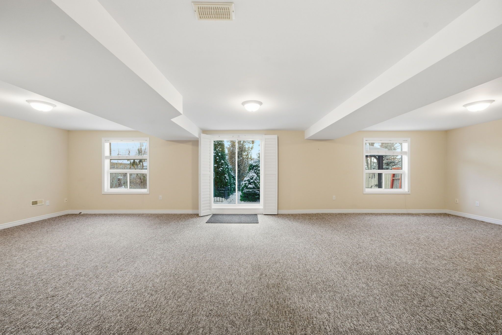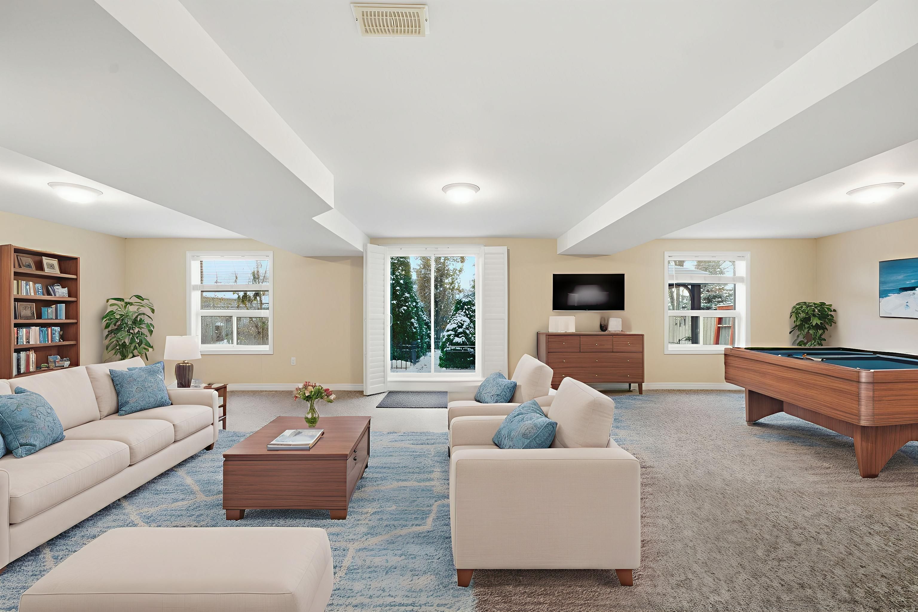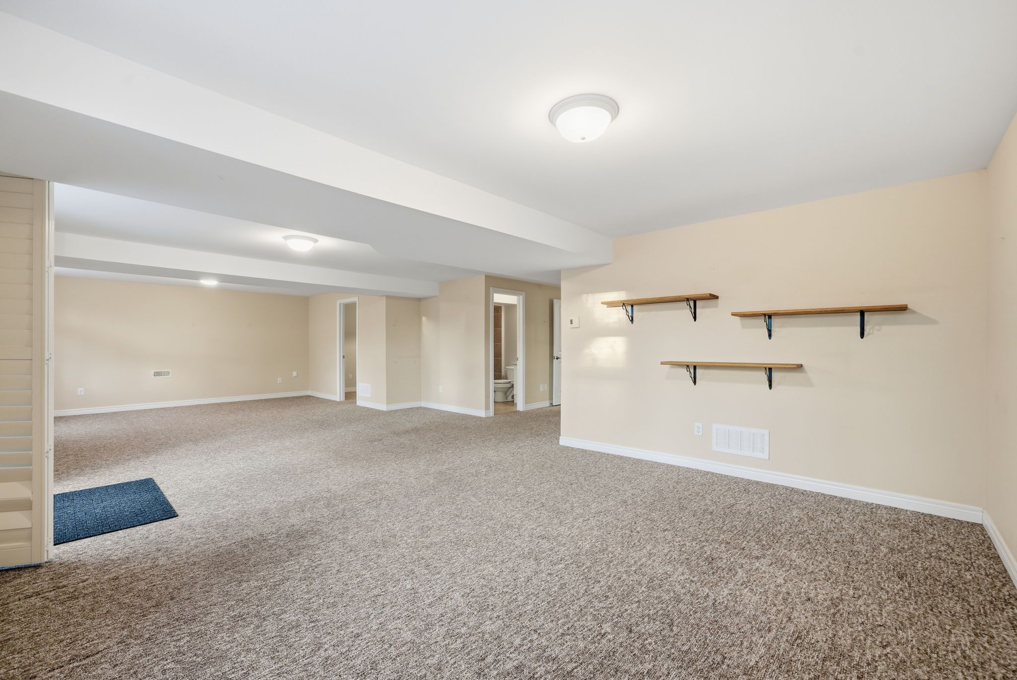 • Lower level offers a rec room, hobby space, and third bedroom.