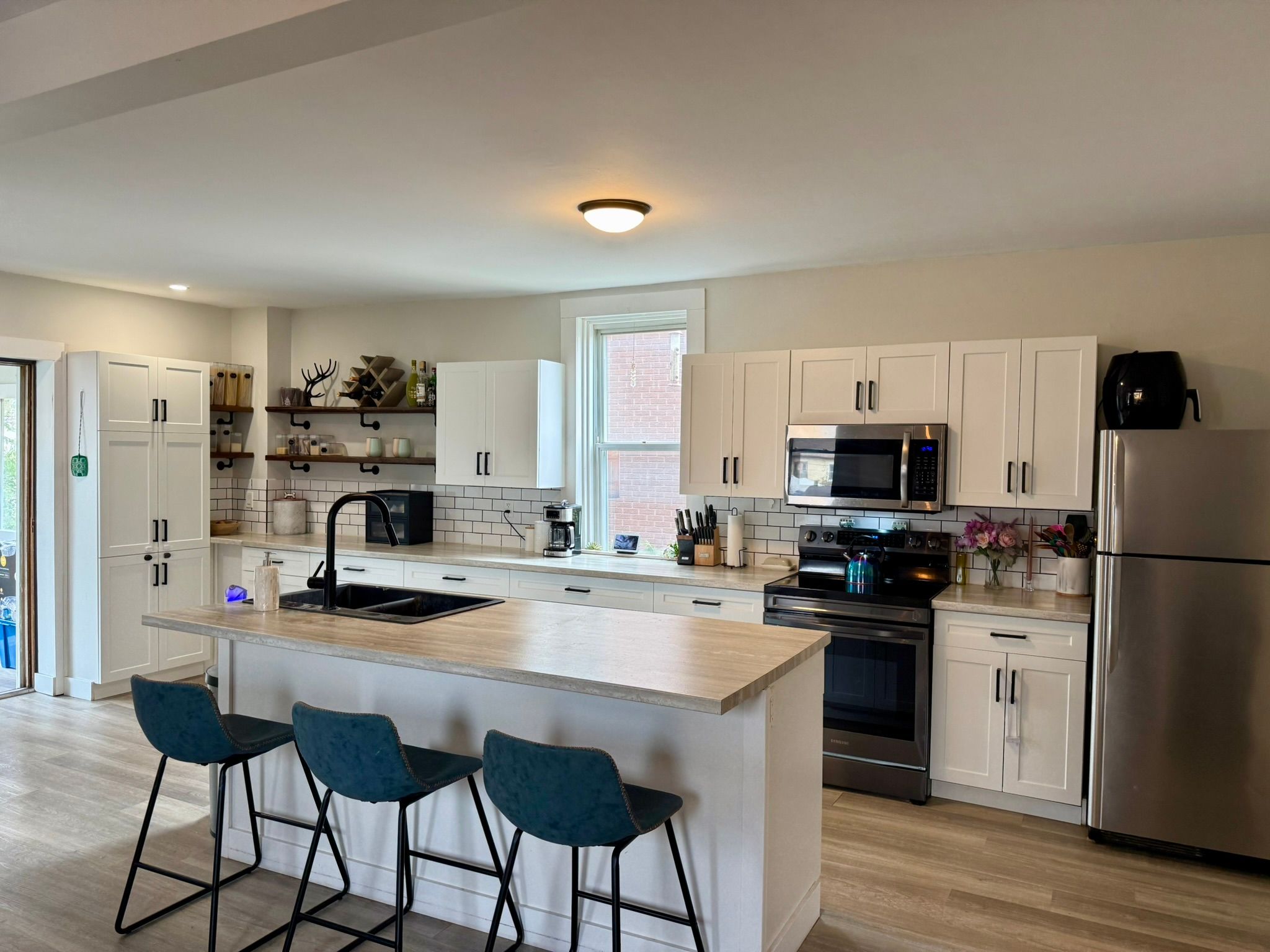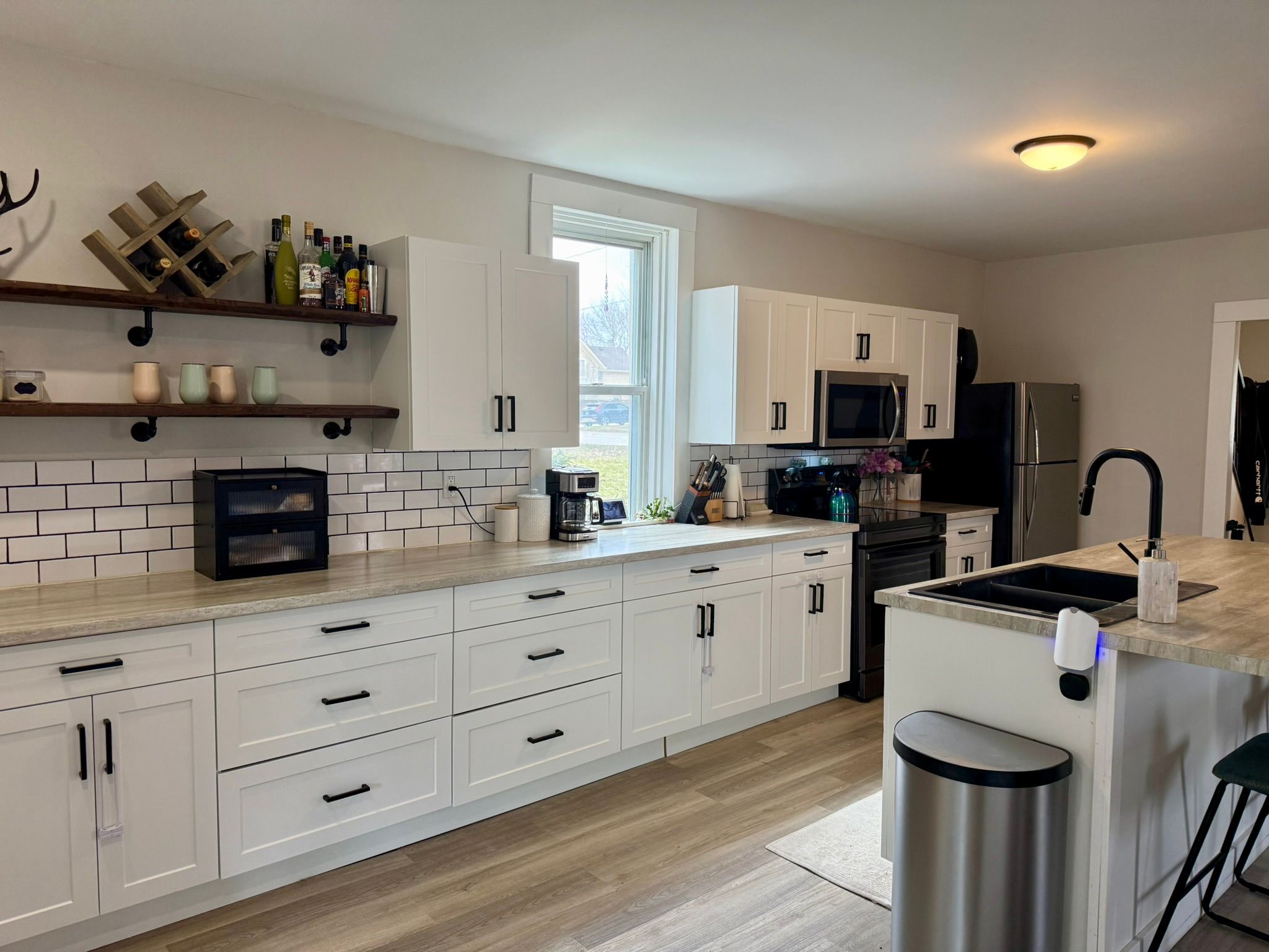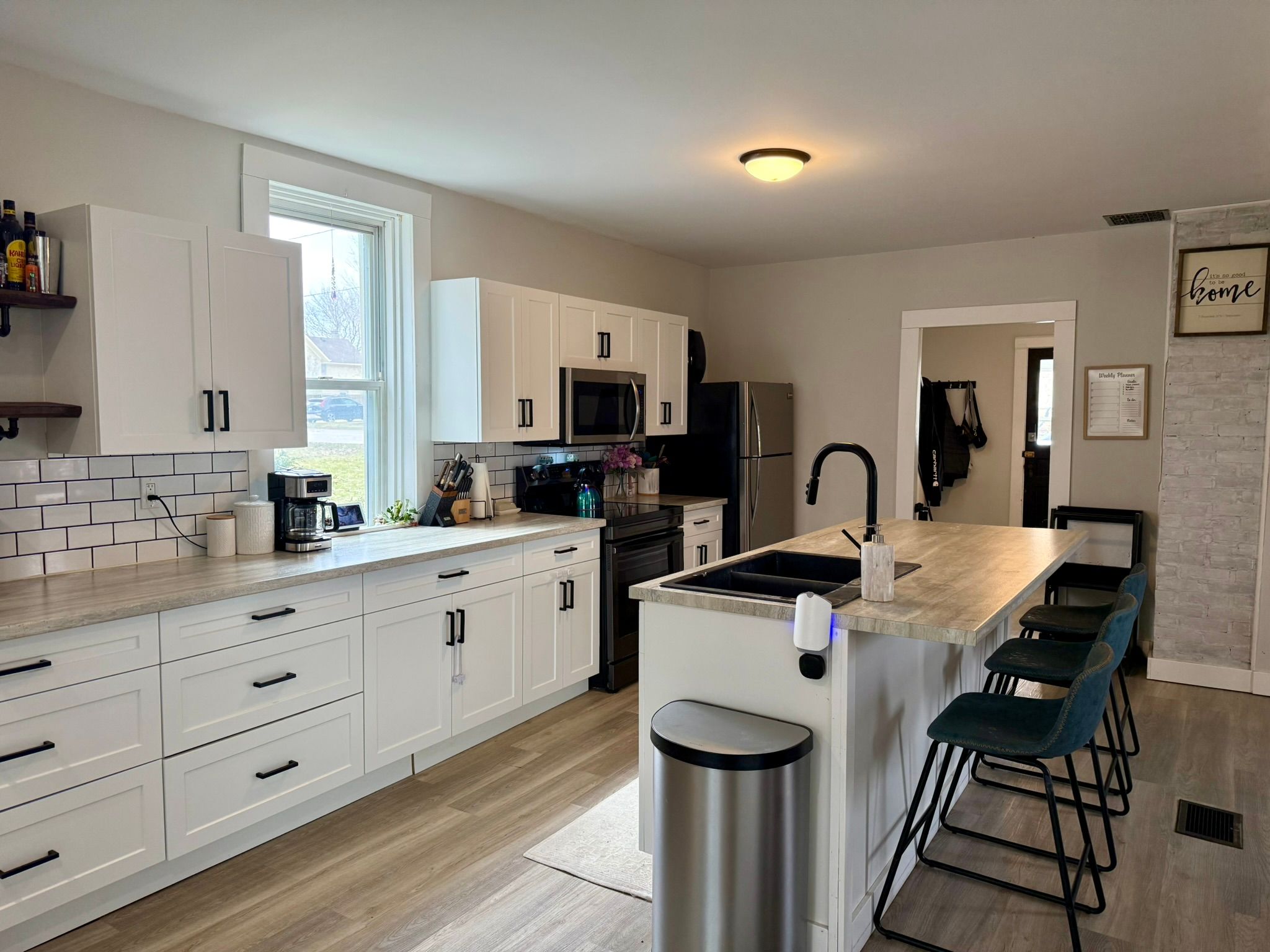 This beautiful 2 storey home was extensively updated in 2021 offering loads of space for the entire family. It's ideally situated a block from the main street of teeswater and just around the corner from elementary schools. Vinyl plank flooring runs throughout the entire home. An enclosed front sun porch makes a great mudroom. From there enter the home, a large living room can be found. To the left, offering a clear sight line to the dining area and massive kitchen which has a large island, plenty of storage, soft close drawers, cabinets and lovely open shelves. Laundry is combined with the 5 piece bath, a rear enclosed sun room completes this level. Upstairs you will find an extra wide hallway that leads to 4 bedrooms and another 5 piece bathroom. Bonus is the 2 bay shop/detached garage that measures approximately 20' x 28'. Large rear deck and nice size yard is great for entertaining. This home is ready to simply move in and enjoy. Call for you personal viewing!