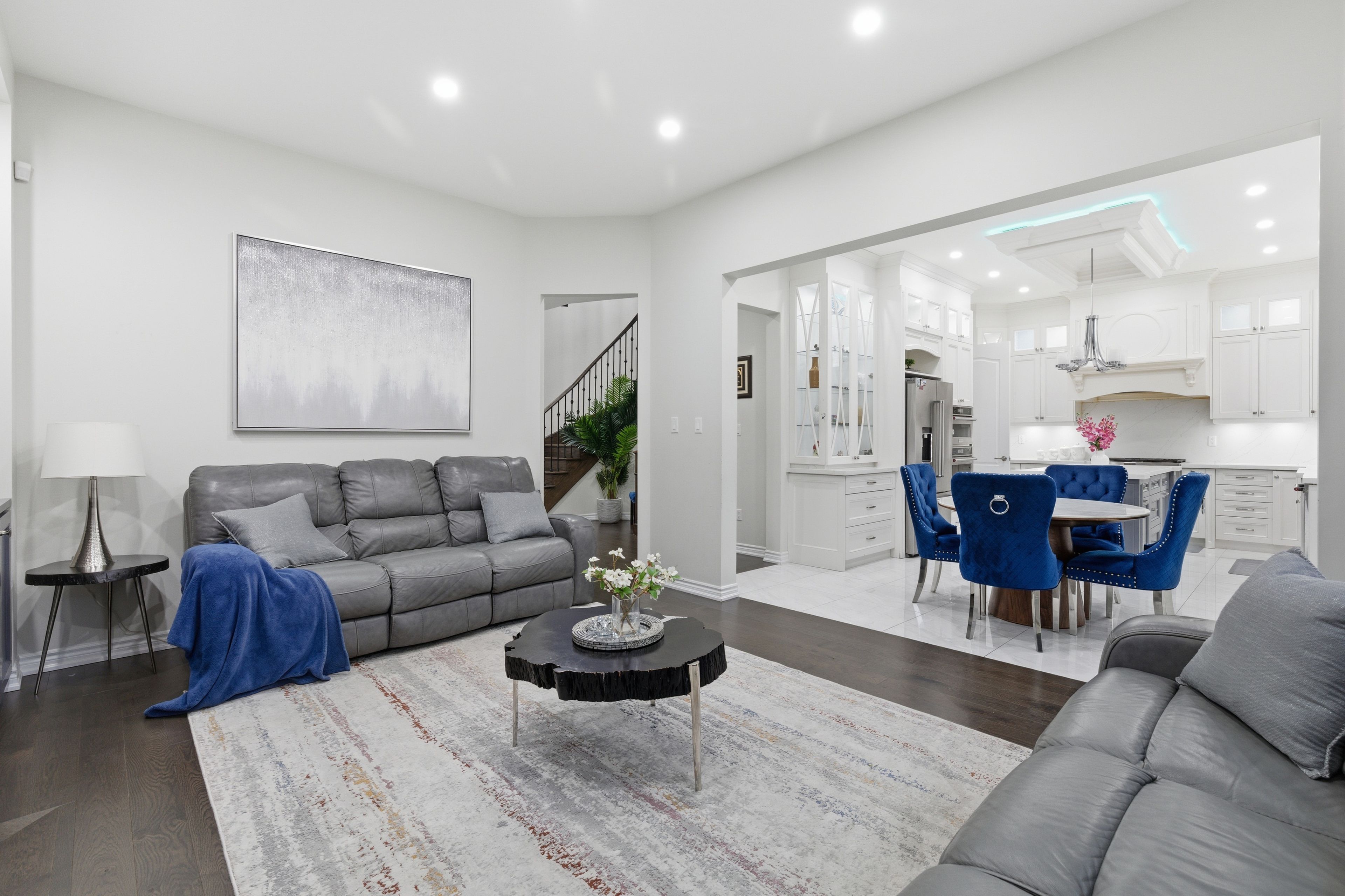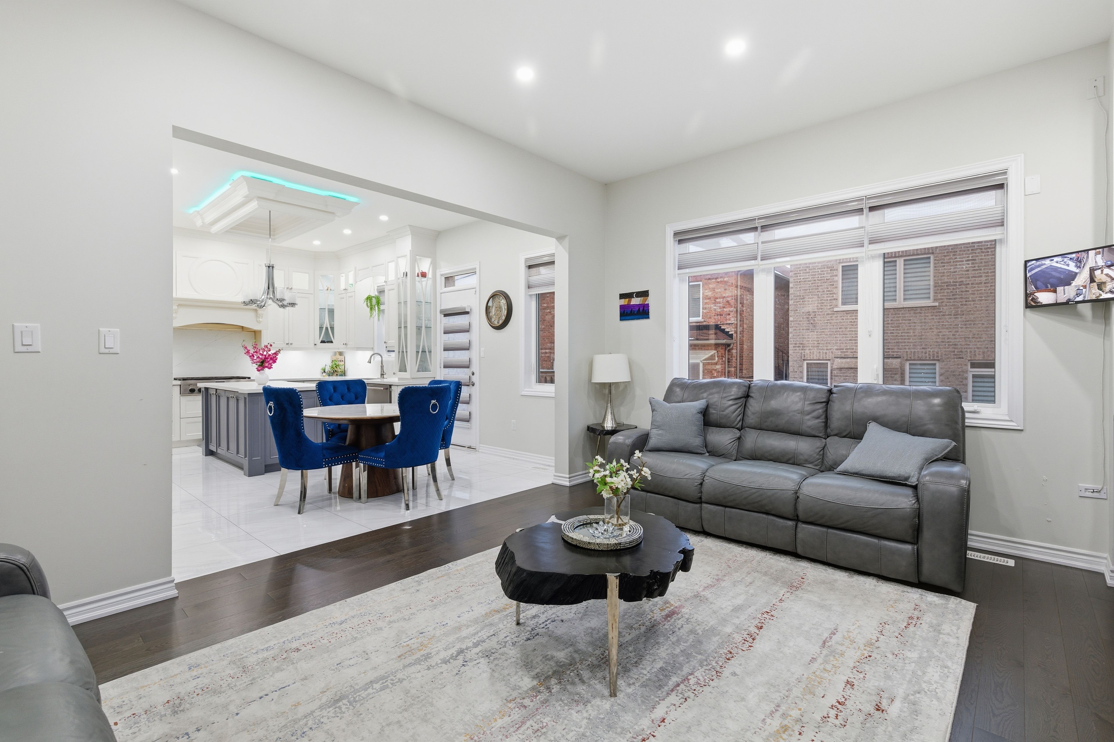 Welcome to this stunning 3,126 sq. Ft. Residence featuring 10 ft ceiling heights, elegant hardwood floors, and a thoughtfully designed layout with separate living and family rooms. The high-end custom kitchen is equipped with built-in stainless steel appliances, perfect for both everyday living and entertaining. Custom blinds and pot lights throughout the entire home, including exterior lighting, enhance the modern aesthetic. The main floor includes a den that can be used as a 5th bedroom, along with custom storage cabinetry in both the den and family room. The second floor offers 4 spacious bedrooms, each with its own ensuite bathroom, plus an open media/entertainment area ideal for family relaxation or kids play area. The professionally finished basement with separate entrance boasts high-end finishes, a full bathroom, bedroom, and an extra-large media/entertainment space, perfect for hosting large gatherings and parties. A truly exceptional home offering luxury, space, and functionality. Must see...