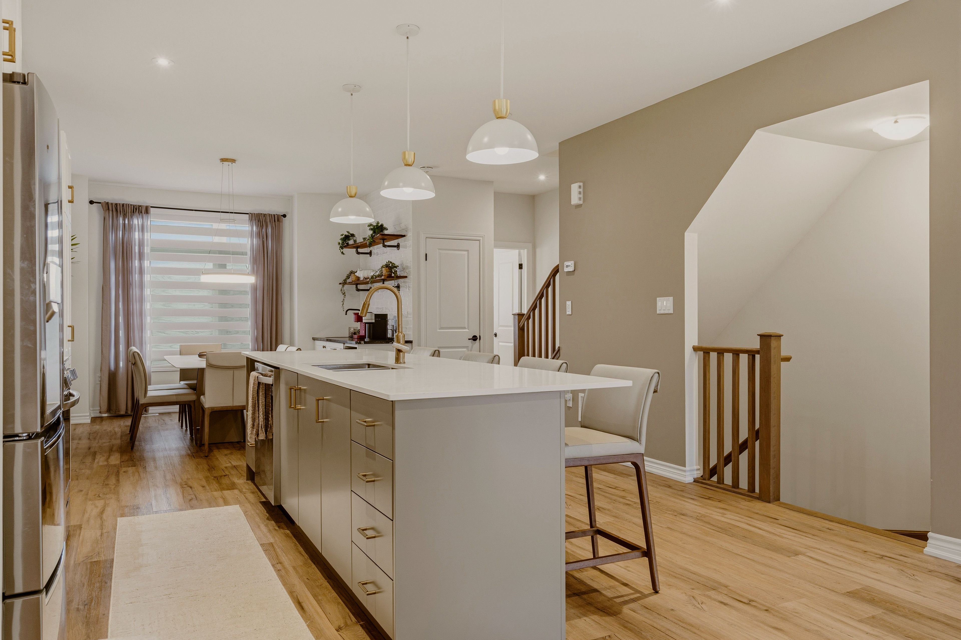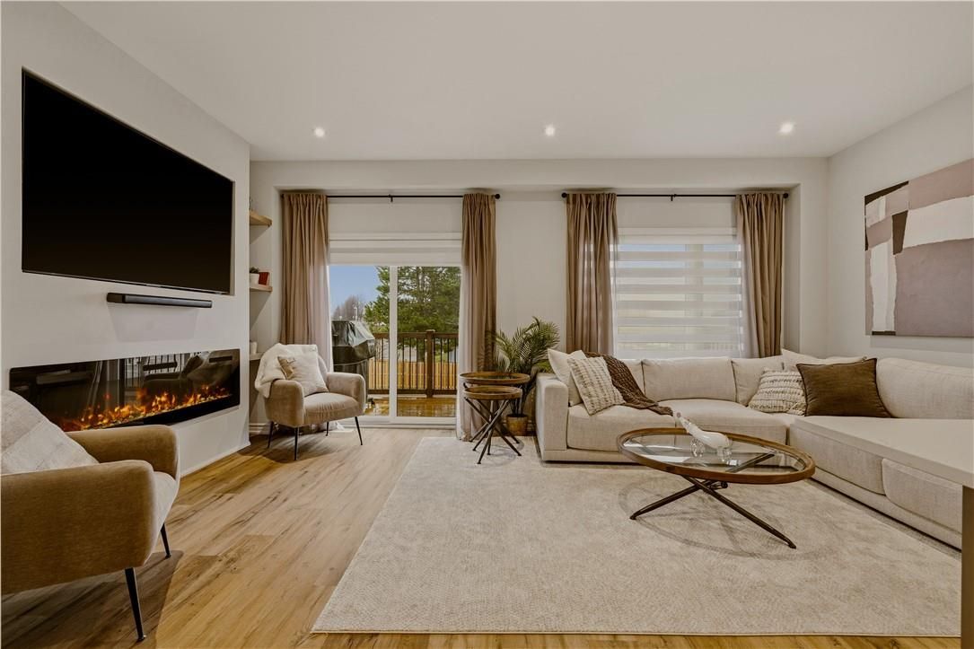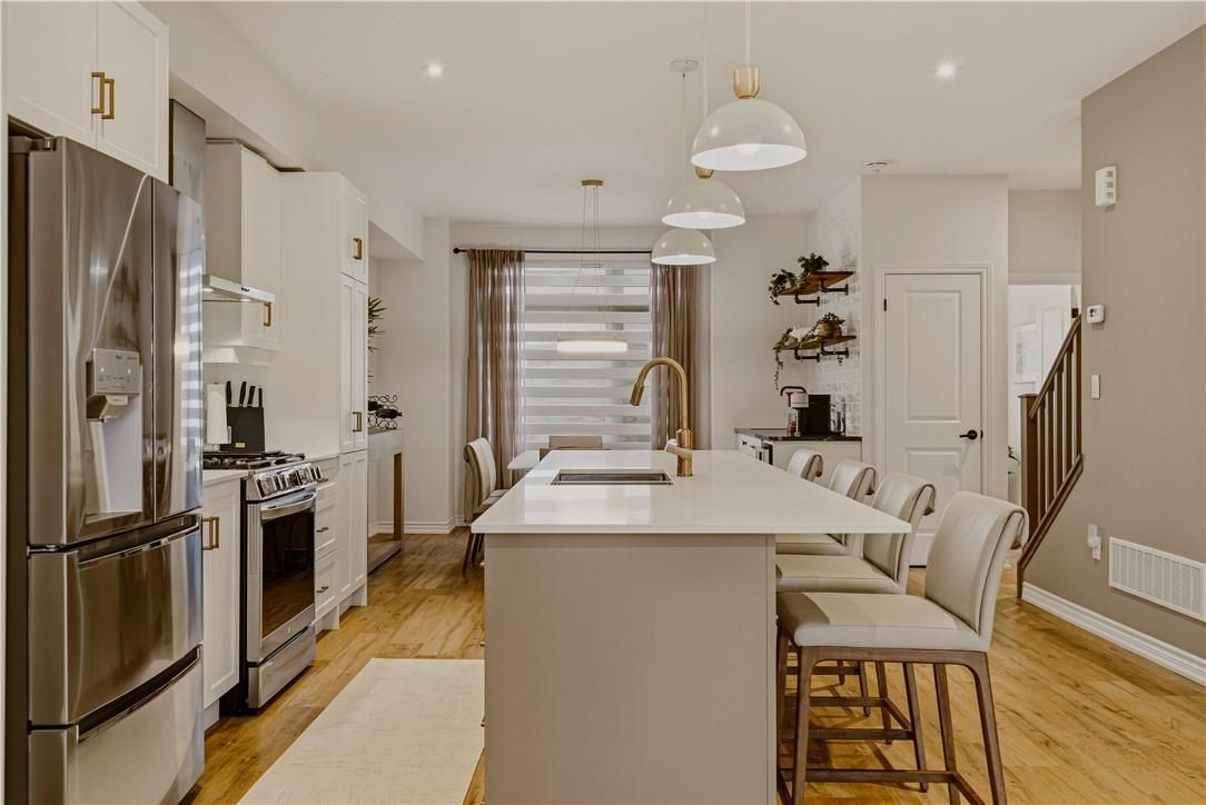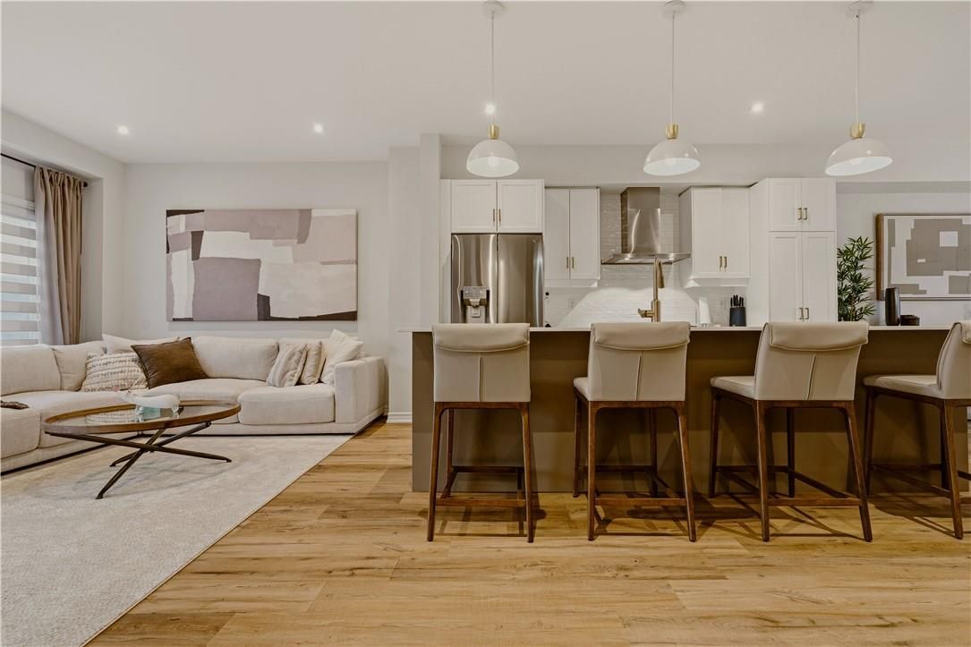Fabulous freehold living awaits in this recently built 3-storey townhome, ideally located in the highly sought-after west hamilton mountain community, just moments from ancaster meadowlands' shops, dining, and scenic nature trails. Crafted by starward homes, this beautifully designed residence offers 3 spacious bedrooms and 4 bathrooms, perfectly suited for growing families. The main level welcomes you with a bright foyer, a spacious rec room, a convenient 2-piece bath and walk-out access to the fully fence back yard - a versatile space for entertaining or a teen retreat. The second level truly serves as the heart of the home, showcasing a bright and inviting open-concept living space where the living room, dining area, and stylish kitchen flow seamlessly together-creating an ideal setting for both everyday living and effortless entertaining-complete with an additional 2-piece bath and access to the 132 sqft balcony. The kitchen is a true entertainers dream, complete with a working breakfast island, gorgeous stainless appliances and quartz countertops. Upstairs, retreat to the private bedroom level featuring a well-appointed primary suite with a walk-in closet and 4-piece ensuite, along with two ample additional bedrooms, a full 4-piece bath, and convenient upper laundry. With over 1,900 sq ft of thoughtfully designed living space, this home offers an exceptional blend of comfort, style, and location.