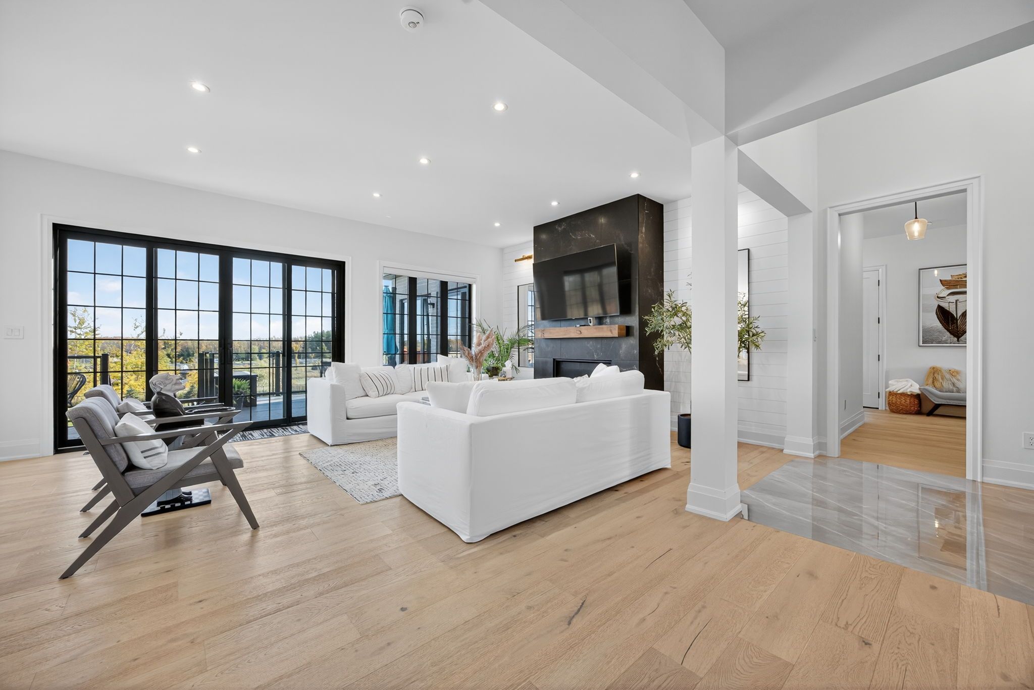 • Oversized windows and a 10-foot sliding door enhance natural light.