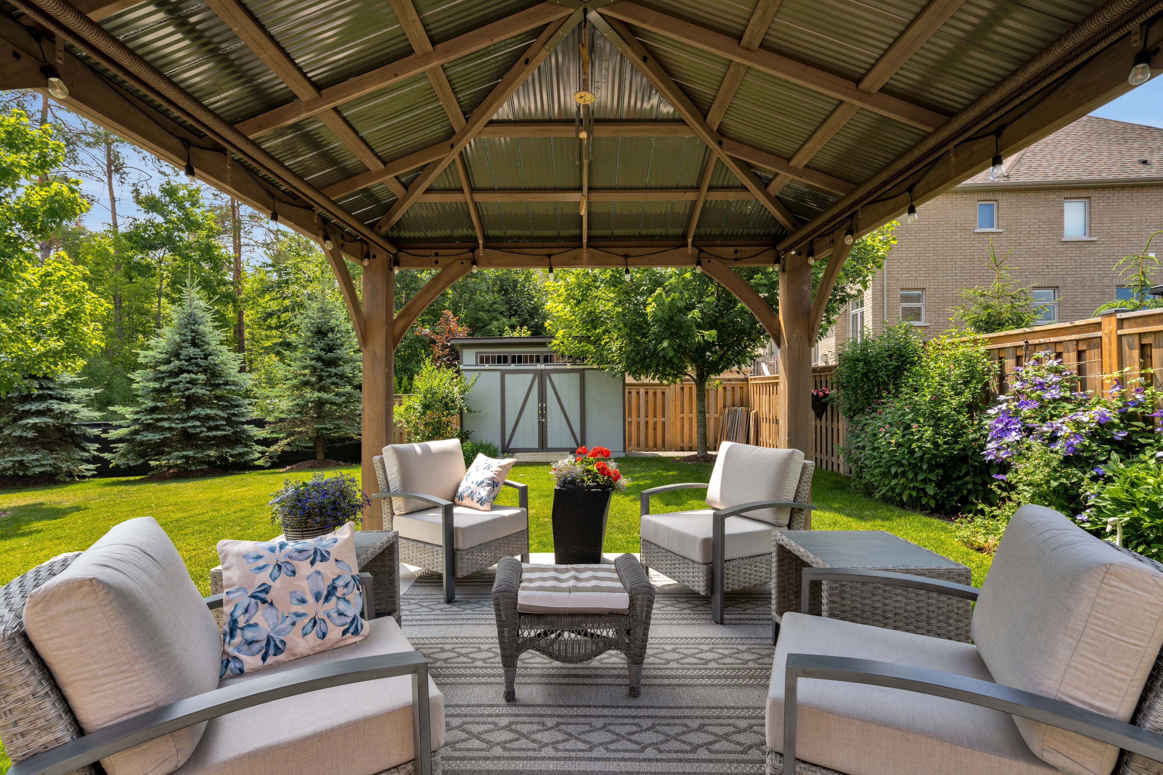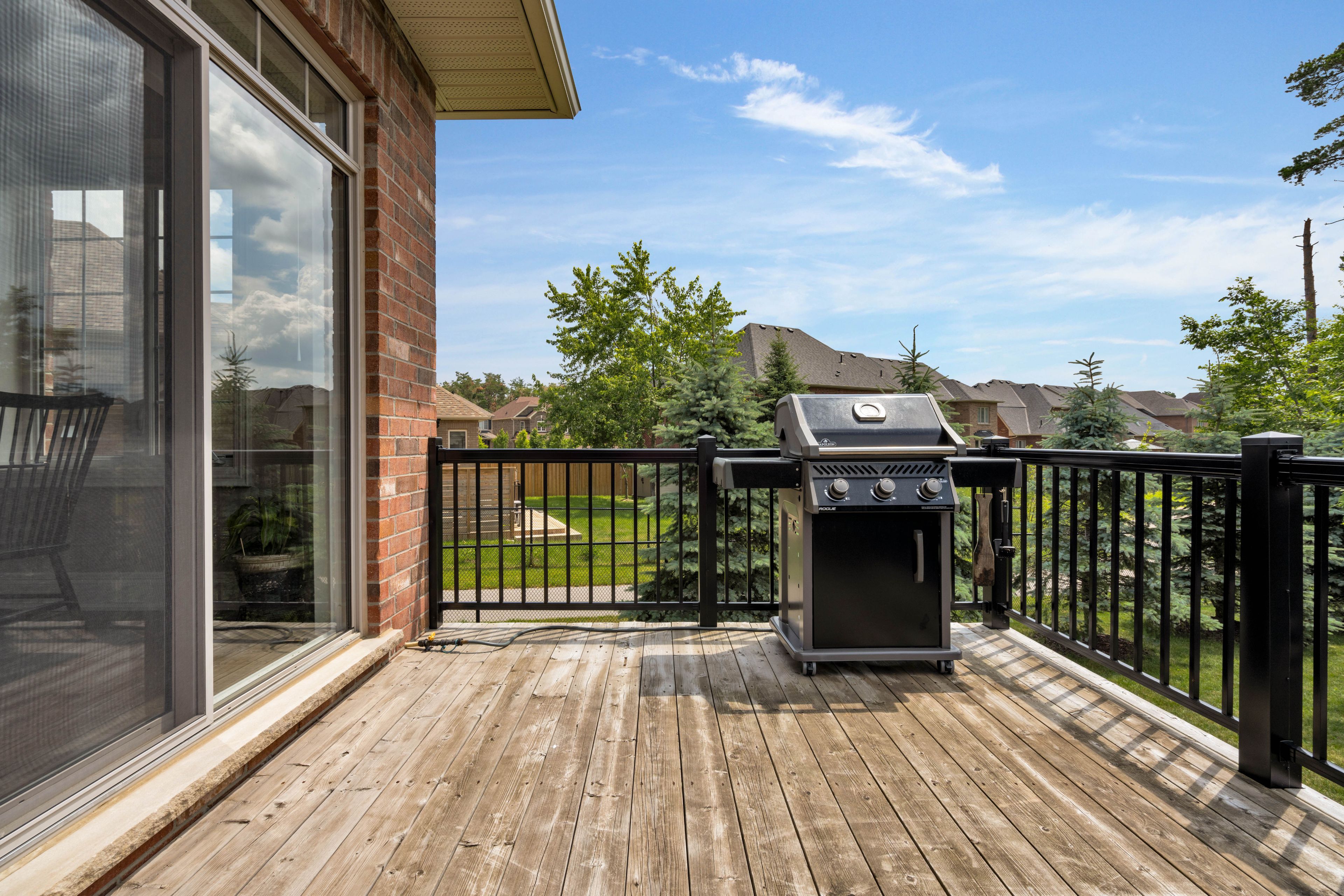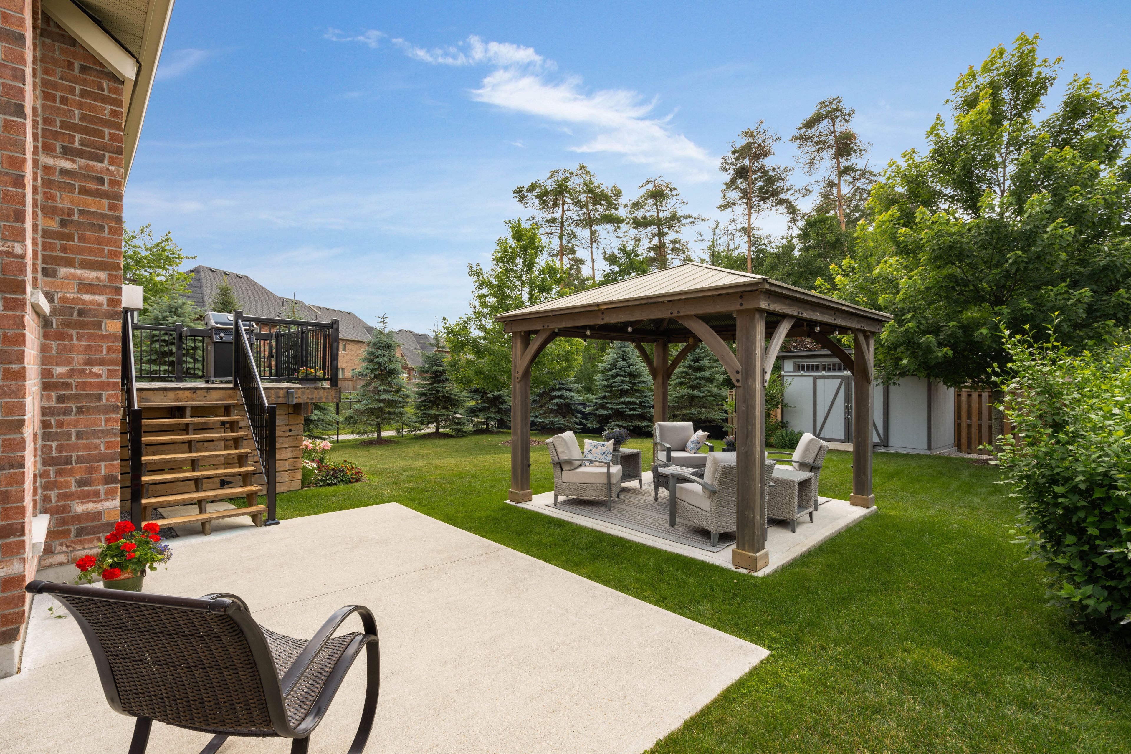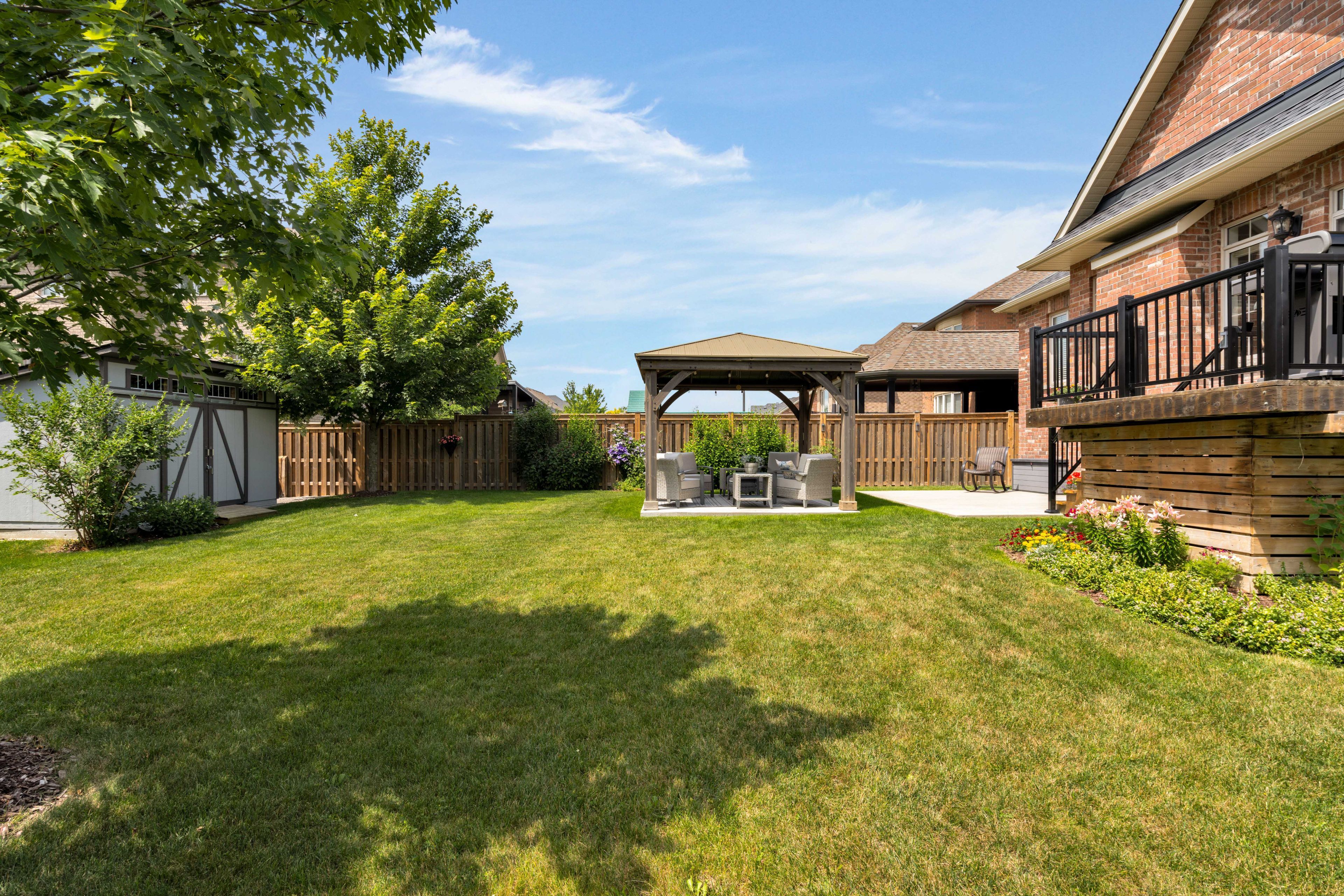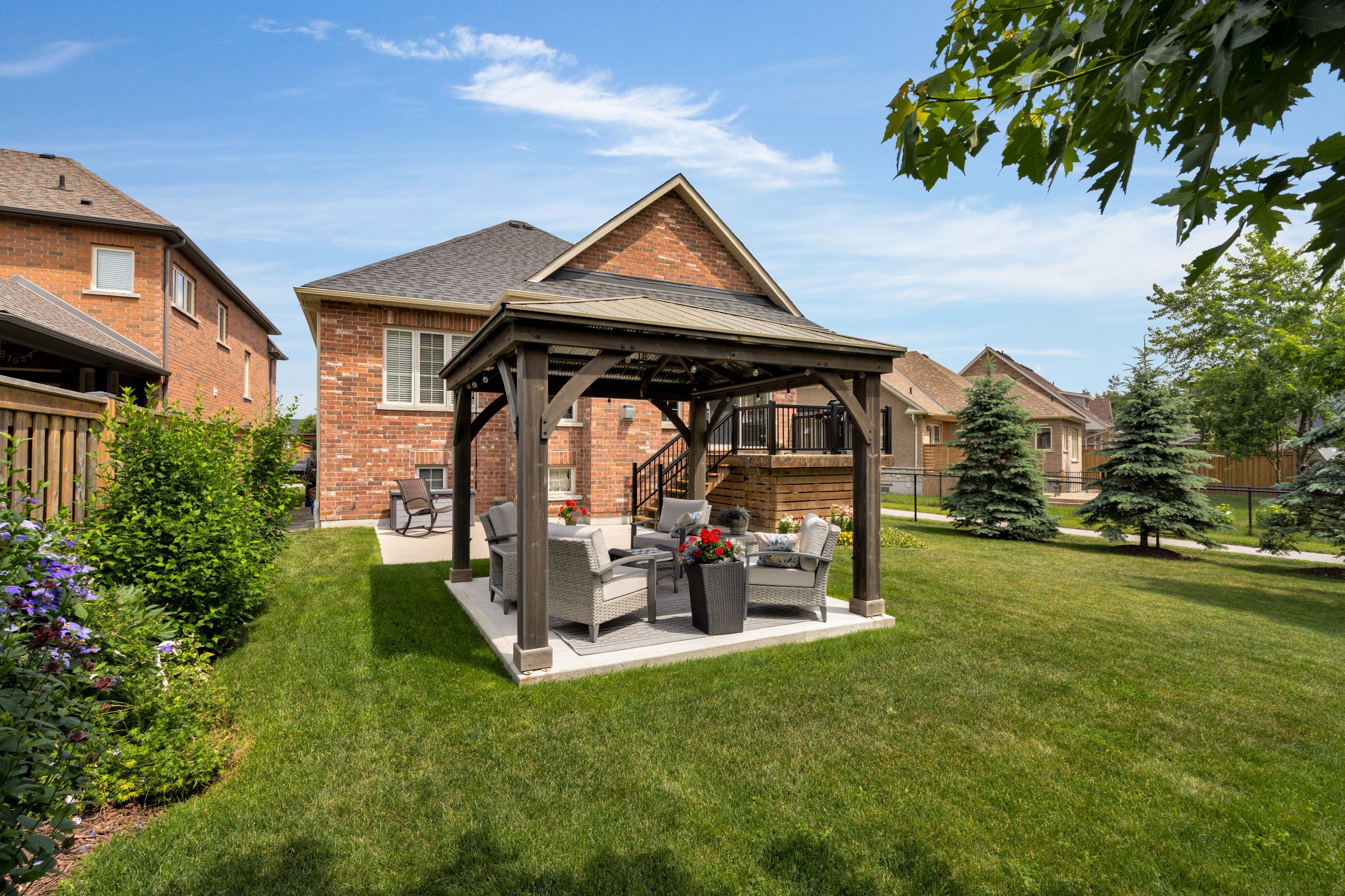 Executive brick bungalow located within sought-after stone manor woods. Situated on a rare ep lot showcasing manicured grounds, accented with new concrete patios, a garden shed, new deck railings, & larger trees for extra privacy. A perfect pool-sized lot with southwestern exposure! Upon arrival, you're greeted with superb curb appeal matched with pride of ownership, securing your home purchase with peace of mind. New front door & garage door (2024), no sidewalk & a recently resurfaced front porch greets you as you step inside this fully finished sycamore model. Presenting over 2,600 sqft of finished space & exceptional craftsmanship, this 5 bedroom, 3 full bathroom home is fully upgraded from top to bottom. Equipped with hardwood & ceramics, tray, cathedral & 9 ceilings accented by 8 door openings throughout the main floor. An upgraded kitchen with a new island & quartz counters illuminated by upgraded light fixtures. There is an abundance of natural light that radiates well within the home, no matter what room you find yourself in. The large master suite has been recently redesigned with a new ensuite & walk-in closet. Make your way to the lower level offering 3 bedrooms, a large rec room, a 4pc bath & ample storage space, perfect for extended family or entertaining. Extra basement windows have been installed, as well as some have been made larger per fire code. Equipped with 2 gas fireplaces, gas appliances (stove, bbq gas line, clothes dryer, hwt tank), no rental items & the premium blinds throughout are just a few key features that set this home apart.