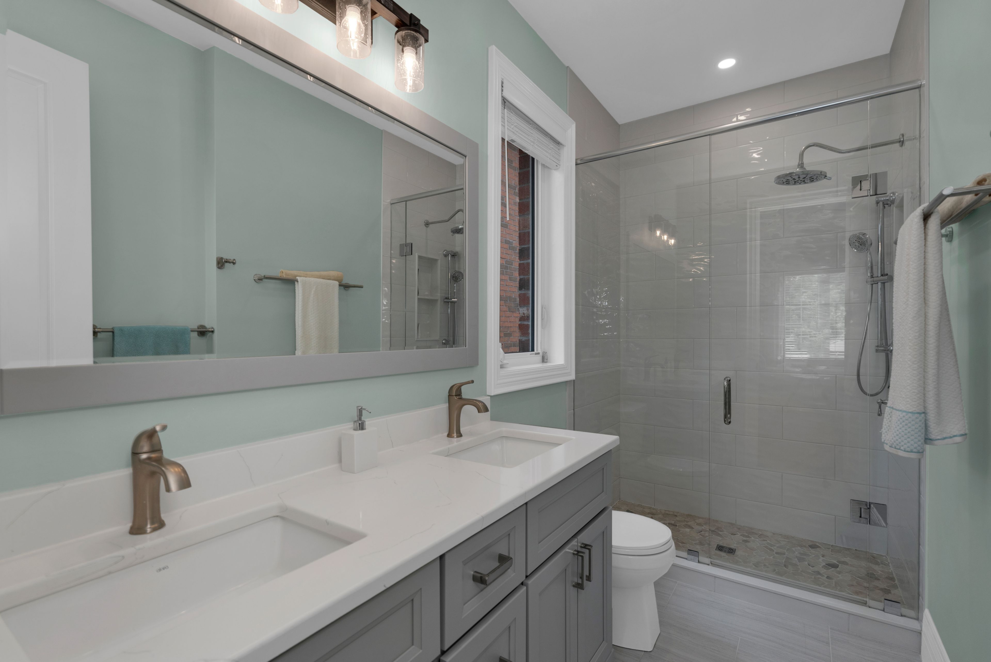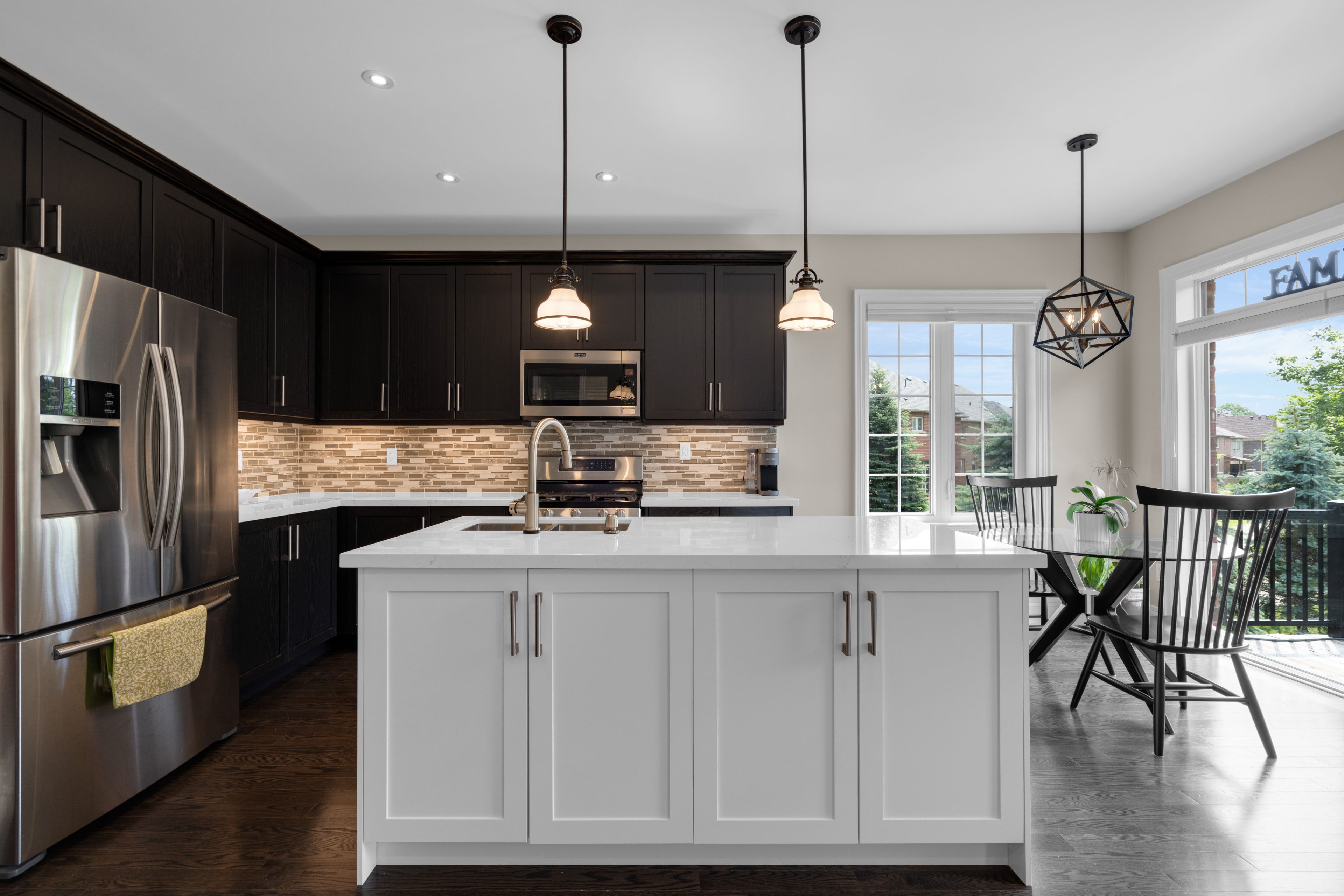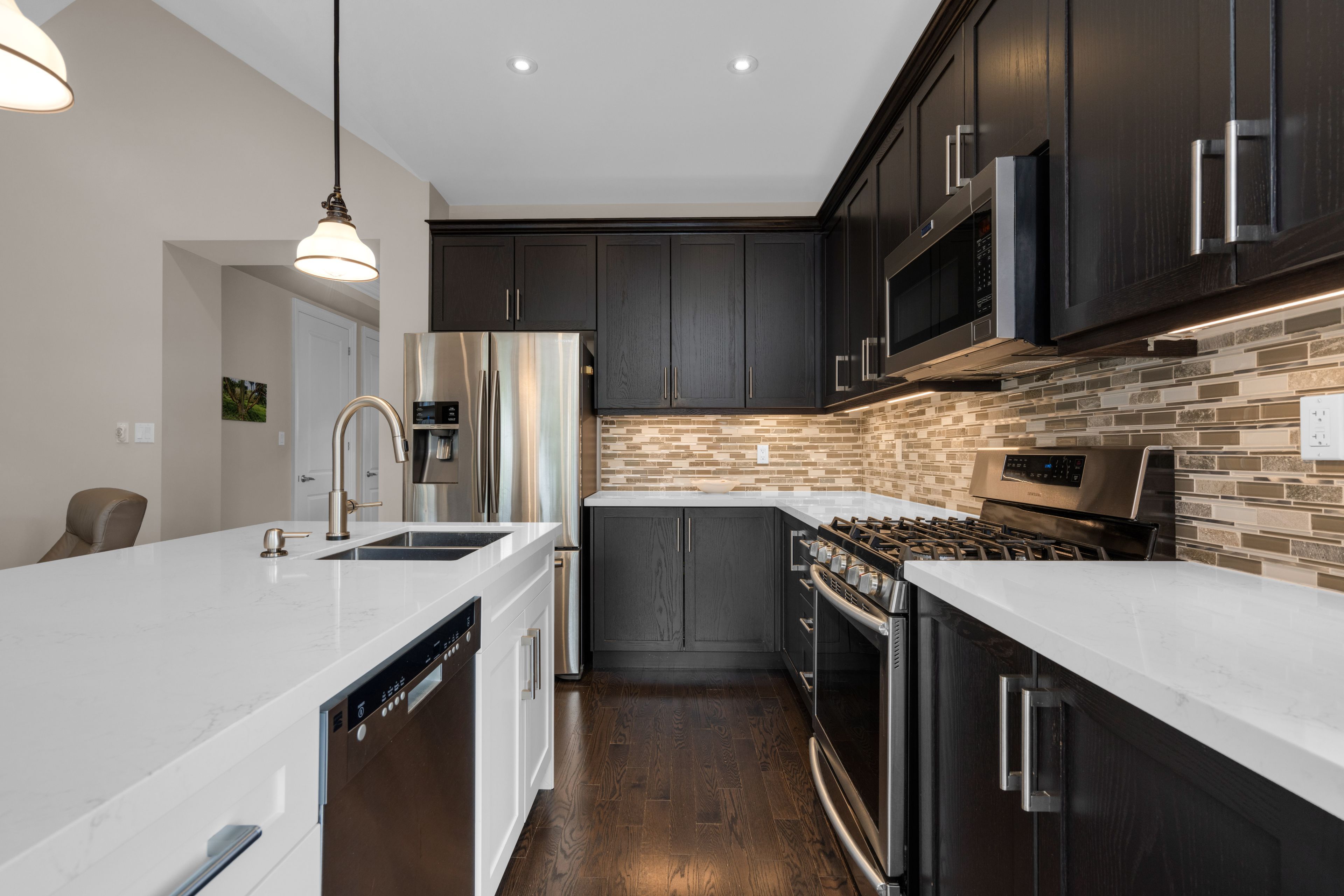• Upgraded kitchen featuring a new island and quartz counters.