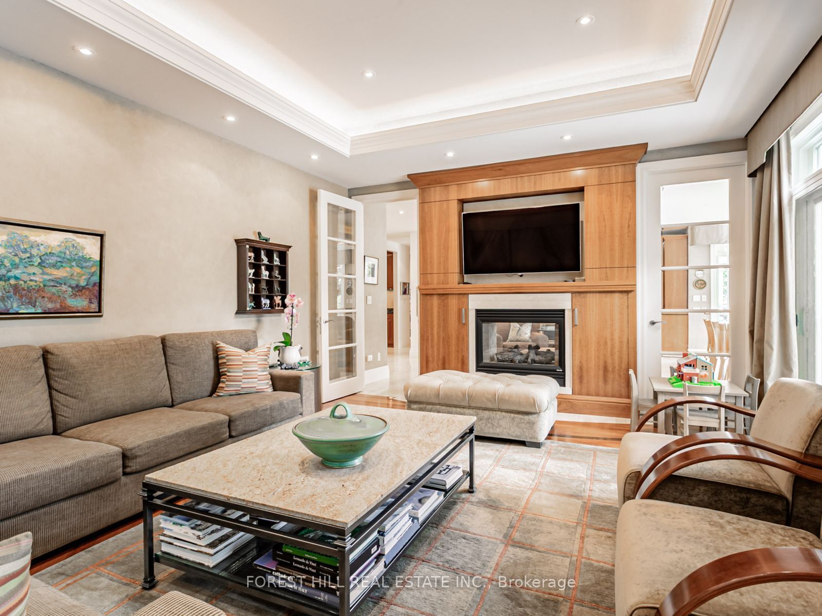 If you are looking for quiet street and a large private lot, you've found your next home! This remarkable custom-built residence offers a perfect balance of elegance, comfort, and functionality across three levels of thoughtfully designed living space. The main floor welcomes you with a sophisticated living room featuring soaring ceiling height of over 20 ft with a dramatic floor to ceiling window and a gas fireplace. A formal dining room with adjoining servery is enhanced with built-in speakers and glass doors, creating the ideal setting for entertaining. Two offices provide flexible work-from-home options, while the inviting family room, with its two-way fireplace and walk-out to the garden, seamlessly connects to the chefs kitchen. This culinary space is equipped with a centre island, stainless steel appliances, and a built-in desk, while the adjoining breakfast area with room for both casual meals and a cozy seating area that shares the fireplace and opens directly to the garden. Upstairs, the primary suite offers a true retreat with a sitting room and a walk-out that overlooks the rear grounds, walk-in closet, and a luxurious six-piece ensuite. Additional bedrooms each feature their own sitting area, walk-in or built-in closets, and private ensuites, with unique enhancements including hardwood flooring and custom built-ins. The lower level is designed for recreation and entertainment, highlighted by a large room with a built-in bar, gas fireplace, and garden walk-out. An exercise room with mirrored walls and built-in speakers, plus a media room for a full theatre experience, add to the lifestyle appeal. Two additional bedrooms with private ensuites, one of two laundry rooms, a three-piece bath and garden walk-out. The backyard oasis is beyond description with an outdoor bbq, stunning water feature, pool, hot tub and covered pergola for al fresco dining. Privacy and lush landscaping. This home is a must see!