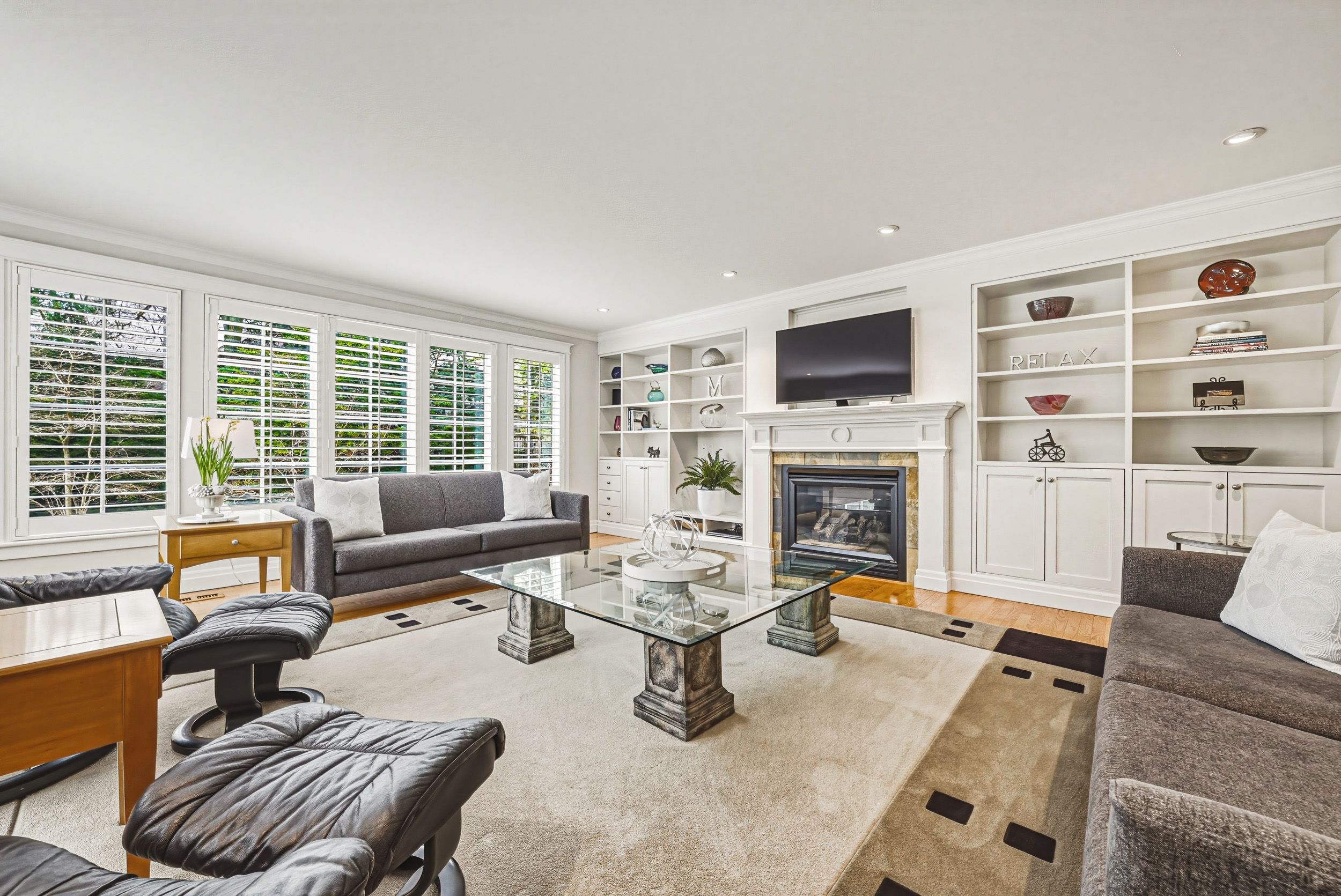 • Versatile lower level with a rec room, gas fireplace, and ample storage.