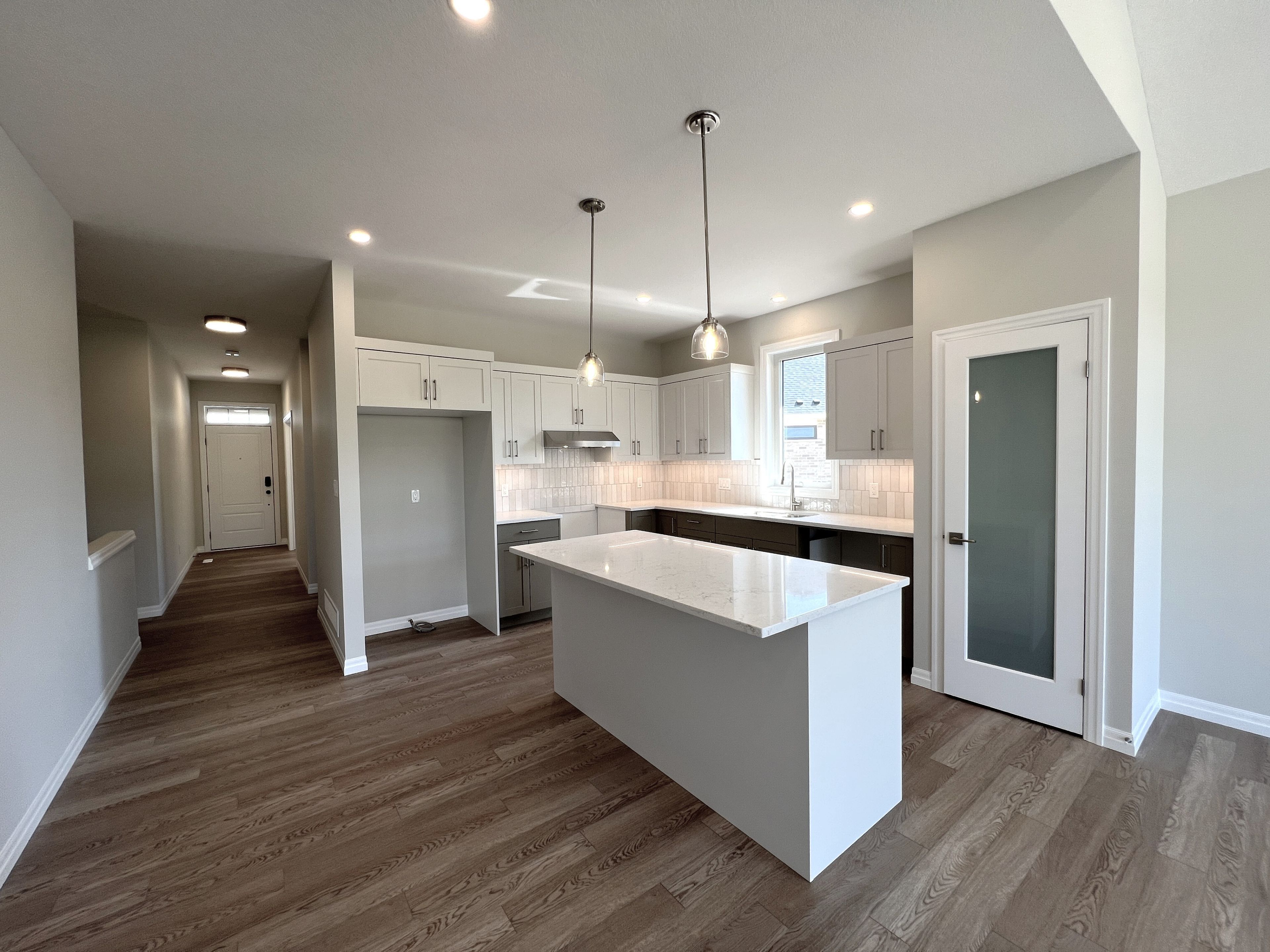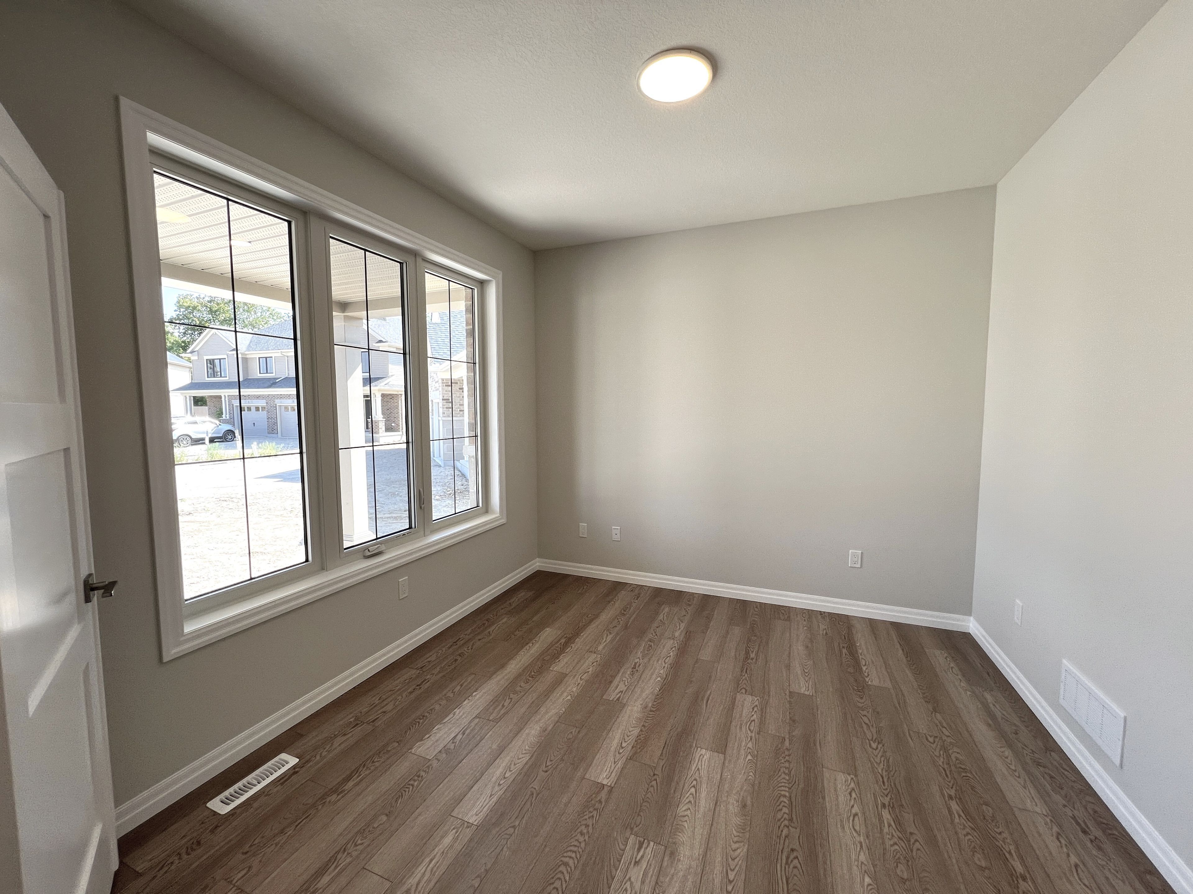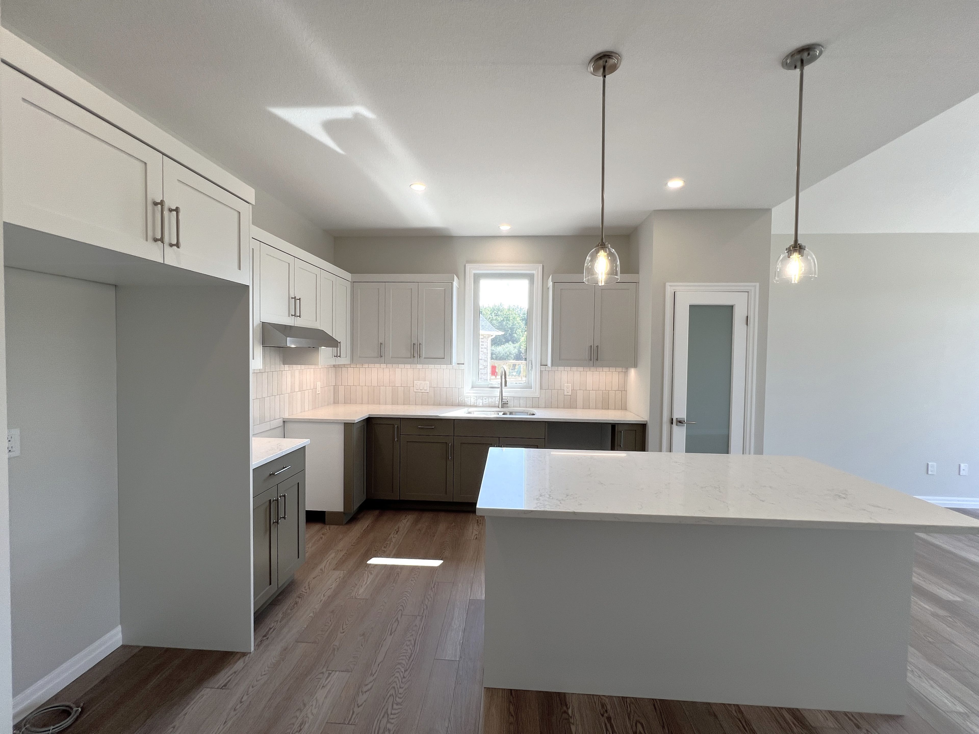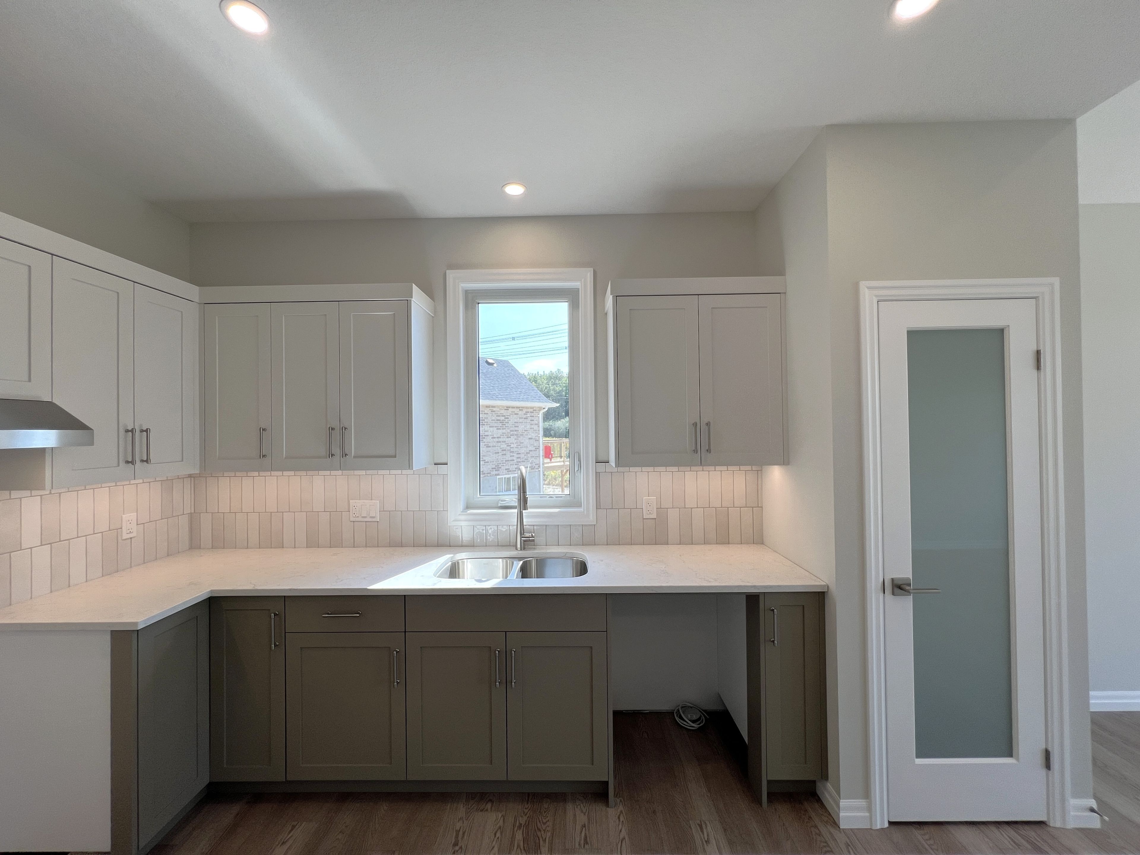 Move-in ready. This beautifully finished semi-detached bungalow built by hayhoe homes is located in the sought-after lynhurst heights community situated on a pie-shaped lot near the end of a quiet cul-de-sac, backing onto green space. It offers open-concept, single-floor living with 2 bedrooms and 2 bathrooms, including a private 3-piece ensuite. The main floor features 9' ceilings, luxury vinyl plank flooring, and a designer kitchen with quartz countertops, tile backsplash, a central island, and pantry -- all opening to a spacious great room with a cathedral and patio door leading to a rear deck. A second bedroom, full bathroom, and laundry room complete the main floor. The unfinished basement provides development potential for a future family room, additional bedroom, and bathroom. Other features include a single-car garage, covered front porch, central air, hrv system, tarion new home warranty, and numerous upgrades throughout. Ideally situated with easy access to london and close to parks, shopping, and restaurants. Taxes to be assessed.