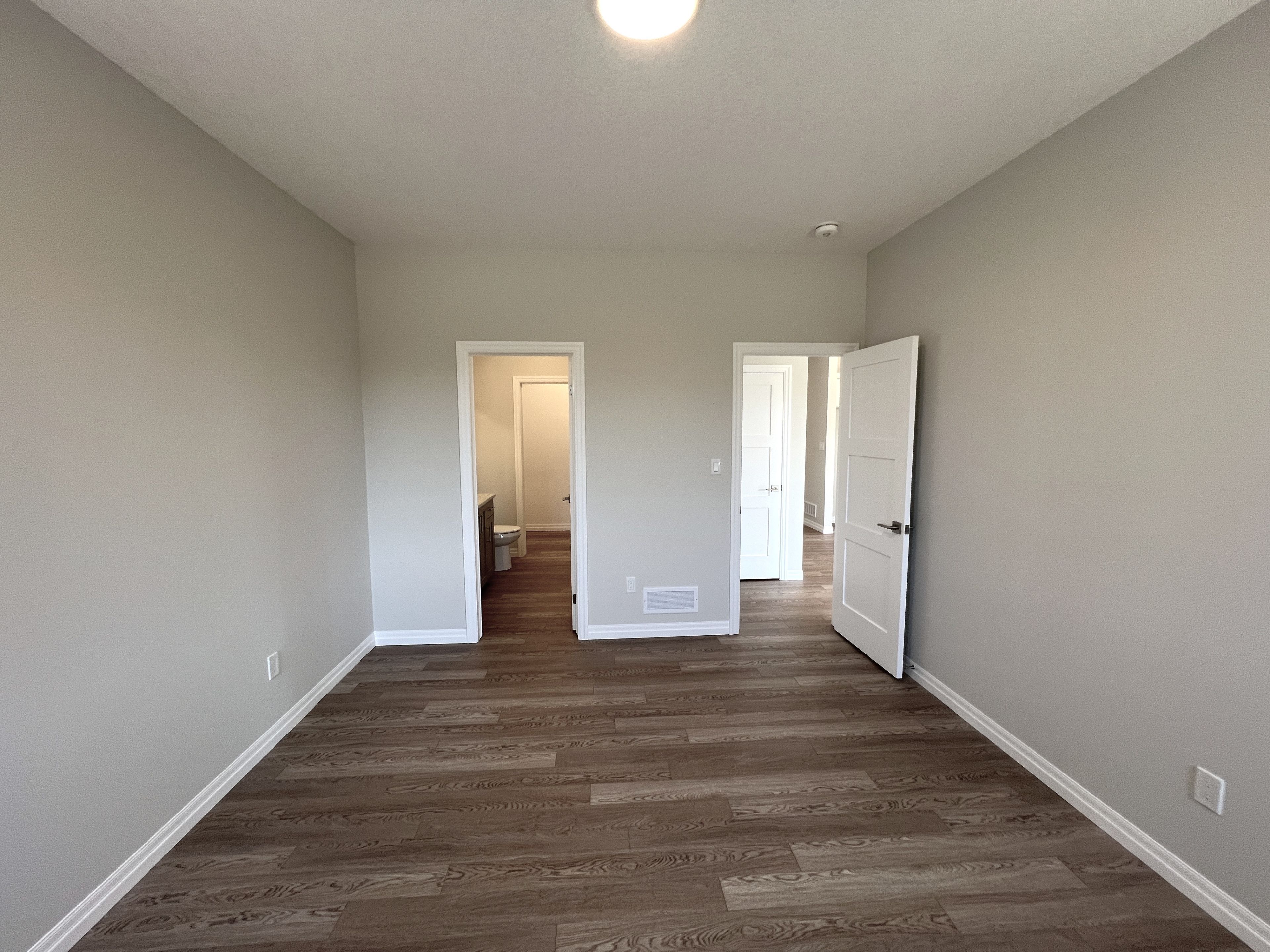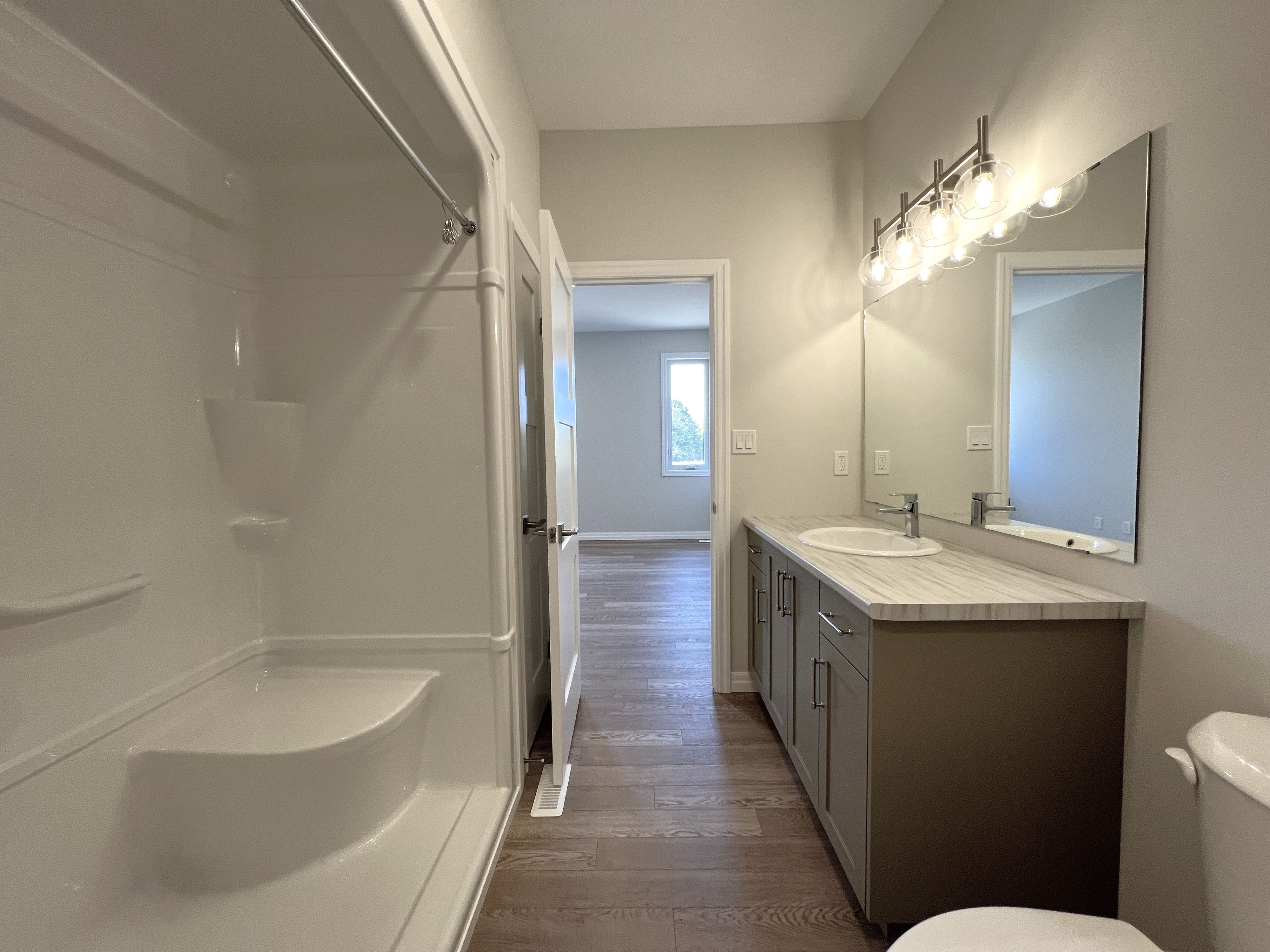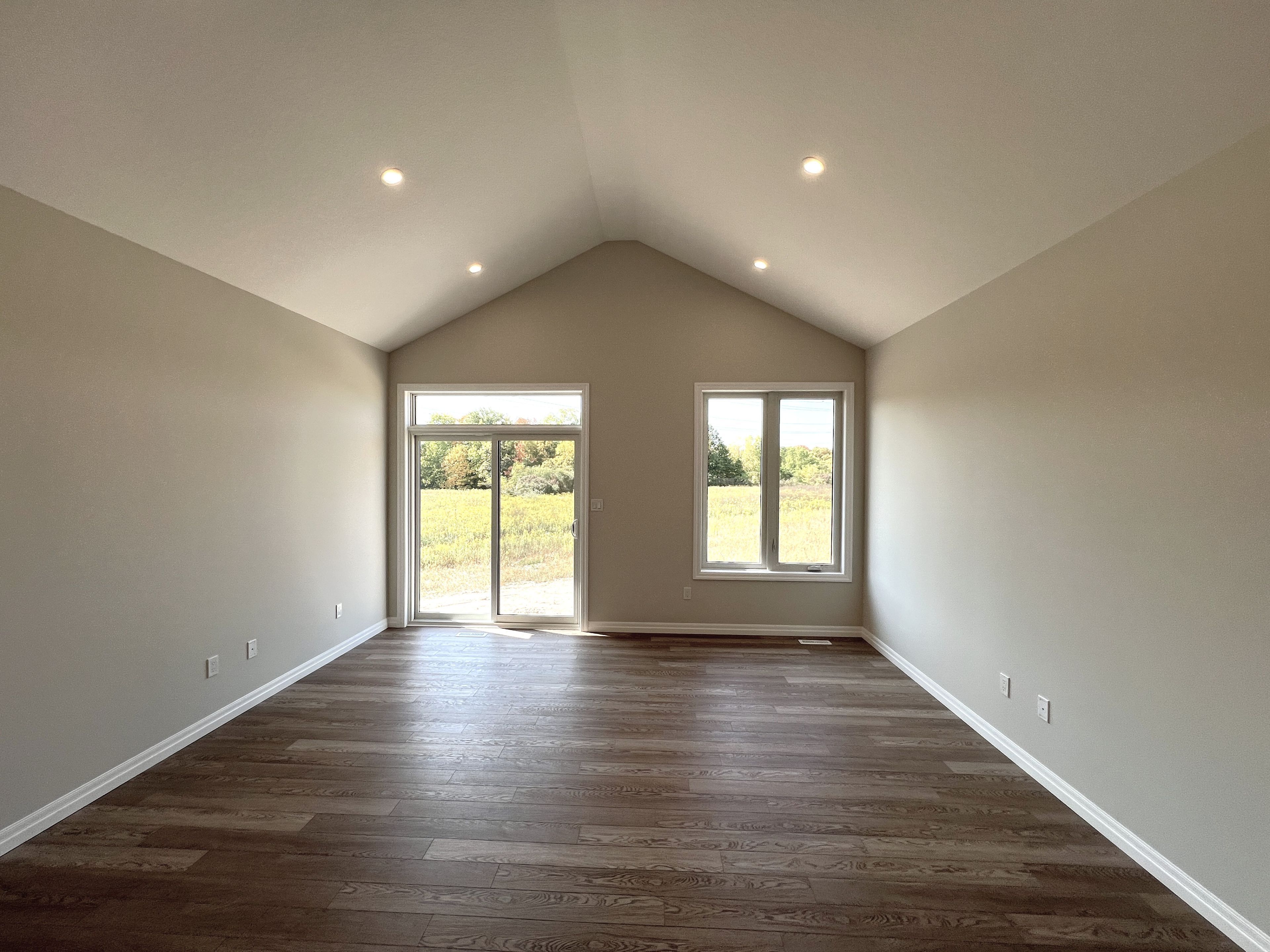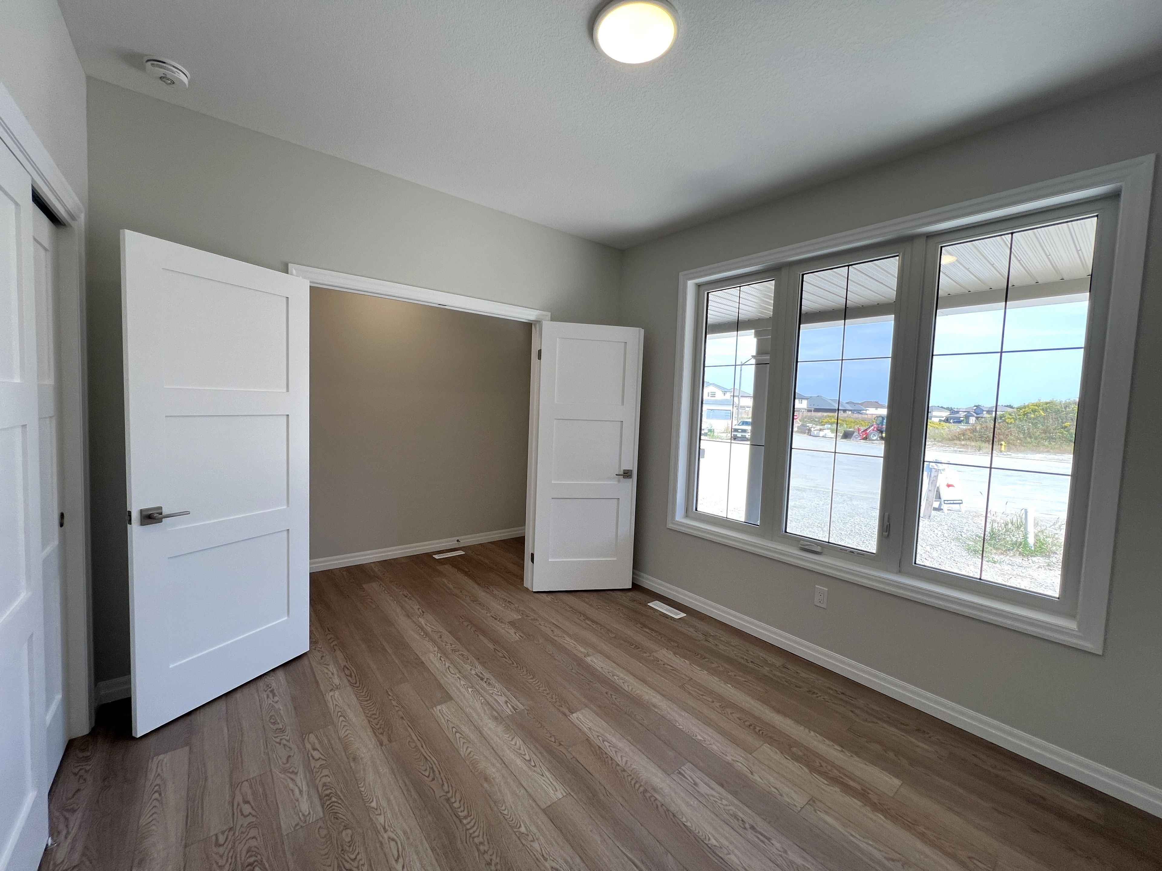 Move-in ready. This beautifully finished semi-detached bungalow built by hayhoe homes is located in the sought-after lynhurst heights community situated on a pie-shaped lot near the end of a quiet cul-de-sac, backing onto green space. It offers open-concept, single-floor living with 2 bedrooms and 2 bathrooms, including a private 3-piece ensuite. The main floor features 9' ceilings, luxury vinyl plank flooring, and a designer kitchen with quartz countertops, tile backsplash, a central island, and pantry -- all opening to a spacious great room with a cathedral and patio door leading to a rear deck. A second bedroom, full bathroom, and laundry room complete the main floor. The unfinished basement provides development potential for a future family room, additional bedroom, and bathroom. Other features include a single-car garage, covered front porch, central air, hrv system, tarion new home warranty, and numerous upgrades throughout. Ideally situated with easy access to london and close to parks, shopping, and restaurants. Taxes to be assessed.