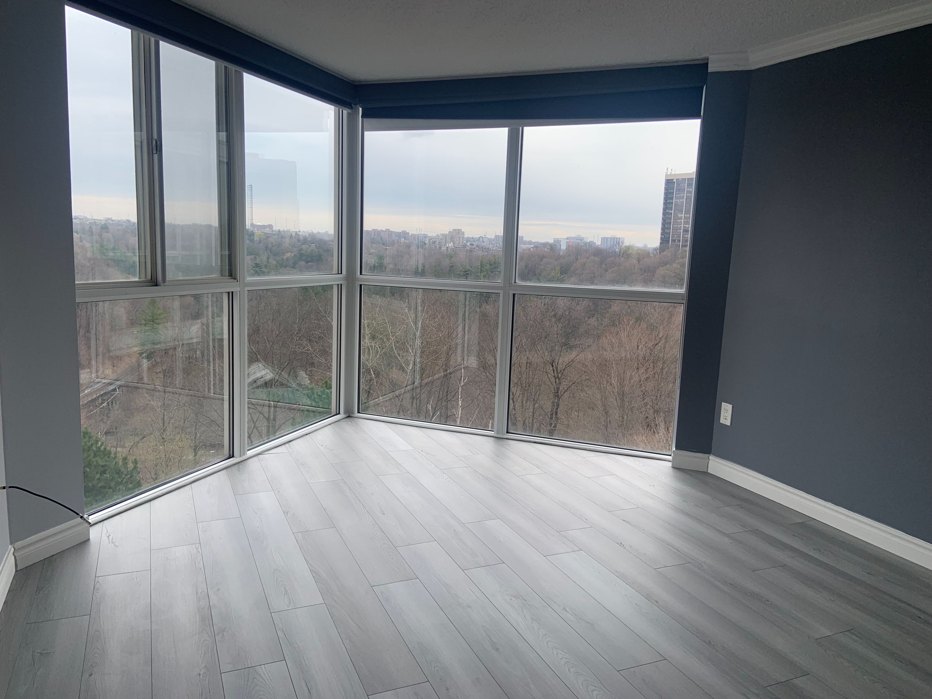 Spacious 2 bedroom with solarium overlooking ravine and conservation area, split bedroom plan, new laminate flooring to ceiling windows, very central location, great complex with resort type amenities including indoor pool, gym, tennis, squash, pool, ping pong and much more: new painting; 24 concierge, gorgeous trails behind the building, steps to ttc, dvp, shopping, aga khan complex.
