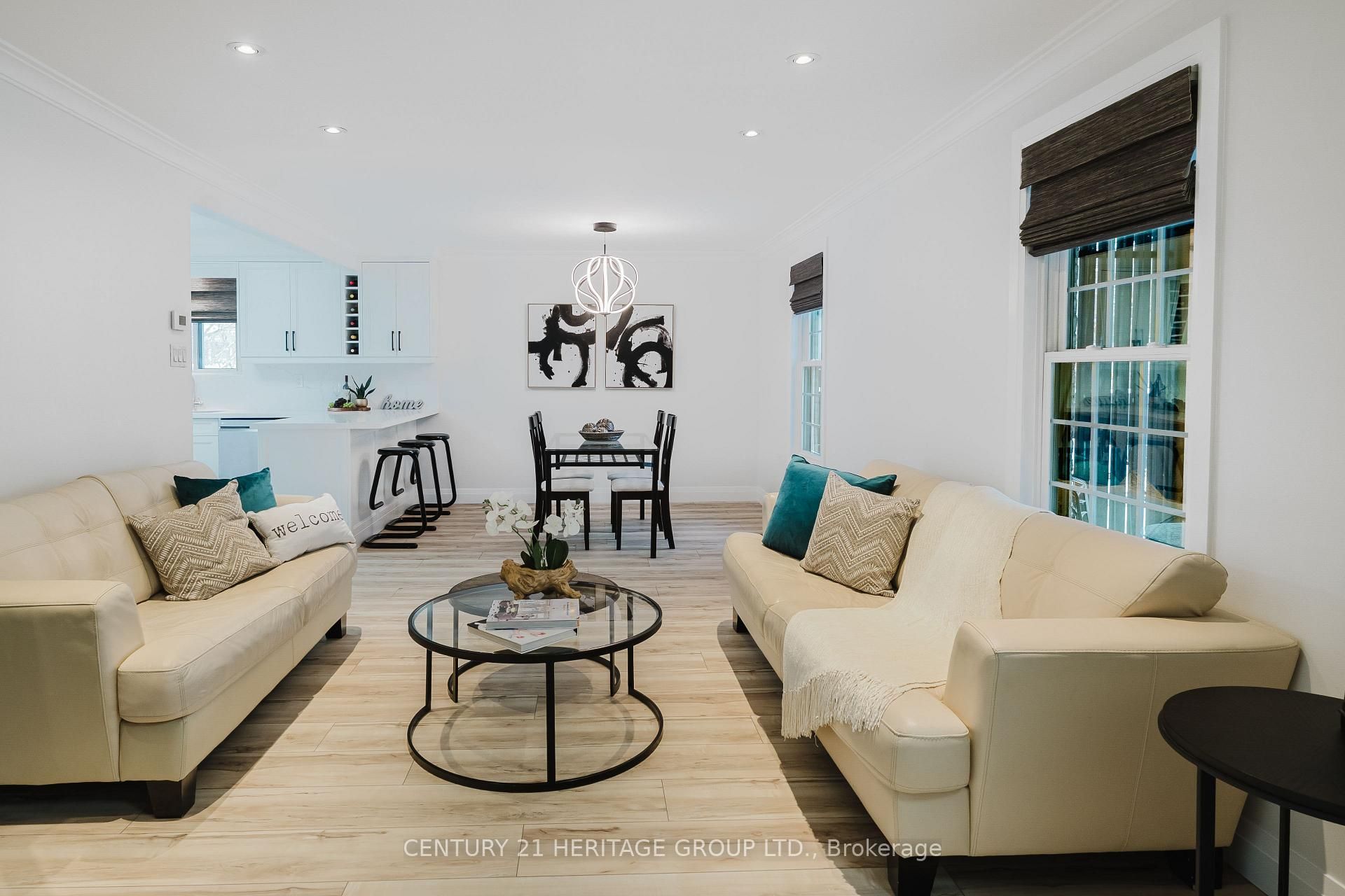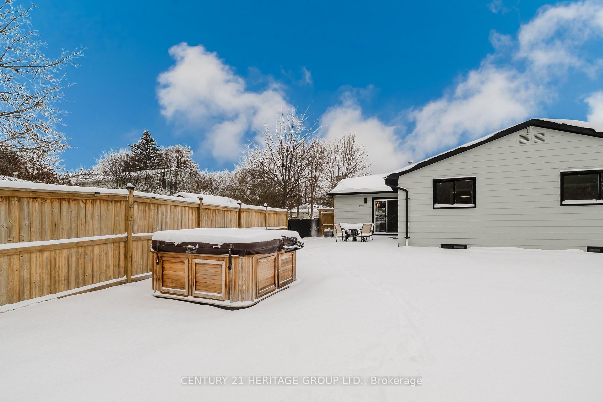 Rare find! Renovated bungalow with 20 x40 workshop on massive 93 x 185 ft pool size lot, with municiple serivces. Spectacular one-of-a-kind fully renovated 4-bedroom bungalow (approx. 3,000sqft living space) situated on a huge pool-size lot, tucked away on a quiet in-town private courtyard in a family-friendly neighbourhood. Features a brand-new 20' x 40' double car door garage/workshop with 13-ft ceilings, perfect for hobbyists or extra storage. Stunning new kitchen with quartz countertops, breakfast island, extra-tall uppers, stainless steel appliances, and walkout to the expansive backyard. Upgrades include 9" plank vinyl flooring, smooth ceilings, pot lights, crown moulding, open-concept layout, large walk-in pantry, closet organizers, and modern baths with floating vanities and glass showers. Recent improvements include newer fencing, new exterior garage doors and openers, exterior refacing, and concrete porch. Private backyard backing on to ravine and park land, offers a pool-size lot and hot tub-ideal for relaxing and entertaining. Brand-new finished basement provides generous additional living space for a growing family. Bonus solar panel contract included $$$reach out to listing agent for details.
