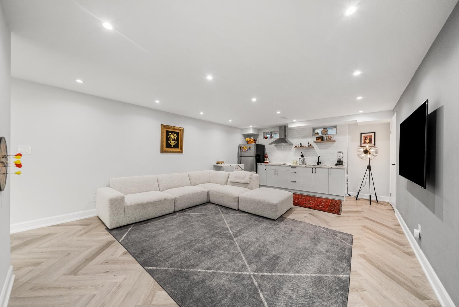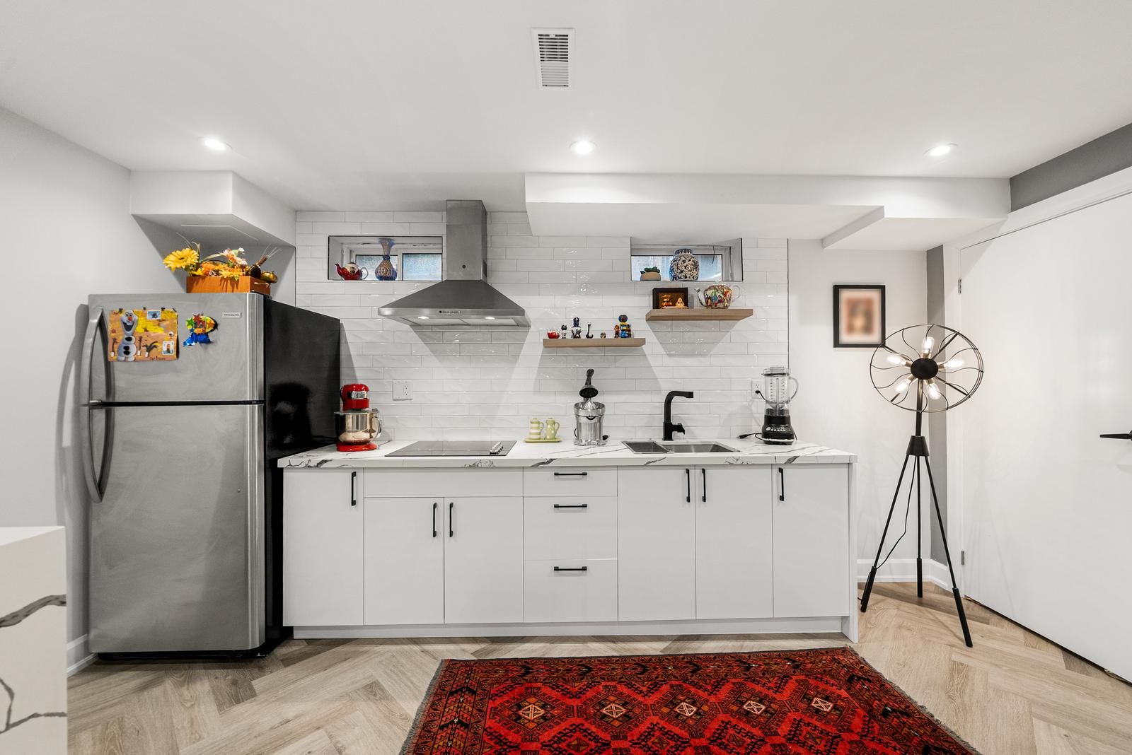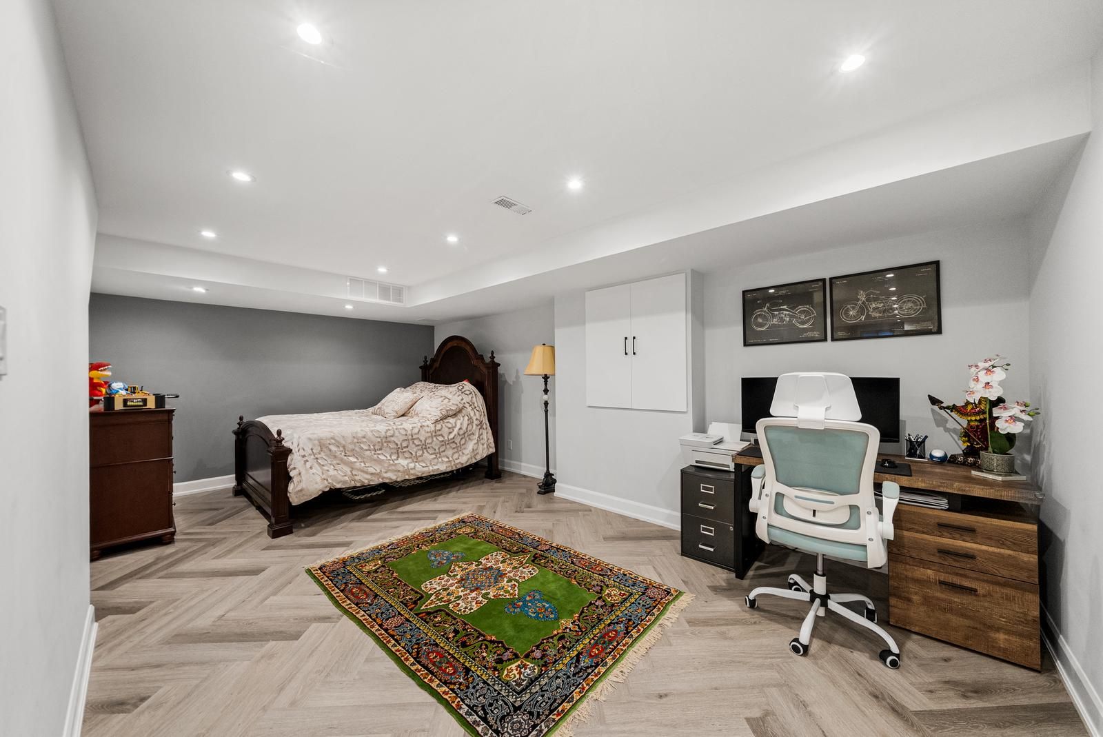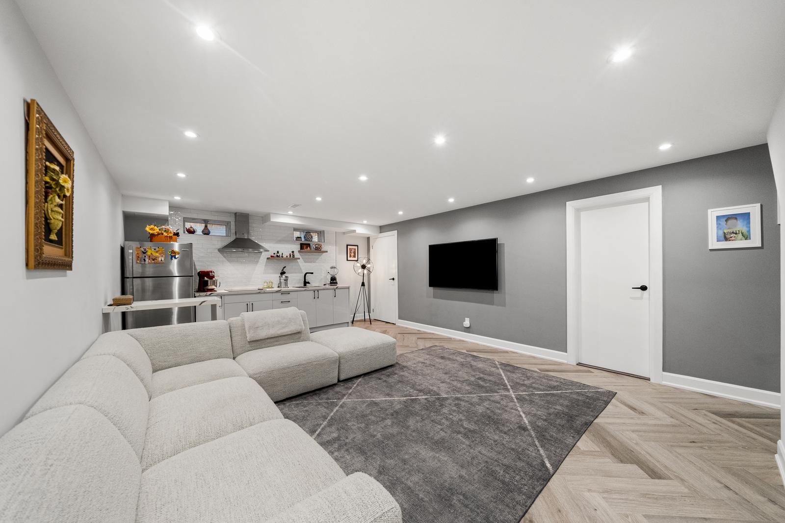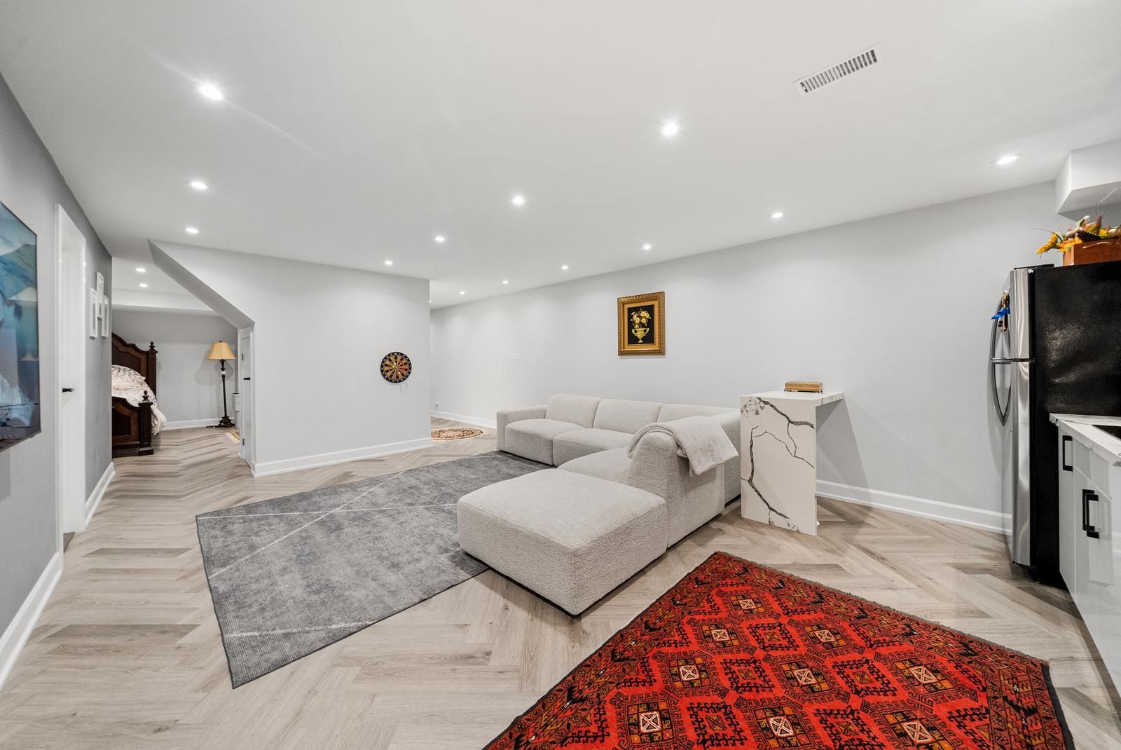 • Finished basement includes second kitchen and additional bedroom or office space.