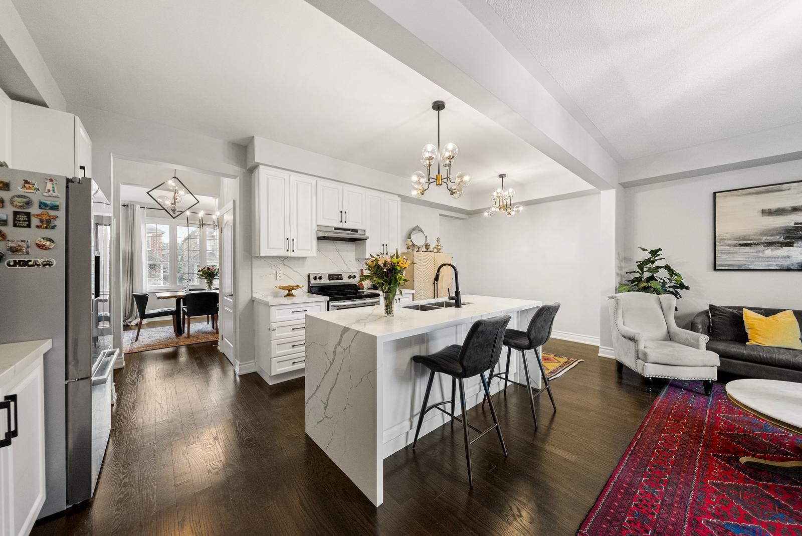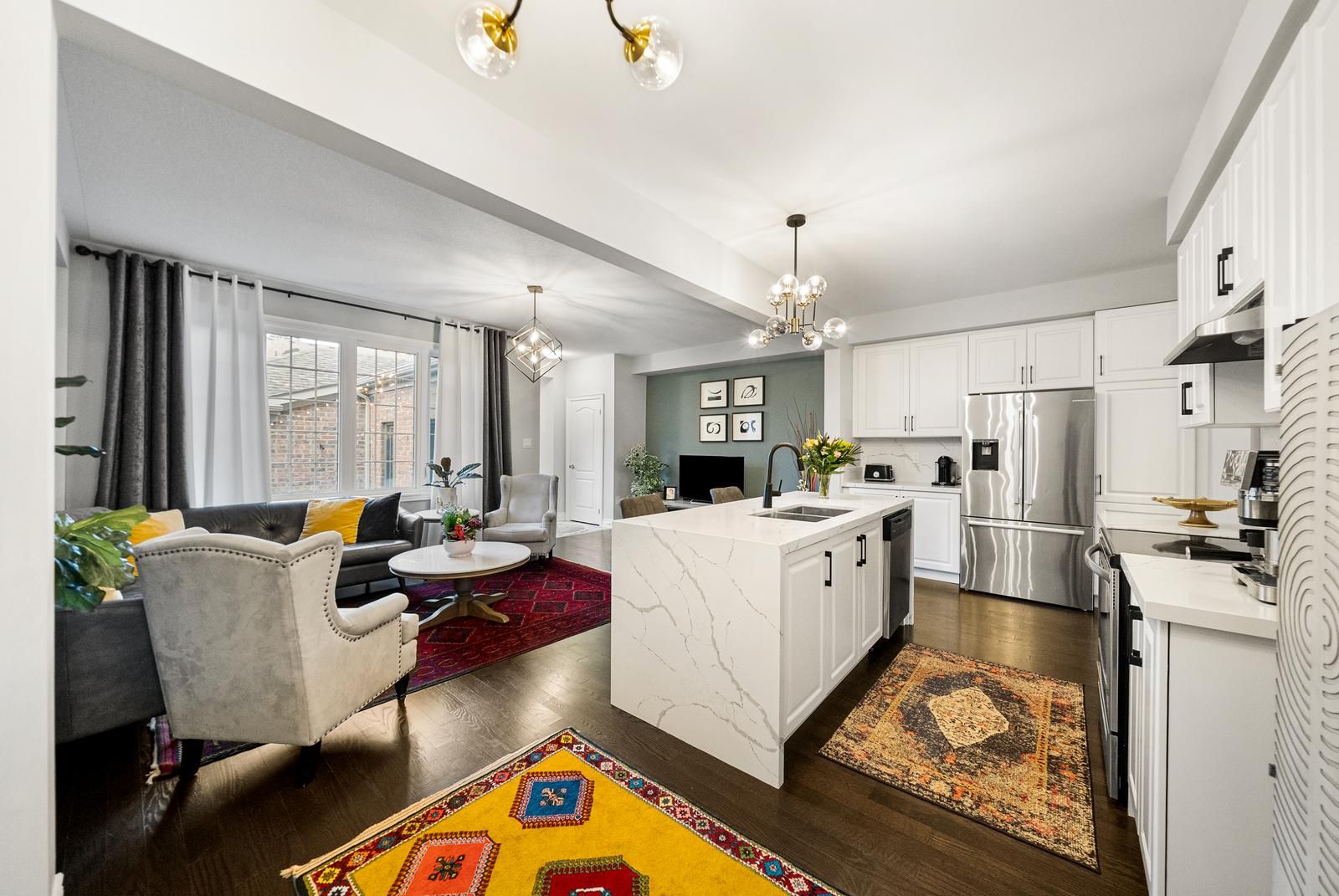 • Bright open-concept layout with 9' ceilings and hardwood floors.