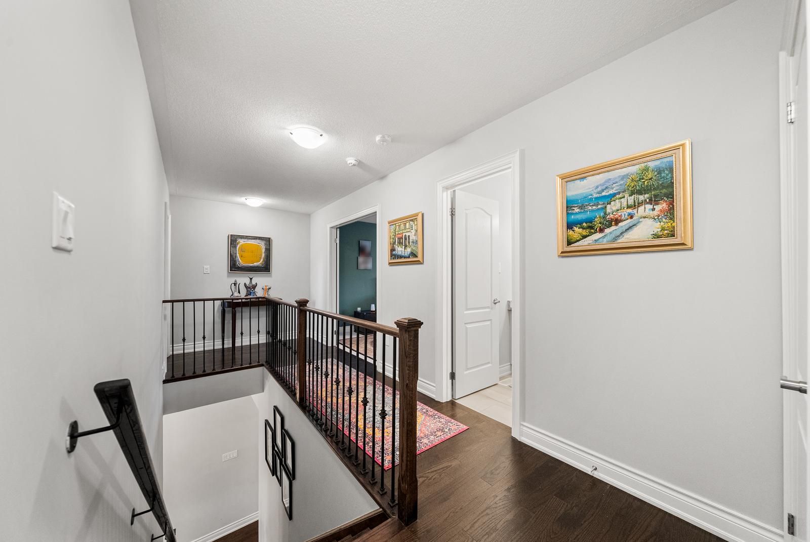 Stunning executive freehold townhome in the heart of east gwillimbury, sharon! Located in a highly sought-after community, this energy star-qualified home offers approx. 2,500 sq ft with 3 bedrooms and a bright open-concept layout featuring 9' ceilings and hardwood floors on the main floor. The renovated kitchen includes quartz countertops, backsplash, a waterfall island countertop with sink and dishwasher, and stainless steel top-of-the-line appliances. The primary suite features a walk-in closet and a 4-piece ensuite with a soaker tub. Two additional bedrooms with a second full bath complete the upper level, with a balcony in one of the bedrooms. Finished basement offers a second kitchen, additional bedroom/office space, 4-piece bath, and is ideal for an extended family. Over $100k in upgrades. Private interlocked courtyard, double garage plus driveway parking. Close to parks, schools, and amenities, and the queensville community centre