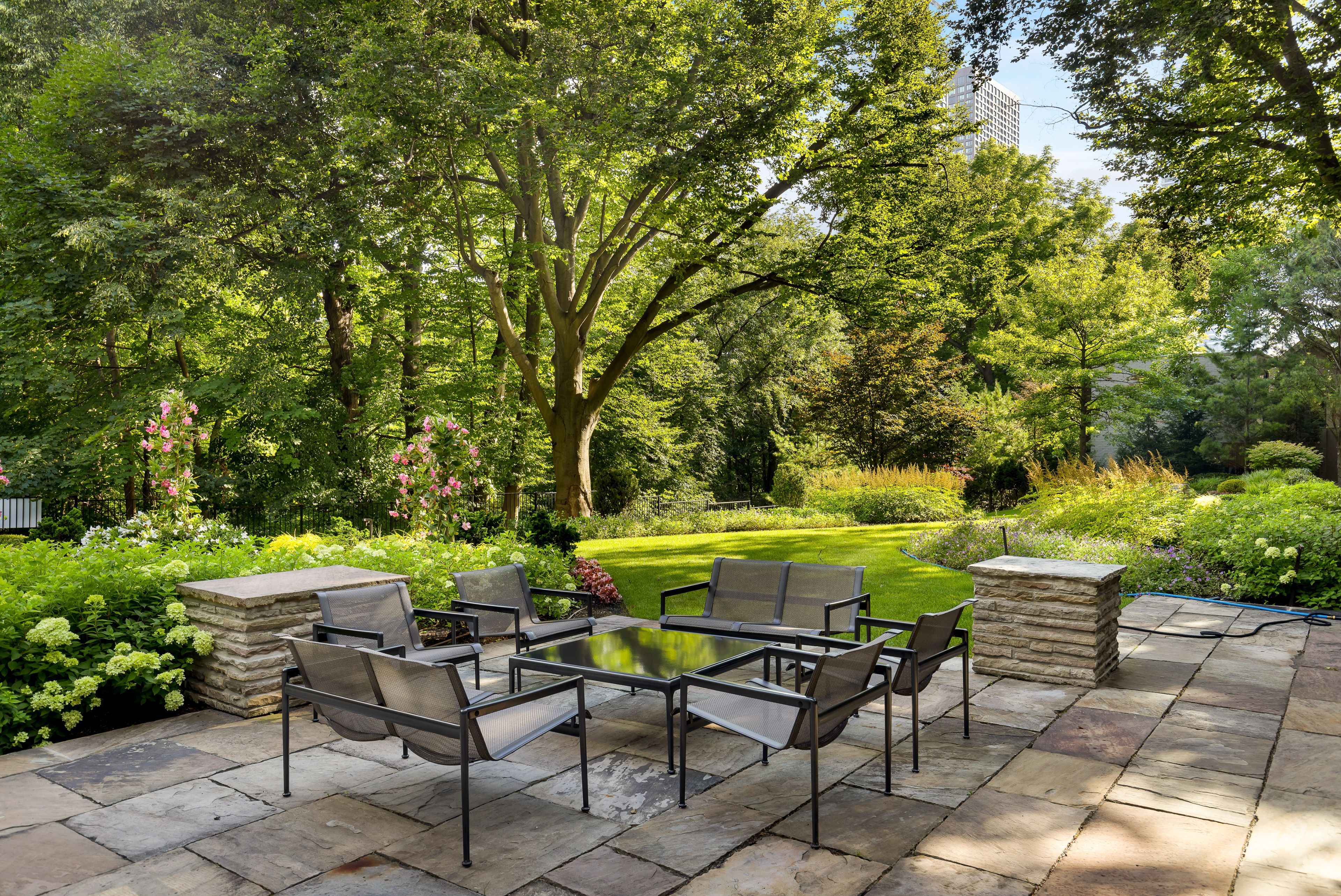• Private terrace overlooking mature trees and beautifully designed gardens.