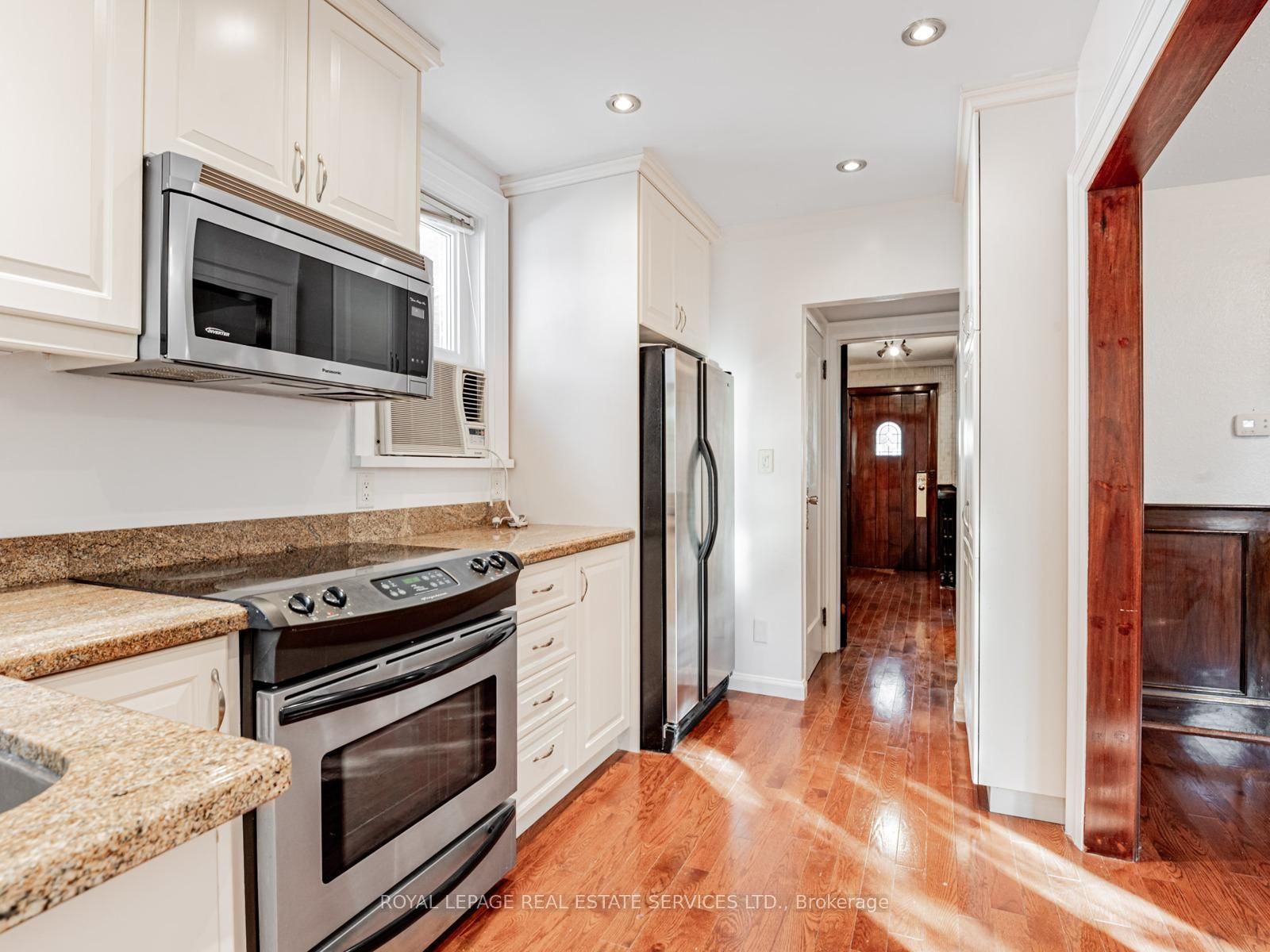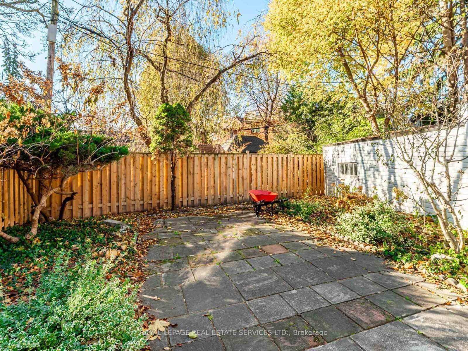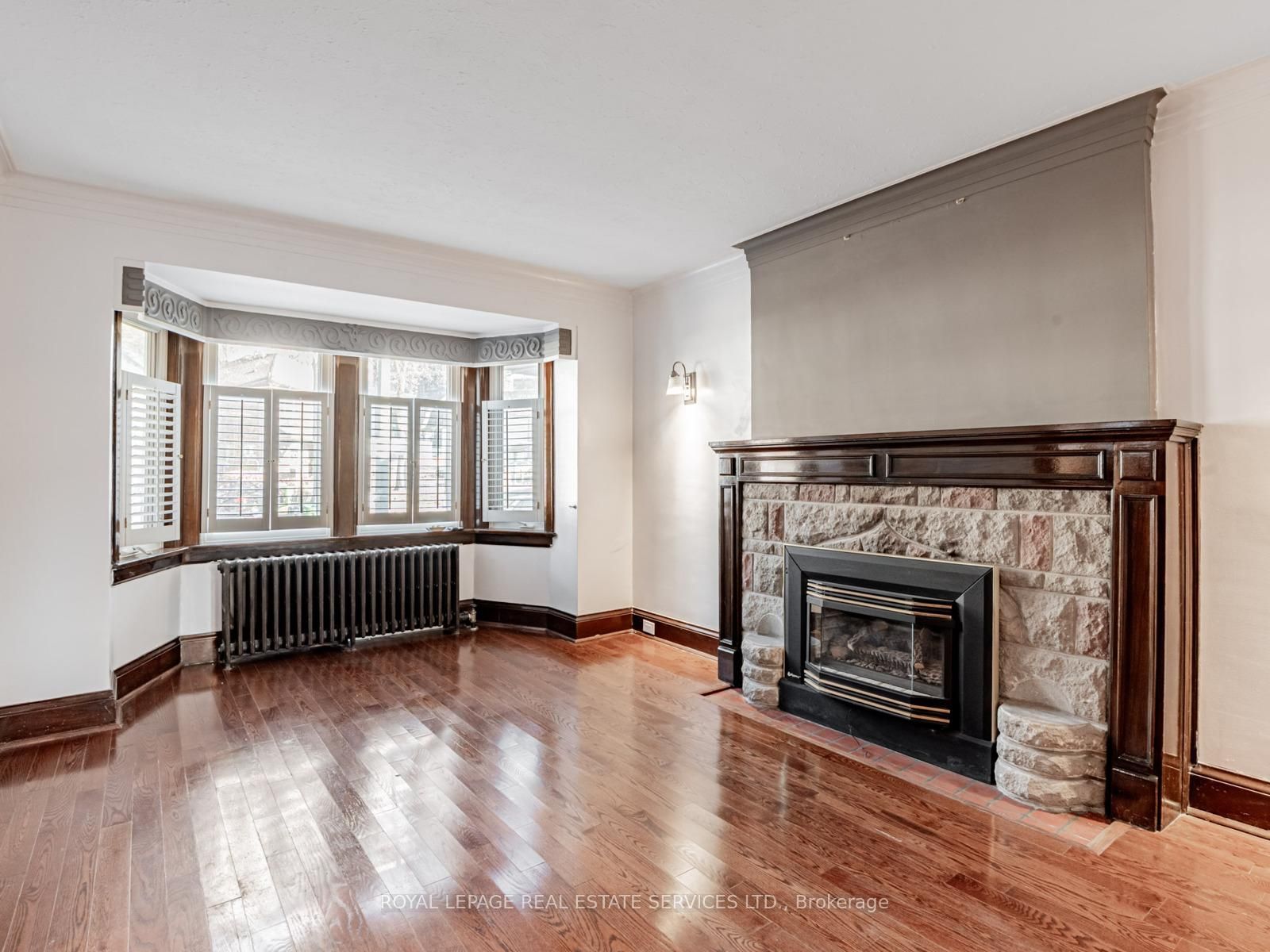 Detached 2 storey 3+2 bedroom, 2 full bath home set on peaceful crescent in the heart of one of toronto's most desirable, transit rich neighbourhoods. Thoughtfully updated, inviting residence features gleaming hardwood floors and elegant wainscoting throughout, blending timeless character with modern convenience. Sun filled main floor includes updated kitchen with granite counters, double sink overlooking the fenced backyard oasis, stainless steel appliances, ample ceiling height cabinetry, perfect for entertaining or everyday living. Formal living and dining rooms impress with matching hardwood, bay window with shutters, window coverings throughout, cozy gas fireplace. Upstairs offers three generous bedrooms with hardwood, including primary suite with double windows and cedar closet, updated main bath with glass shower and floor to ceiling tile, rare second bedroom walkout to private balcony, ideal as a second primary. Newer windows throughout provide abundant natural light and privacy, including frosted window on the upper landing. Finished basement with separate side entrance adds flexible living space, spacious fourth bedroom, 3 piece bath with shower, laundry room with two lg units, and a versatile recreation or play area. Enjoy direct access to garage and extra parking in shared drive. Nestled steps from ttc bus routes, yonge-university subway, dvp/401, oriole park and st. Monica schools. Experience privacy, peace, connection to city amenities that is truly rare in toronto.