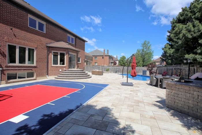 Welcome to this exceptional detached residence in the prestigious bayview hill community, set on a premium pie-shaped lot widening to an impressive 90 feet at the rear. Nestled on a quiet street, this elegant home offers close to 5,000 sq ft of living space above ground with a thoughtfully designed layout and upscale finishes throughout, including extensive woodwork and wainscoting, hardwood flooring on the second floor, and marble and hardwood flooring on the main level. A grand double-door entry opens to a stunning foyer featuring a circular staircase and chandelier. The main floor boasts 9-ft ceilings, custom flooring, formal living and dining rooms with crown moulding, pot lights, and two gas fireplaces. The spacious family room overlooks a beautifully landscaped backyard oasis. The gourmet kitchen is equipped with a centre island, built-in stainless steel appliances, and a bright breakfast area with seamless views of the backyard-perfect for everyday living and entertaining. Private main-floor office with built-in cabinetry. Mudroom, and laundry add functionality and convenience. Upstairs features 5 generously sized bedrooms, all with ensuite access. The luxurious primary suite offers a spa-inspired 6-piece ensuite with glass shower, jacuzzi, and double vanity. A fully finished basement with two staircases includes a large recreation area with wet bar, cedar room, additional bedrooms, and bathrooms. A separate in-law suite with its own kitchen, laundry, and separate entrance provides excellent flexibility and privacy. The backyard is a true retreat, complete with an in-ground salt pool, basketball court, stone bbq, fire pit, and gazebo-ideal for entertaining, located within top-ranking bayview hill elementary and bayview secondary (ib program), and just minutes to parks, shopping, and hwy 404. Rare opportunity to own a luxury home in one of richmond hill's most sought-after neighborhoods.