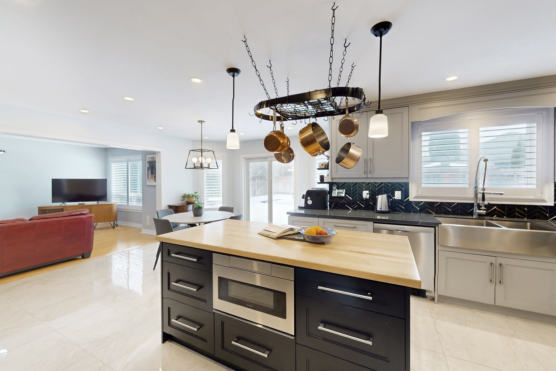 • Bright kitchen with a walkout to the backyard and a gas fireplace.