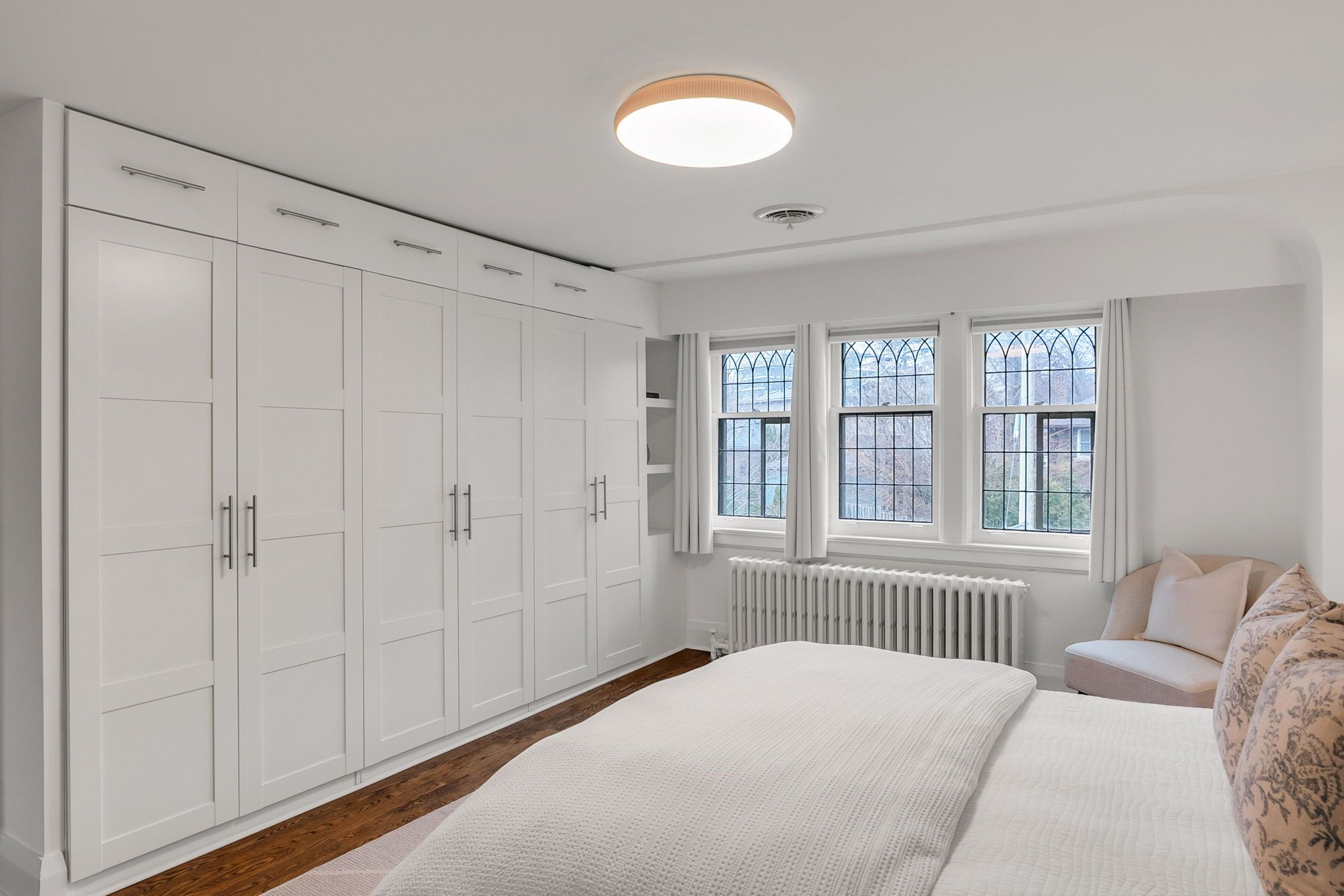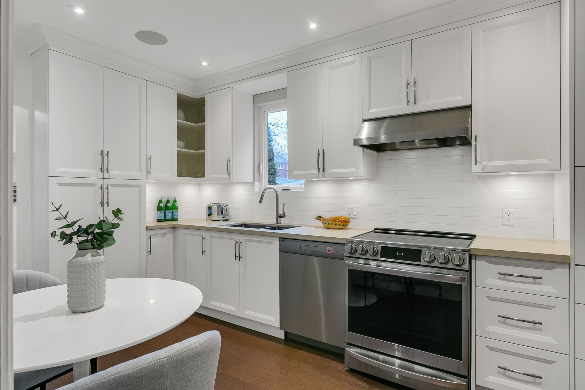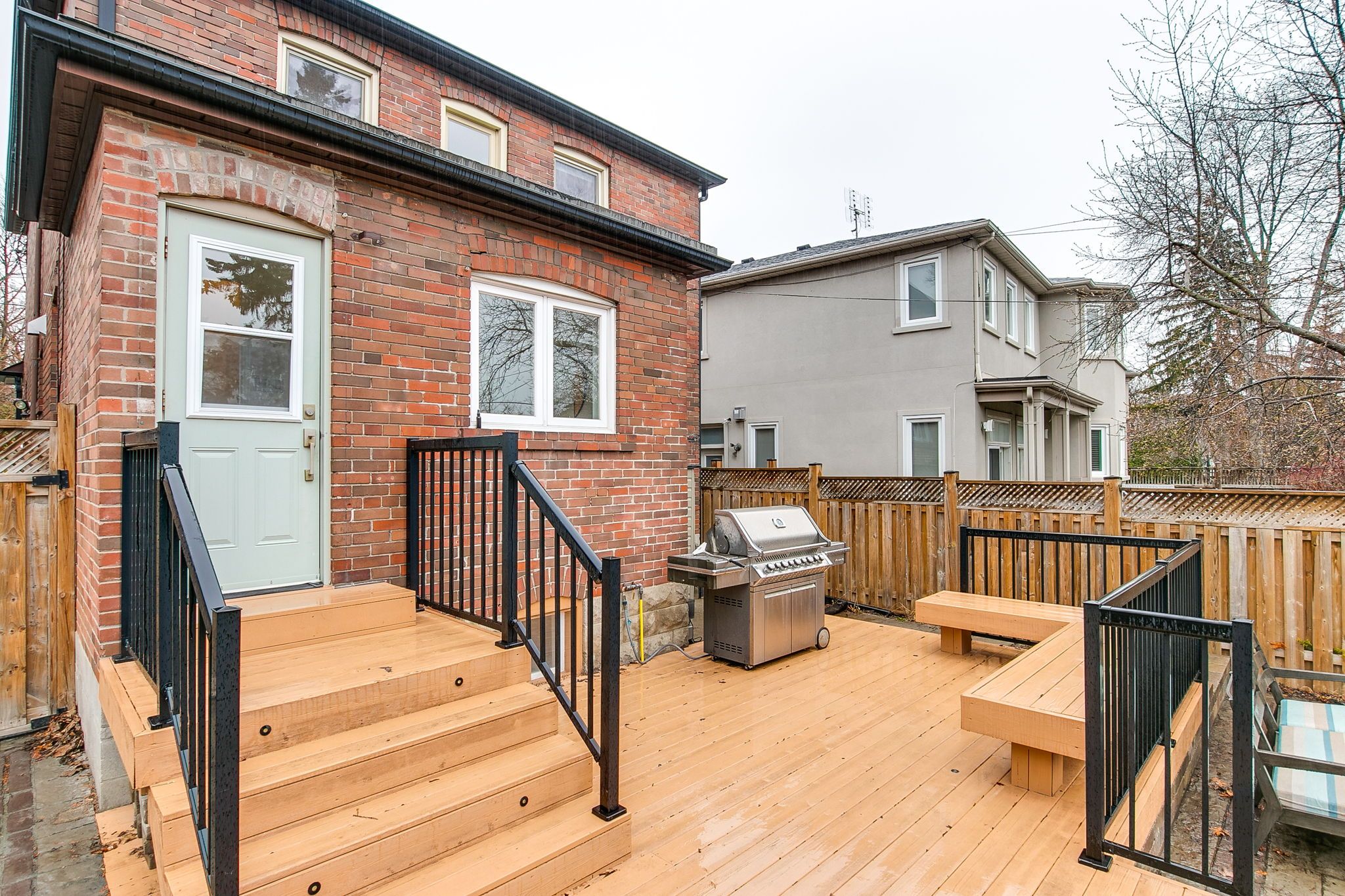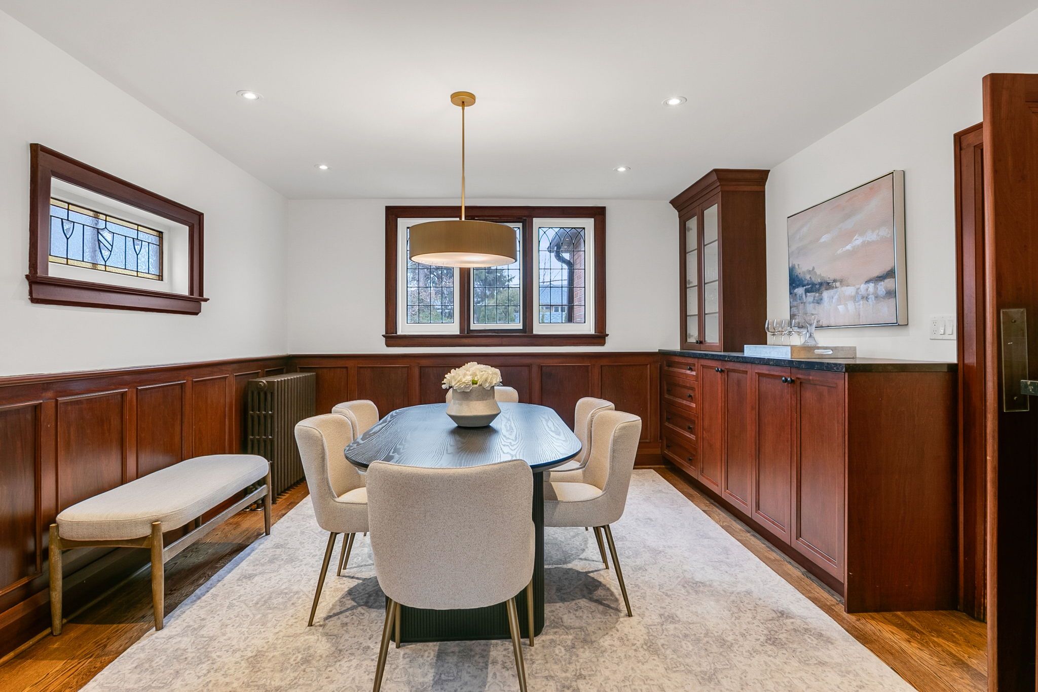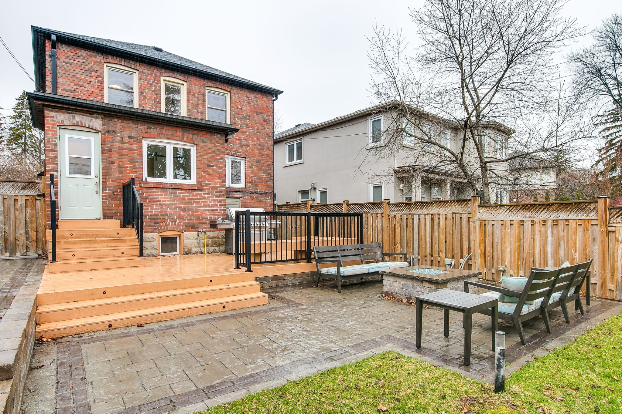 This gracious, tastefully renovated family home on one of leaside's most coveted streets offers an exceptional blend of timeless character and thoughtful modern updates. Rich in charm, this residence showcases original details including leaded and stained glass windows, etched french doors, and classic gumwood wainscotting, seamlessly complemented by custom built-ins designed for both aesthetics and functionality. The principal rooms are bright, spacious, and beautifully proportioned for everyday living and elegant entertaining. The expansive living room features a full wall of custom cabinetry, while the dining room is enhanced by original gumwood built-ins for extra storage and to hold a convenient wine fridge. The renovated eat-in kitchen offers quartz countertops and abundant cabinetry. A charming den or sitting room overlooks the deep rear garden, with a discreetly tucked powder room completing the main level. Upstairs, the second floor offers three generously sized bedrooms, all with ample closet space, along with two additional hallway closets for added storage. The three bedrooms share a stylishly renovated four-piece bath. The finished lower level provides excellent additional living space, featuring a large, light-filled family room, a three-piece bath, and a dedicated laundry room, ideal for growing families. The beautifully landscaped deep backyard is perfect for entertaining, with a large deck, stone dining area, built-in gas fireplace, and an attractive storage shed. Ideally located just one block from the shops, cafes, and restaurants of bayview avenue, and within the highly sought-after bessborough elementary and middle school district, this is a wonderful opportunity to enjoy the very best of leaside living.