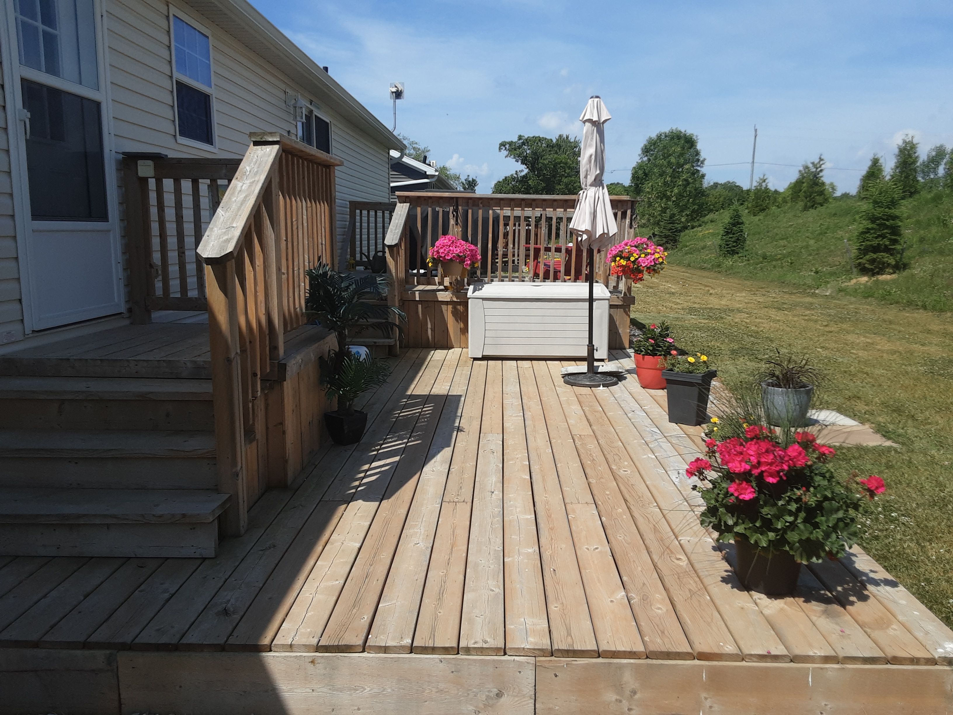 Welcome to 7 forest trail in sandusk creek properties, where comfort and community come together. Built in 2019 and thoughtfully maintained by the original owner, this 1,350 sq ft modular bungalow sits on an oversized premium lot with no rear neighbours offering added privacy and a peaceful outdoor setting. New (sept 25) concrete double driveway and front walkway! The layout includes two bedrooms, a den, and two bathrooms, all set on a poured concrete slab. Upgraded throughout, the home features custom blinds, blackout panels in the bedrooms, and top-down bottom-up blinds in the front rooms for tailored light and privacy. High-end, carpet-free flooring runs throughout, complemented by updated light fixtures and ceiling fans. Moen fixtures bring a polished look to both kitchen and bath areas. The primary suite includes a 3-piece ensuite with walk-in shower, and the open living space features a natural gas fireplace for cozy evenings. A york central air system, still under warranty, adds to your year-round comfort. Outside, enjoy a 12 x 12 deck off the dining area with a gas line for grilling, a private 20 x 12 lower deck, and a welcoming front porch. A single-car garage and a (new) double driveway complete the package. Located in a waterfront community on leased land ($520/month), with an additional $300/month maintenance fee covering lawn care and snow removal. Fibre optic internet on site. Community amenities include access to lake erie, an inground pool, kayak and canoe storage, a fenced dog park, and a full calendar of social activities. This smoke-free and pet-free home is a clean, move-in-ready option in a vibrant waterfront community.