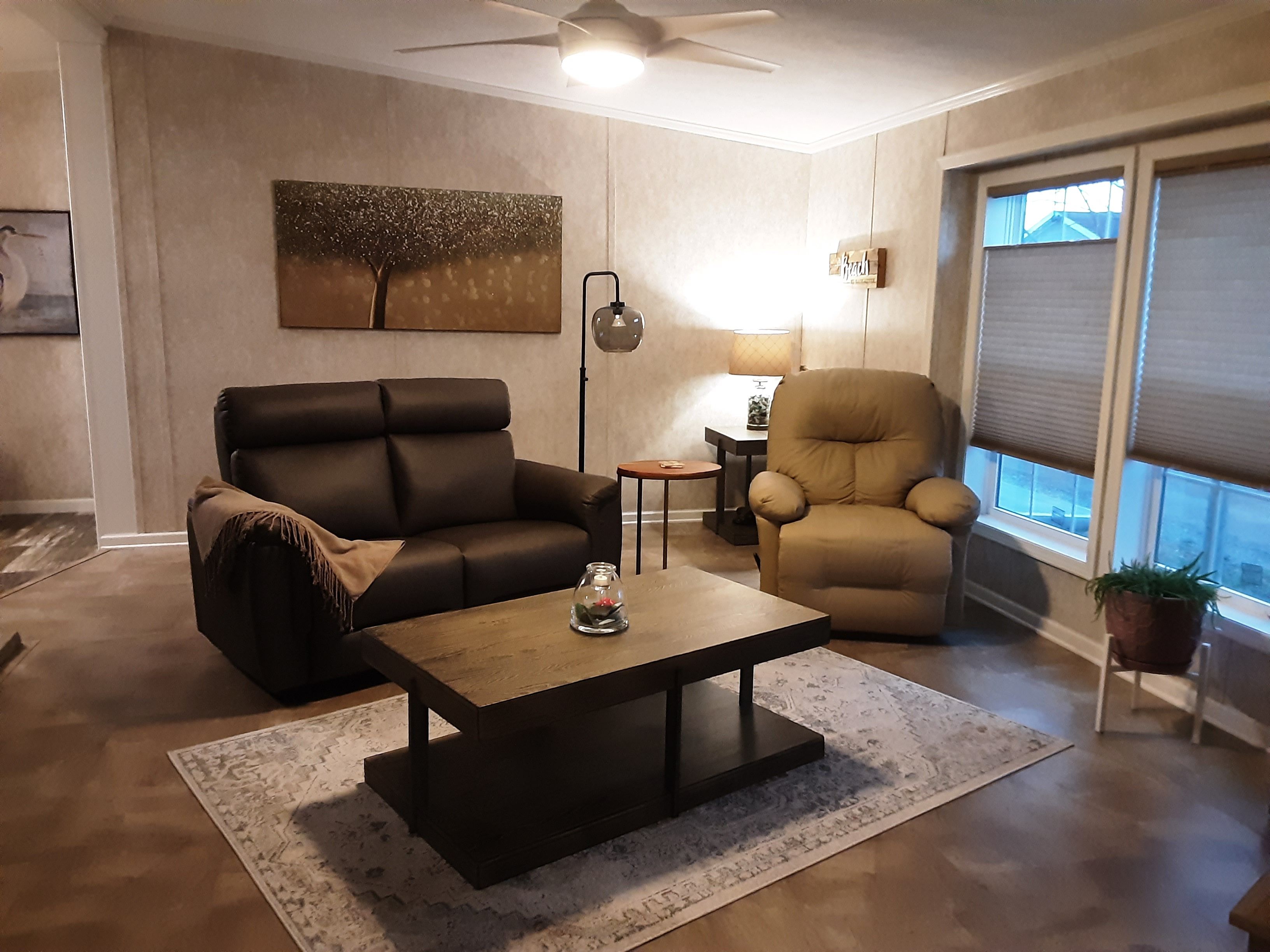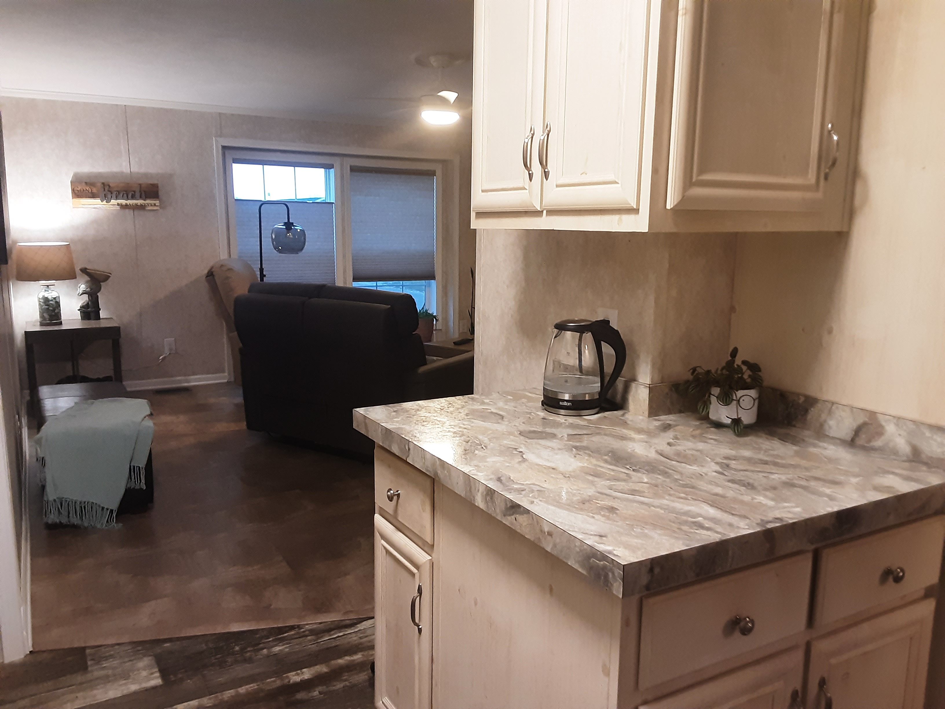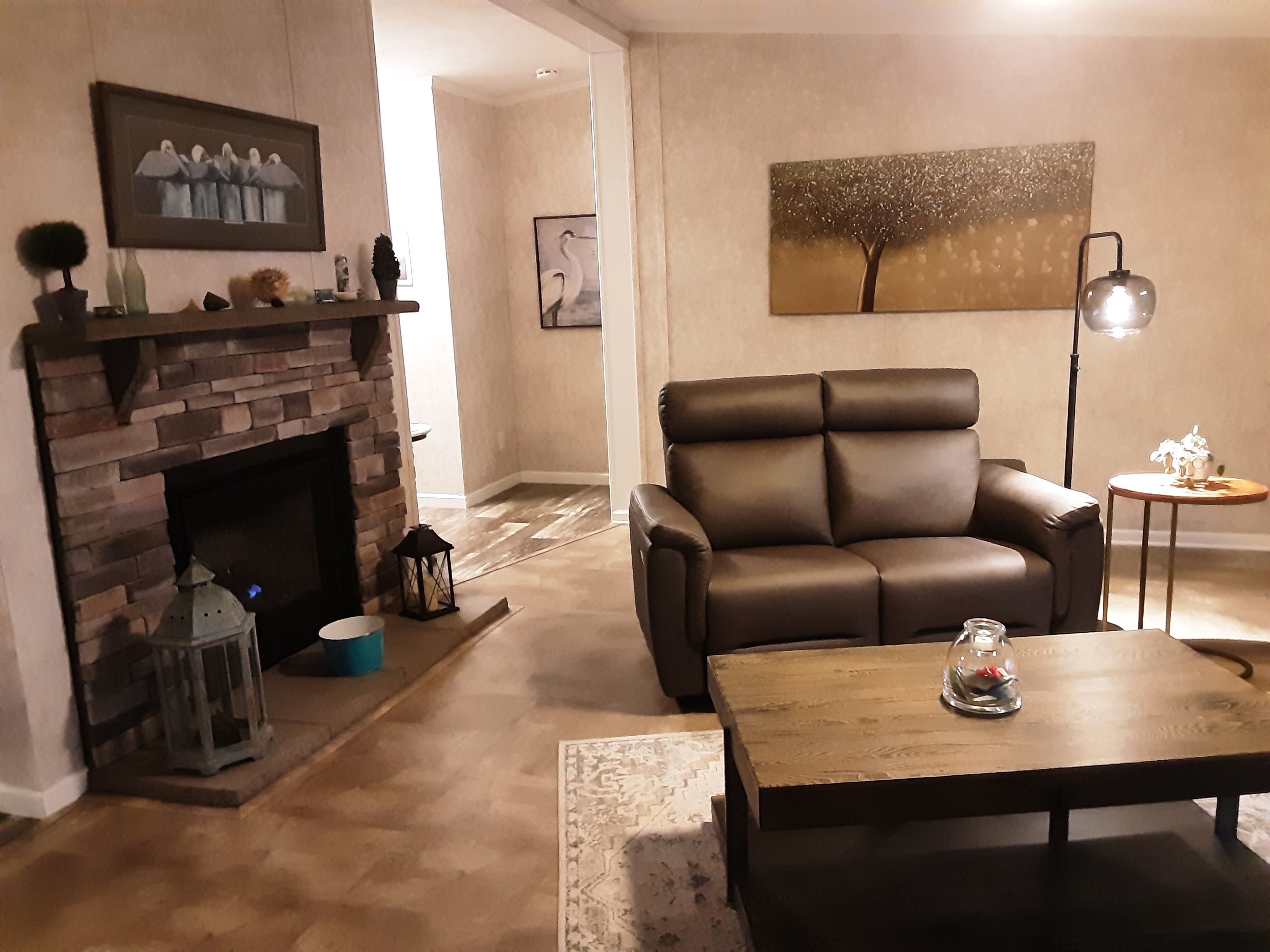 Welcome to 7 forest trail in sandusk creek properties, where comfort and community come together. Built in 2019 and thoughtfully maintained by the original owner, this 1,350 sq ft modular bungalow sits on an oversized premium lot with no rear neighbours offering added privacy and a peaceful outdoor setting. New (sept 25) concrete double driveway and front walkway! The layout includes two bedrooms, a den, and two bathrooms, all set on a poured concrete slab. Upgraded throughout, the home features custom blinds, blackout panels in the bedrooms, and top-down bottom-up blinds in the front rooms for tailored light and privacy. High-end, carpet-free flooring runs throughout, complemented by updated light fixtures and ceiling fans. Moen fixtures bring a polished look to both kitchen and bath areas. The primary suite includes a 3-piece ensuite with walk-in shower, and the open living space features a natural gas fireplace for cozy evenings. A york central air system, still under warranty, adds to your year-round comfort. Outside, enjoy a 12 x 12 deck off the dining area with a gas line for grilling, a private 20 x 12 lower deck, and a welcoming front porch. A single-car garage and a (new) double driveway complete the package. Located in a waterfront community on leased land ($520/month), with an additional $300/month maintenance fee covering lawn care and snow removal. Fibre optic internet on site. Community amenities include access to lake erie, an inground pool, kayak and canoe storage, a fenced dog park, and a full calendar of social activities. This smoke-free and pet-free home is a clean, move-in-ready option in a vibrant waterfront community. Financing support may be available. We have identified mortgage lenders familiar with land-lease communities, helping qualified buyers explore purchase options with confidence.