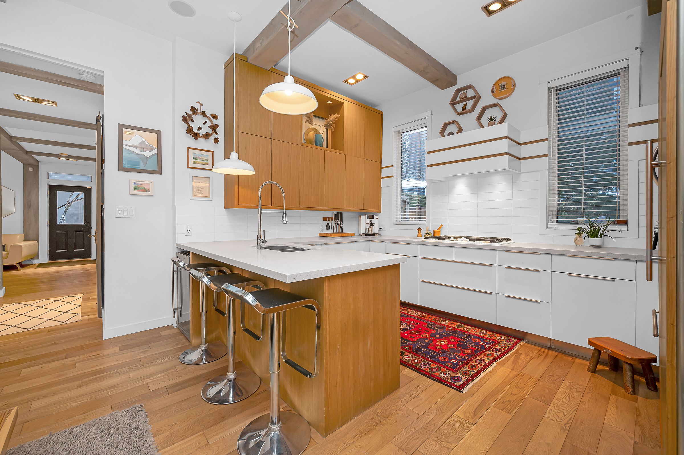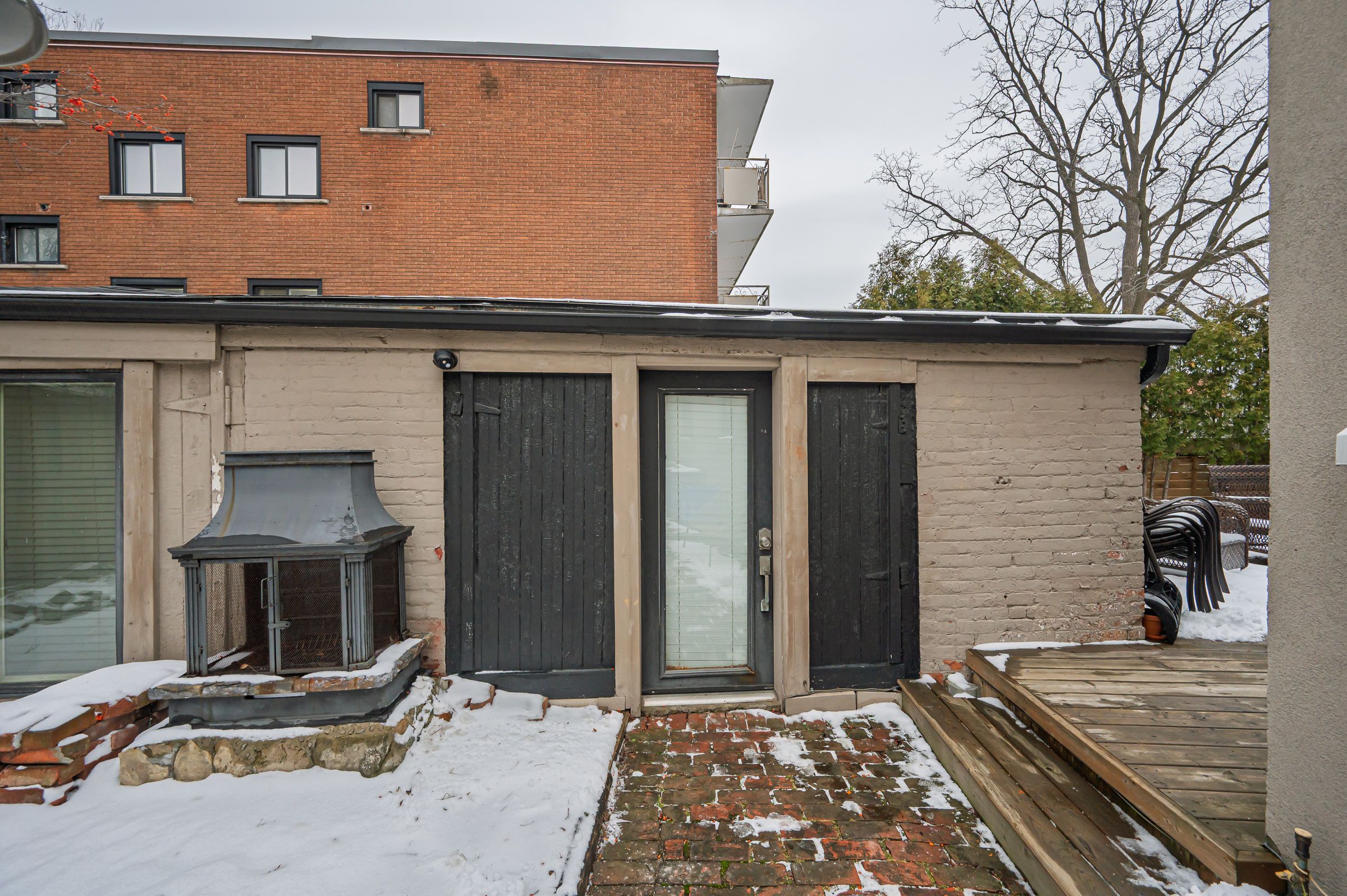 Nestled in hamilton's historic corktown neighbourhood, this charming one-level brick home is a rare blend of timeless character and thoughtful modern updates, having truly stood the test of time. The main house offers 2 bedrooms and 2 bathrooms, including a private ensuite. This well-appointed residence features multiple family rooms that provide flexible, comfortable living spaces. The kitchen is a vibe with built-in cabinetry, stainless steel appliances and higher end finishes. Step outside to enjoy a large deck and patio area within a fully fenced yard, perfect for entertaining or quiet relaxation. Adding exceptional value is a separate detached 400 sqft bachelor suite on the property featuring a 3 pc bath, gas fireplace, and kitchenette, ideal for extended family, guests, or potential additional income. With private parking for two cars and a location just minutes from downtown hamilton's vibrant restaurants, cafés, and shops, this is a special opportunity to own a piece of history without sacrificing convenience. Seller willing to sell the home fully furnished!