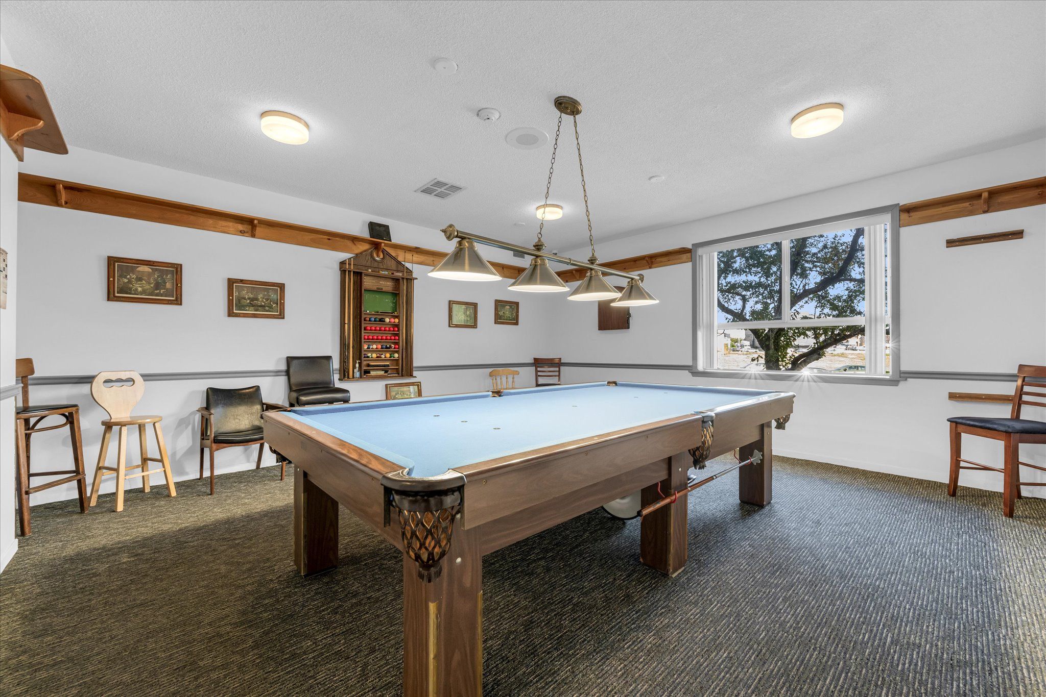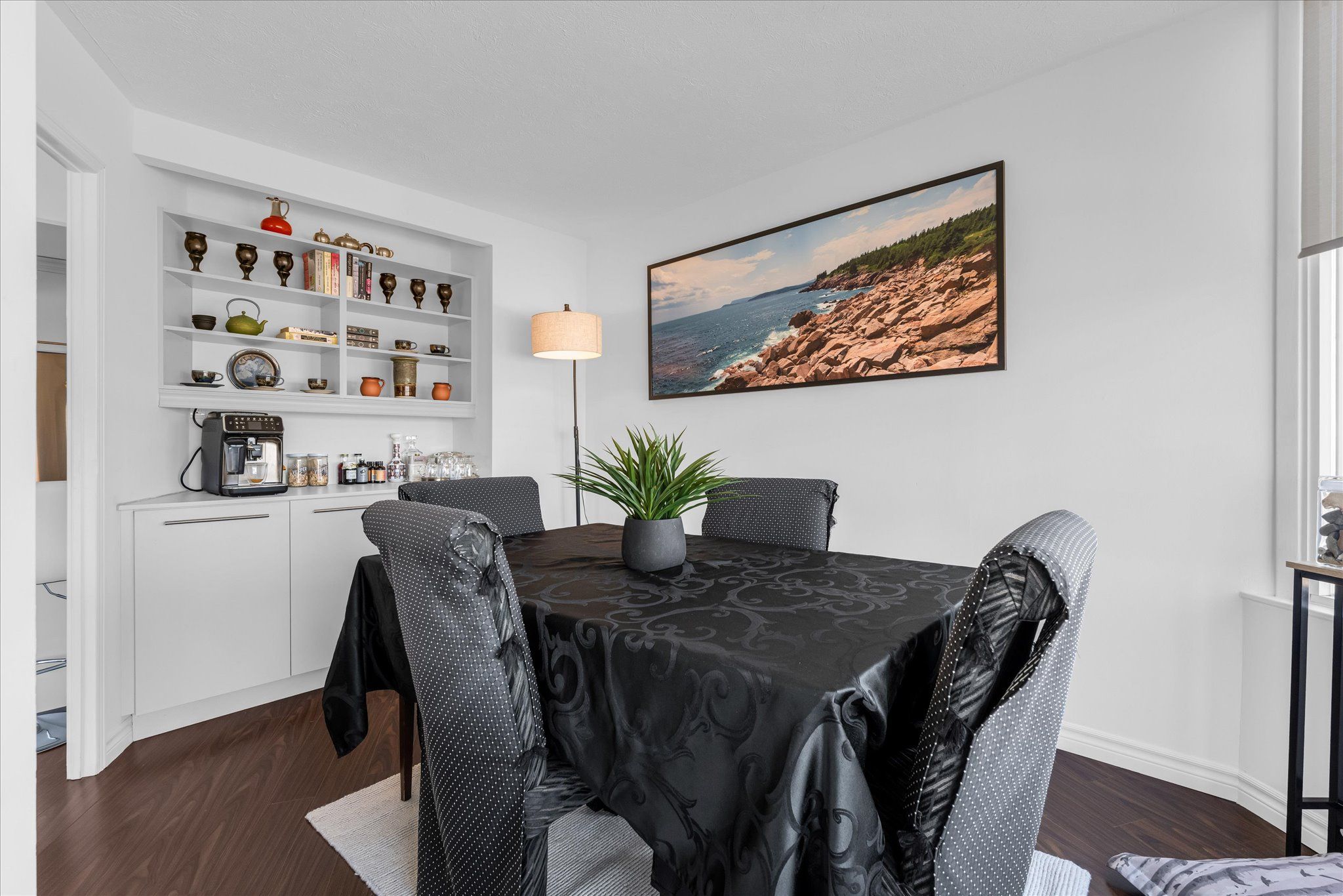 • Versatile den converted into a stylish dining area with bar.
