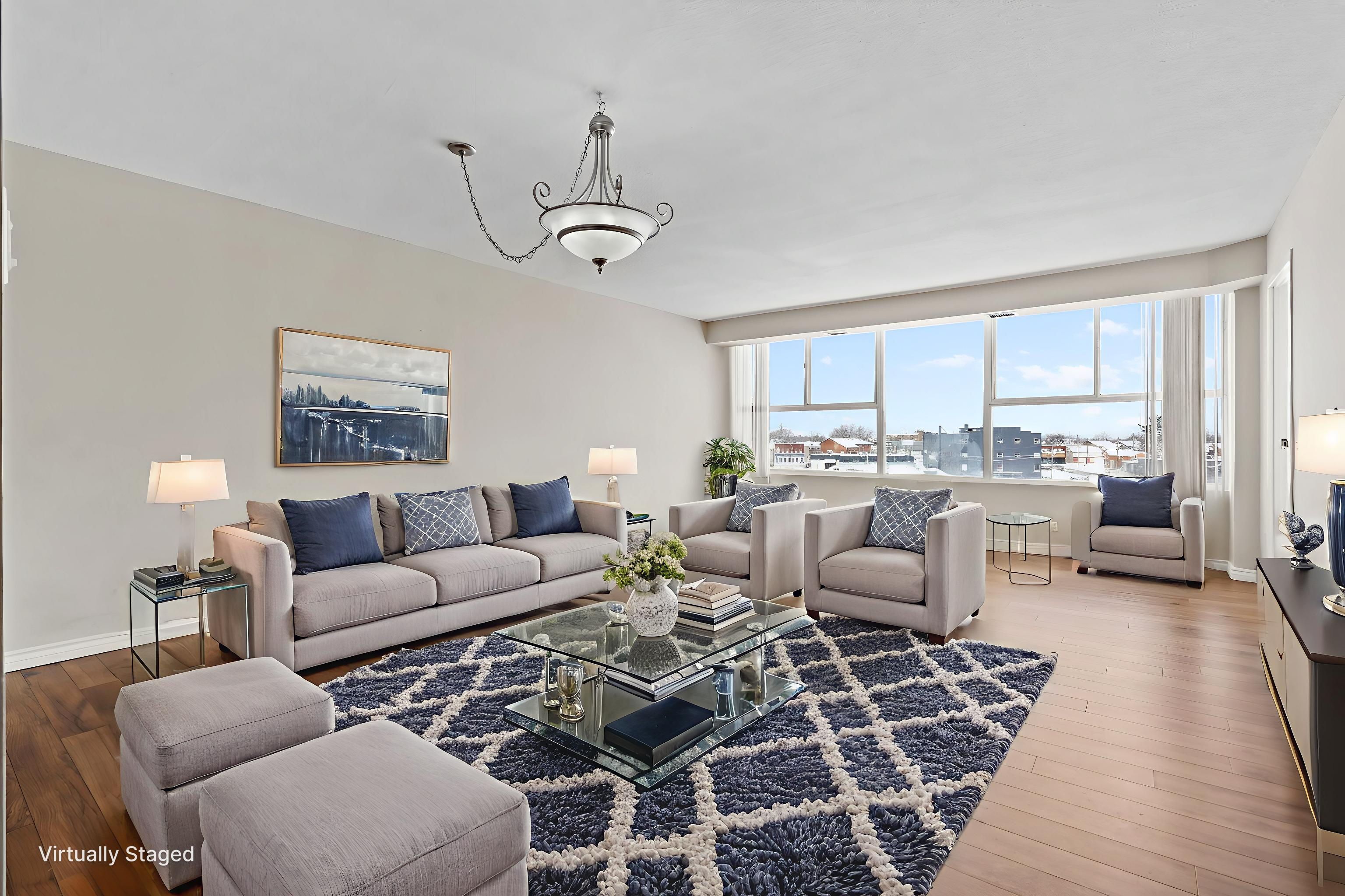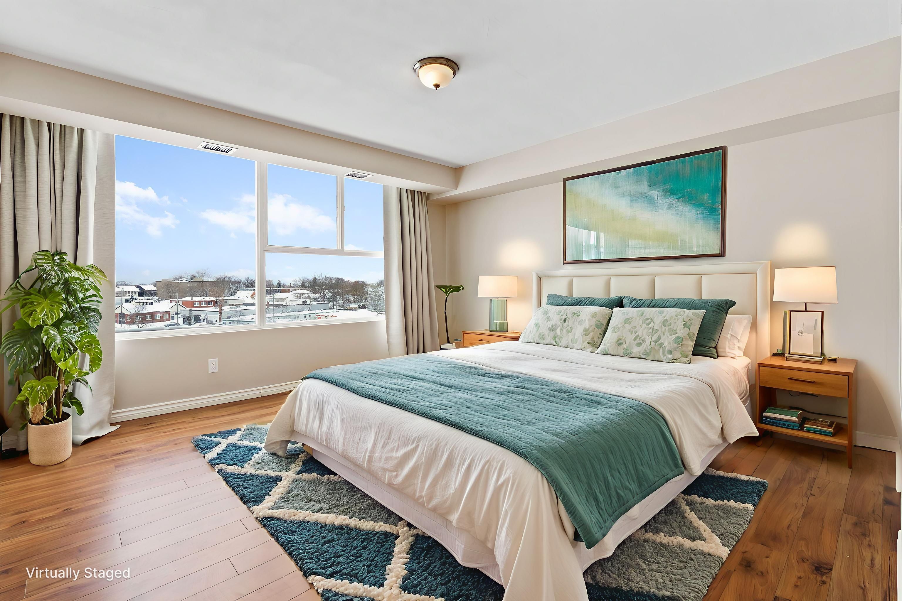 • Bright two-bedroom condo with a den and open-concept layout.