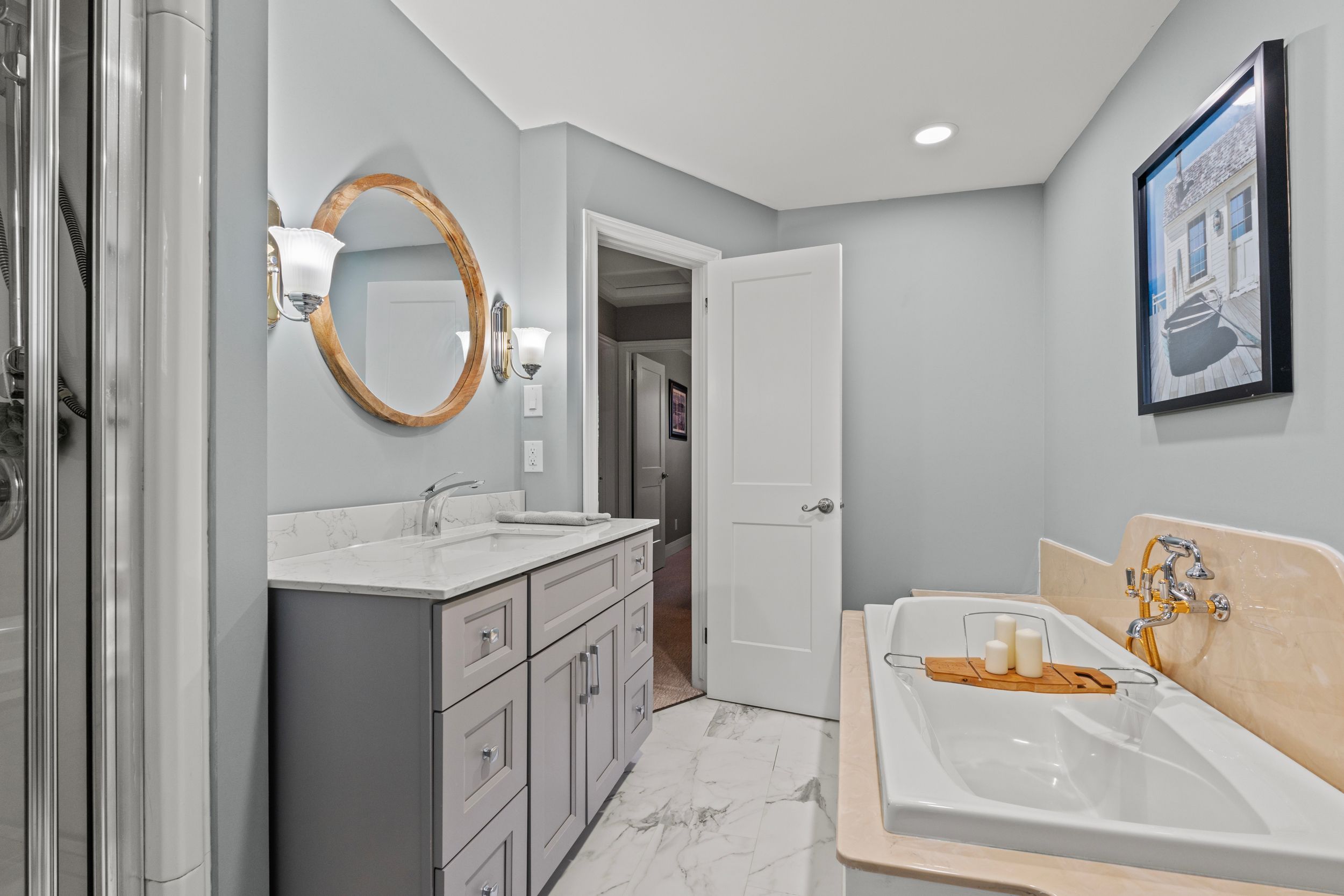 • Spacious bedrooms and a luxurious bathroom with a steam shower.