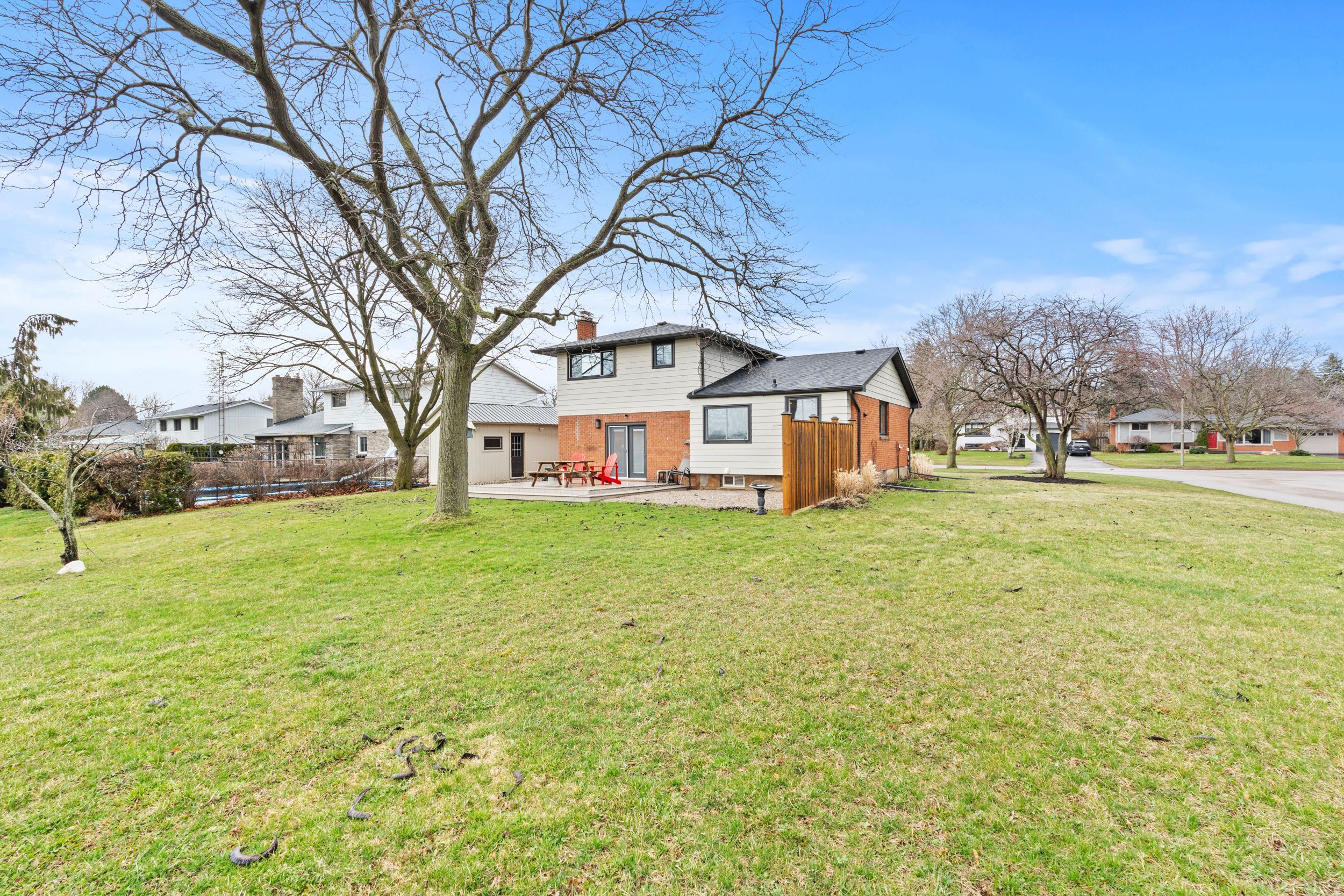 Imagine waking up every day to orchard views that feel like you're living in tuscany... Except you're right here in niagara-on-the-lake one of the most desirable places to live in the entire country. This home has been extensively renovated from top to bottom, so there's absolutely nothing to do but move in and enjoy. Set on a premium corner lot just minutes from downtown, this property offers over 1,900 sq. Ft. Of beautifully finished living space with only one neighbour, giving you a rare sense of privacy and tranquility. From the moment you walk into the grand foyer with stunning herringbone flooring, you can feel the quality and attention to detail. The heart of the home is the open-concept chef's kitchen, featuring a massive 10-ft quartz island, custom cabinetry, and stainless steel appliances-perfect for entertaining or everyday living. The family room is warm and inviting with a gas fireplace (2023) and french doors that open to your own backyard oasis with those incredible vineyard views. Upstairs, you'll find spacious bedrooms and a spa-like bathroom complete with a steam shower-your own private retreat at the end of the day. The finished lower level adds even more flexibility with additional living space, storage, and a bathroom with heated floors. Major updates include a new roof and hot water tank (2024), plus thoughtful features like a front patio, inside entry from the double garage, and a separate entrance to a secondary laundry area. This is more than just a home-it's a lifestyle.