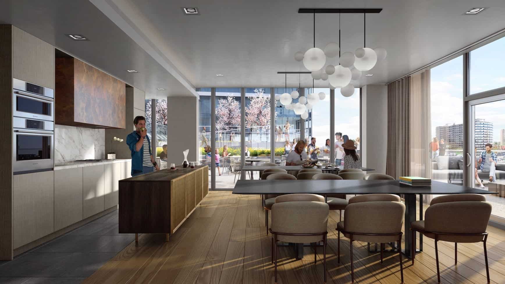 • Upgraded kitchen features quartz countertops and built-in appliances.