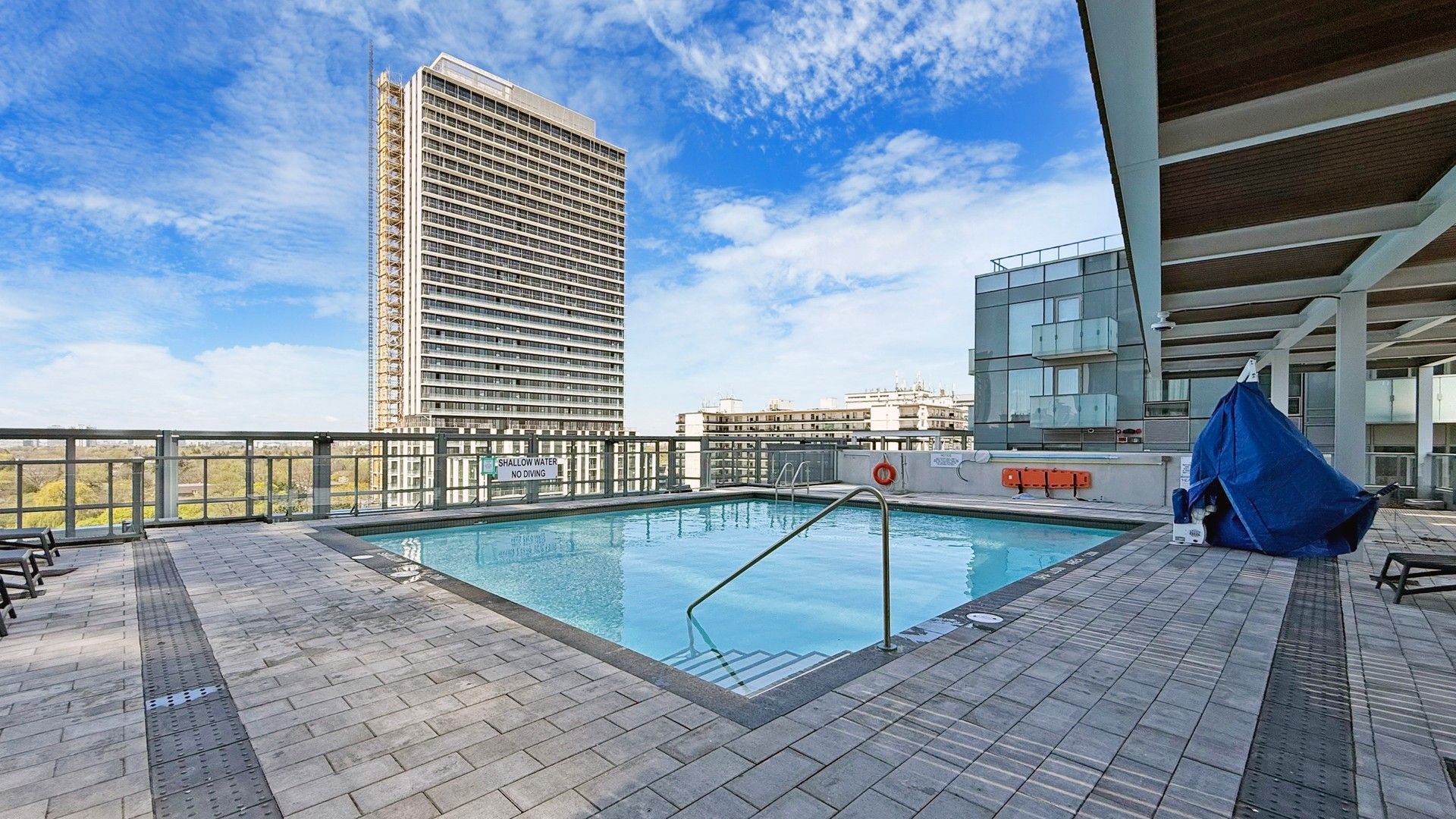 • Building amenities include gym, pool, yoga studio, and 24-hour concierge.