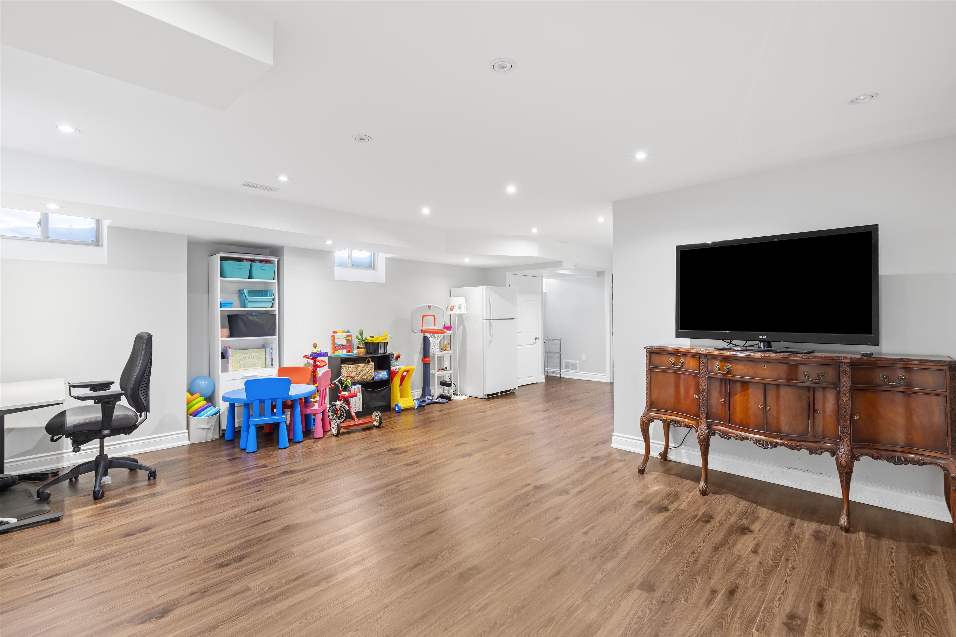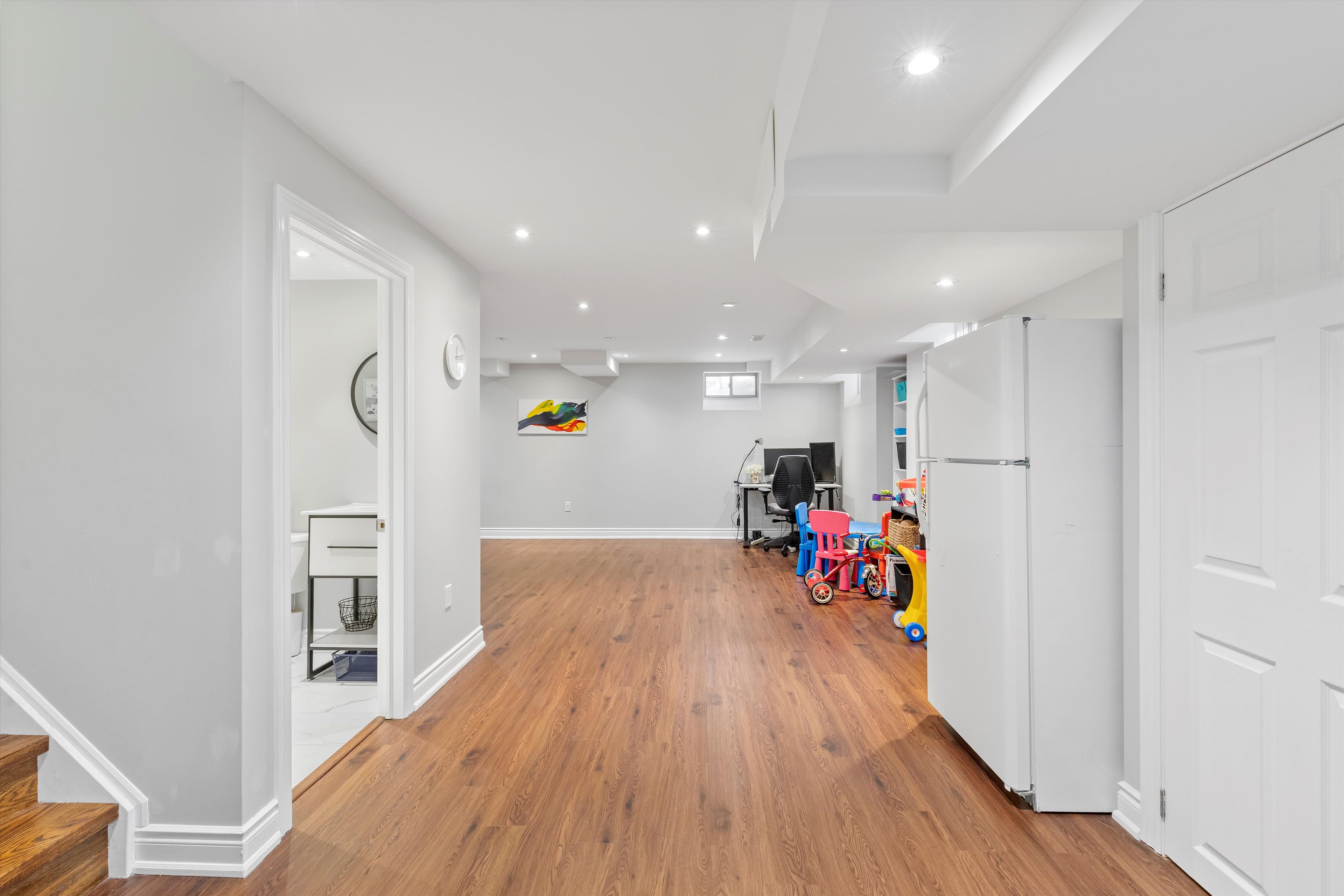 Welcome to this beautifully maintained and thoughtfully upgraded home in the heart of bathurst manor. Featuring 3 spacious bedrooms, 4 bathrooms, and a fully finished basement, this property offers the perfect blend of comfort, functionality, and modern style for today's family. The main floor showcases a bright, open-concept layout with hardwood flooring, oversized windows, and abundant natural light. The modern kitchen features sleek cabinetry, stainless steel appliances, a large centre island with breakfast bar seating, and a walkout to the backyard - ideal for entertaining and everyday living. The inviting living room with gas fireplace creates a warm and elegant gathering space. Upstairs, the spacious primary bedroom includes a walk-in closet and a beautifully appointed ensuite bath. Two additional well-sized bedrooms and another full bathroom complete the upper level, perfect for families or those working from home. The fully finished basement provides exceptional versatility with a large recreation area, additional bathroom, and ample storage - ideal for a home office, gym, playroom, or guest suite. Located in a family-friendly neighbourhood close to top-rated schools, parks, transit, shopping, and major highways, this is an exceptional opportunity in one of north york's most desirable communities. Move-in ready and meticulously cared for - this is bathurst manor living at its finest.