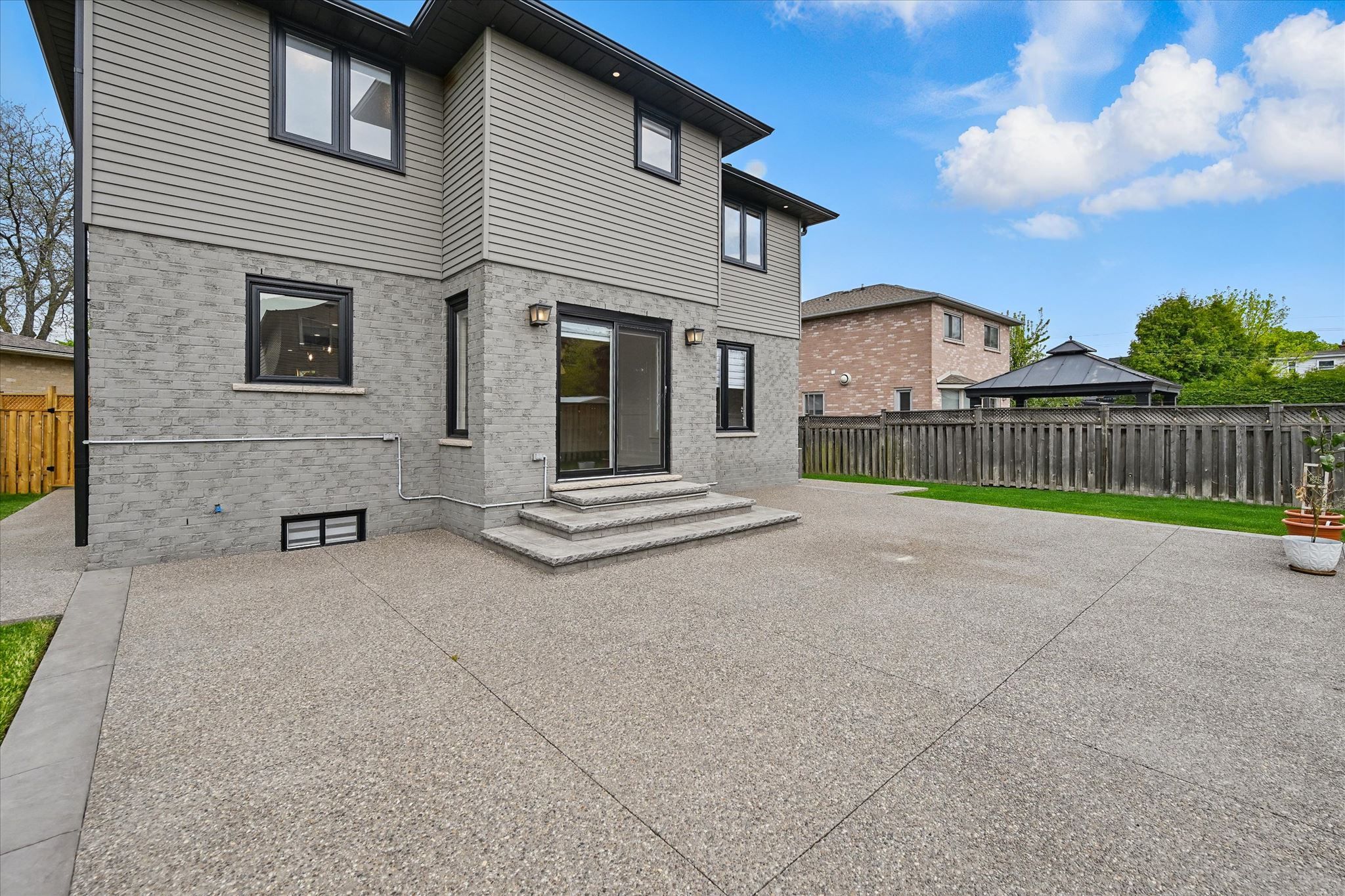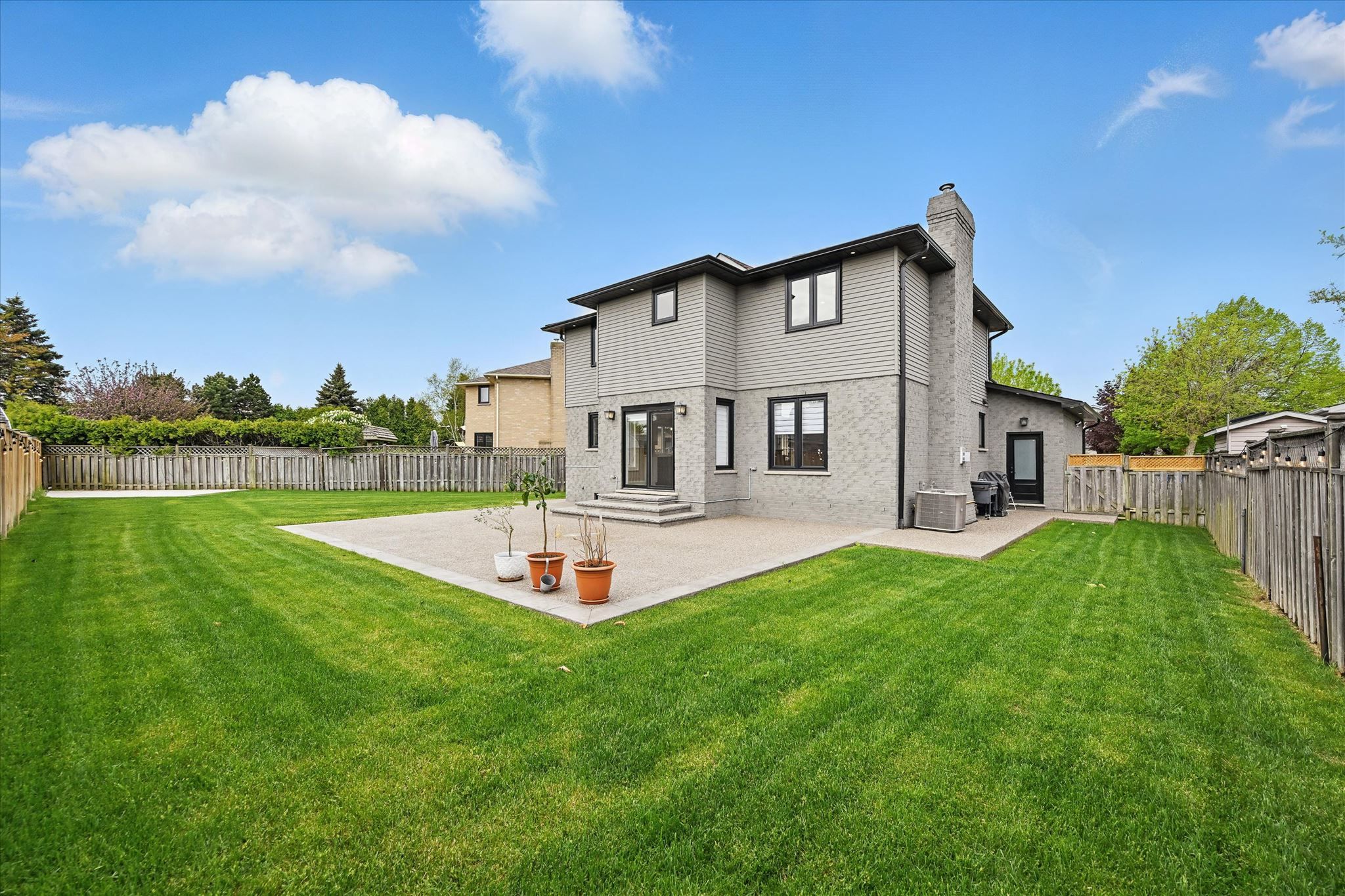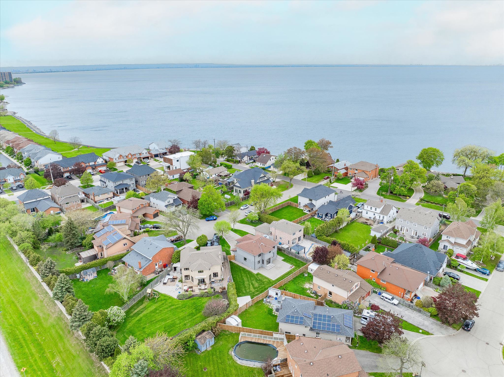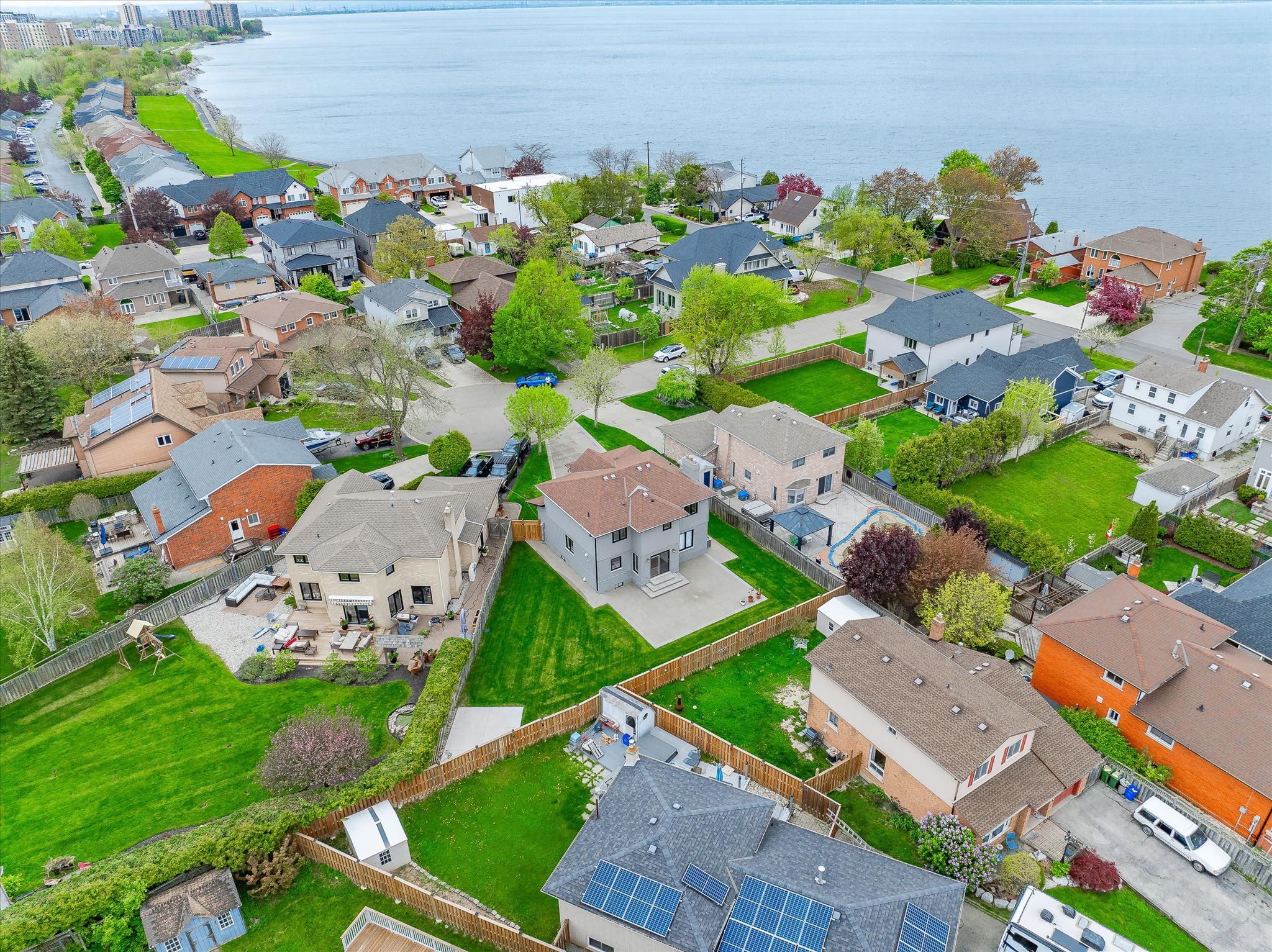 Welcome to 7 grandview avenue! Nestled in one of stoney creek's sought-after lakefront beach communities, just steps to lake ontario and minutes to shopping, dining, schools, and quick qew access. Situated on a quiet, family-friendly court, this home was meticulously renovated in 2023 with exceptional quality from top to bottom. A bright, open foyer with soaring ceilings, elegant staircase, and classic wall paneling creates a warm first impression. The main level features a formal living room and a stunning open-concept kitchen with modern soft-close cabinetry, under-cabinet lighting, quartz counters and backsplash, oversized island with built-in wine display, bar fridge and microwave, natural gas range with pot filler, and porcelain apron sink. There is a large dining room with patio doors to rear yard and an inviting family room offers a gas fireplace with custom built-ins, plus a 2 pc bath and large laundry room to complete this level. Upstairs offers three spacious bedrooms, including a primary retreat with walk-in closet and a 4-piece ensuite with double sinks, make-up station and glass shower. A 5-piece main bath features double sinks, deep soaker tub. The lower level includes a fully self-contained in-law suite with separate walk-up entrance, featuring a living room, kitchen with quartz counters and backsplash, stainless steel appliances, bedroom, 3-piece bath, laundry, and ample storage. The fully fenced pie-shaped yard boasts a huge exposed aggregate patio, concrete pad for future shed, and plenty of space to entertain or for kids to play. Extensive upgrades include trim and wainscoting, 5" engineered hardwood flooring, solid interior doors, 7" baseboards, crown molding, pot lights throughout, custom closets, and modern iron railings. Exposed aggregate driveway, walkways, and patios with stamped concrete borders. Double attached garage and double-wide driveway for up to 8 cars. 13 appliances included. Nothing to do but move in!