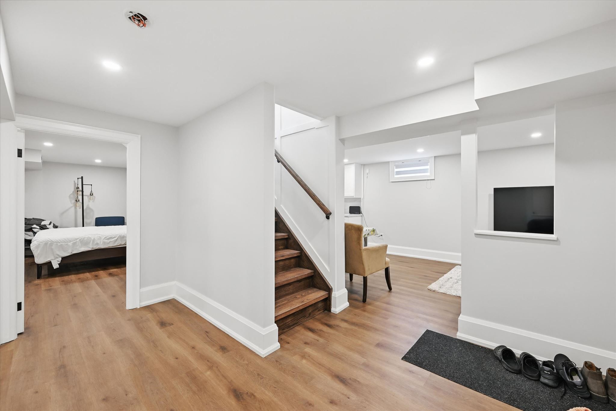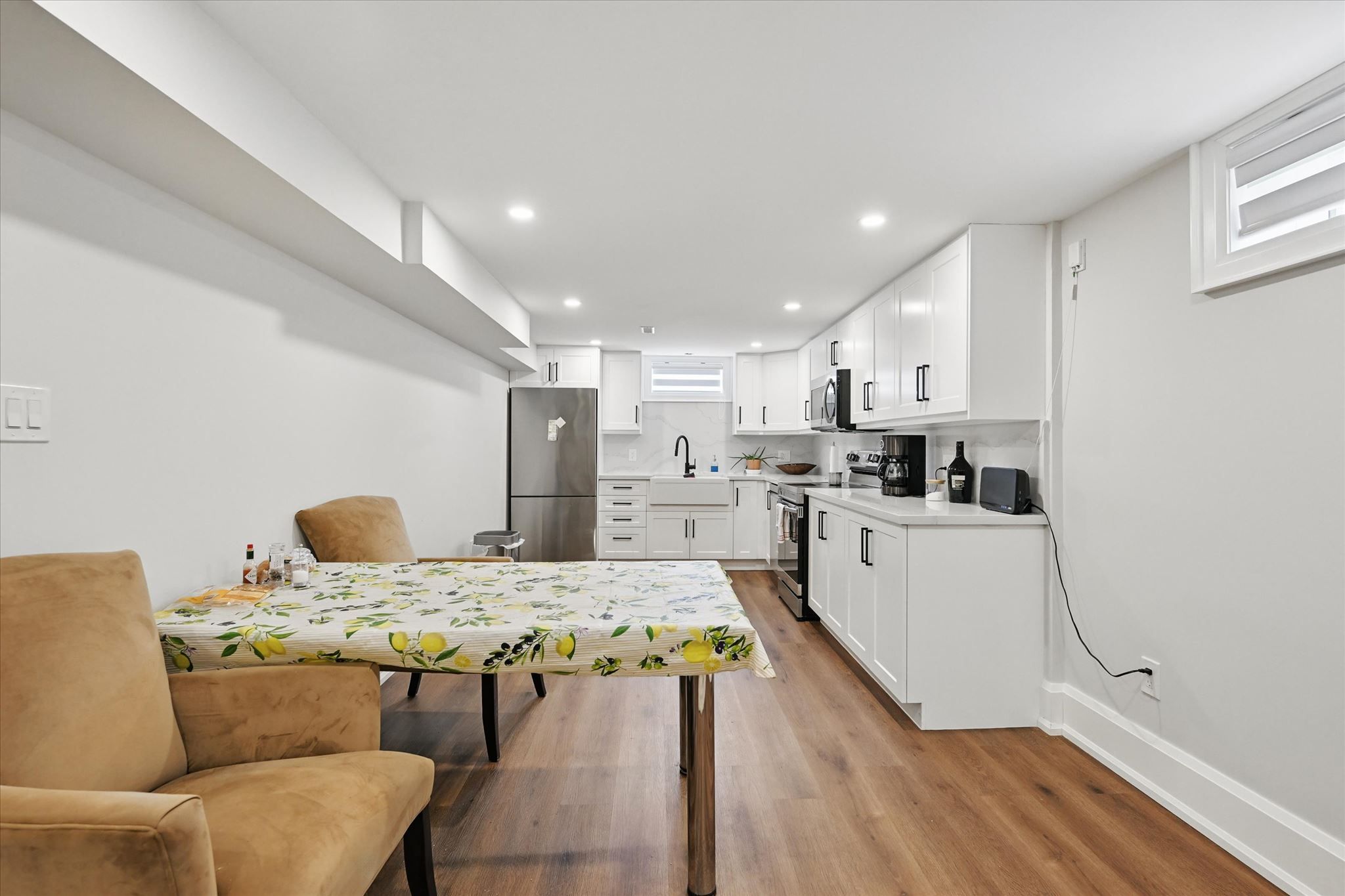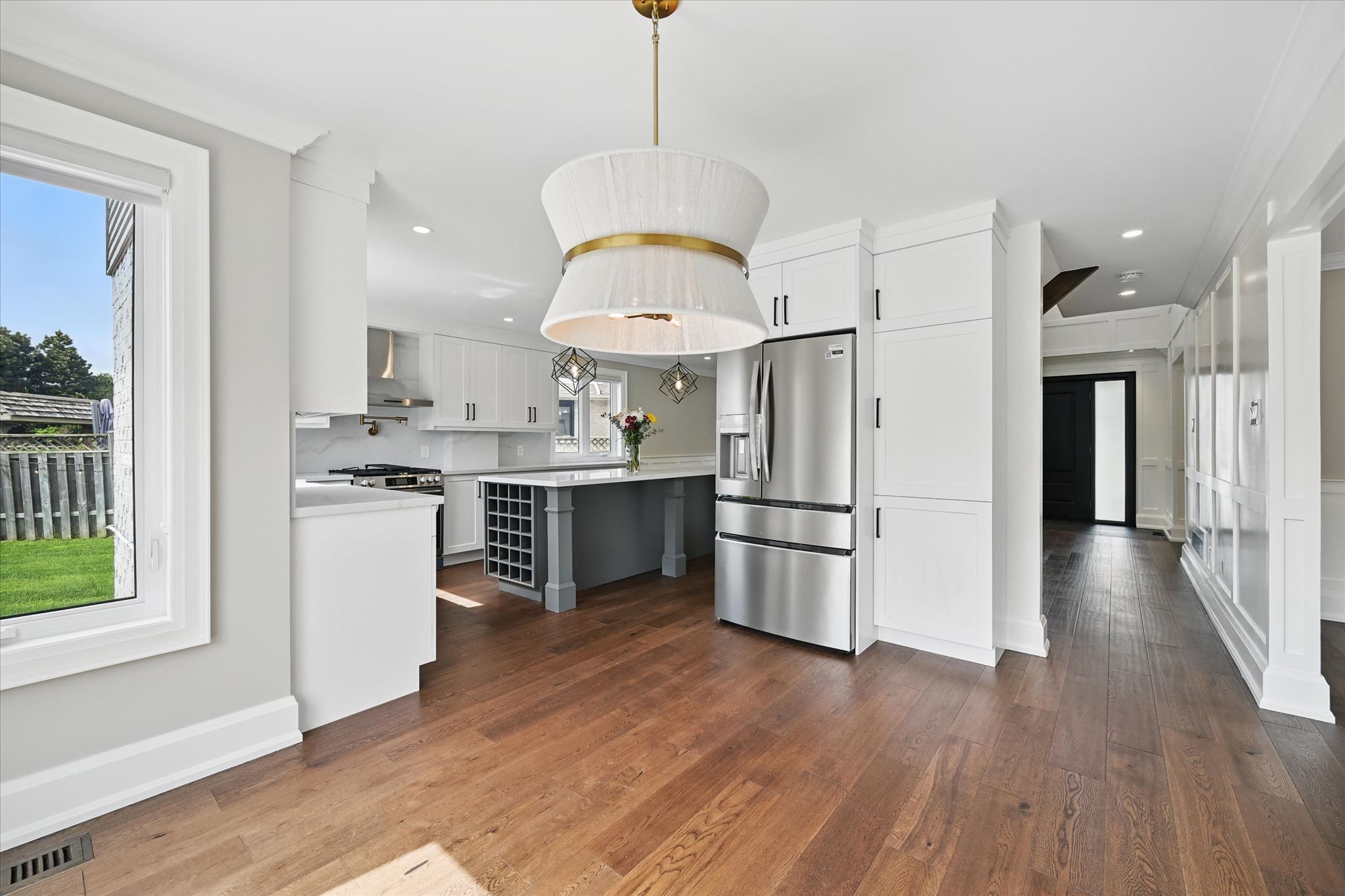 Welcome to 7 grandview avenue! Nestled in one of stoney creek's sought-after lakefront beach communities, just steps to lake ontario and minutes to shopping, dining, schools, and quick qew access. Situated on a quiet, family-friendly court, this home was meticulously renovated in 2023 with exceptional quality from top to bottom. A bright, open foyer with soaring ceilings, elegant staircase, and classic wall paneling creates a warm first impression. The main level features a formal living room and a stunning open-concept kitchen with modern soft-close cabinetry, under-cabinet lighting, quartz counters and backsplash, oversized island with built-in wine display, bar fridge and microwave, natural gas range with pot filler, and porcelain apron sink. There is a large dining room with patio doors to rear yard and an inviting family room offers a gas fireplace with custom built-ins, plus a 2 pc bath and large laundry room to complete this level. Upstairs offers three spacious bedrooms, including a primary retreat with walk-in closet and a 4-piece ensuite with double sinks, make-up station and glass shower. A 5-piece main bath features double sinks, deep soaker tub. The lower level includes a fully self-contained in-law suite with separate walk-up entrance, featuring a living room, kitchen with quartz counters and backsplash, stainless steel appliances, bedroom, 3-piece bath, laundry, and ample storage. The fully fenced pie-shaped yard boasts a huge exposed aggregate patio, concrete pad for future shed, and plenty of space to entertain or for kids to play. Extensive upgrades include trim and wainscoting, 5" engineered hardwood flooring, solid interior doors, 7" baseboards, crown molding, pot lights throughout, custom closets, and modern iron railings. Exposed aggregate driveway, walkways, and patios with stamped concrete borders. Double attached garage and double-wide driveway for up to 8 cars. 13 appliances included. Nothing to do but move in!