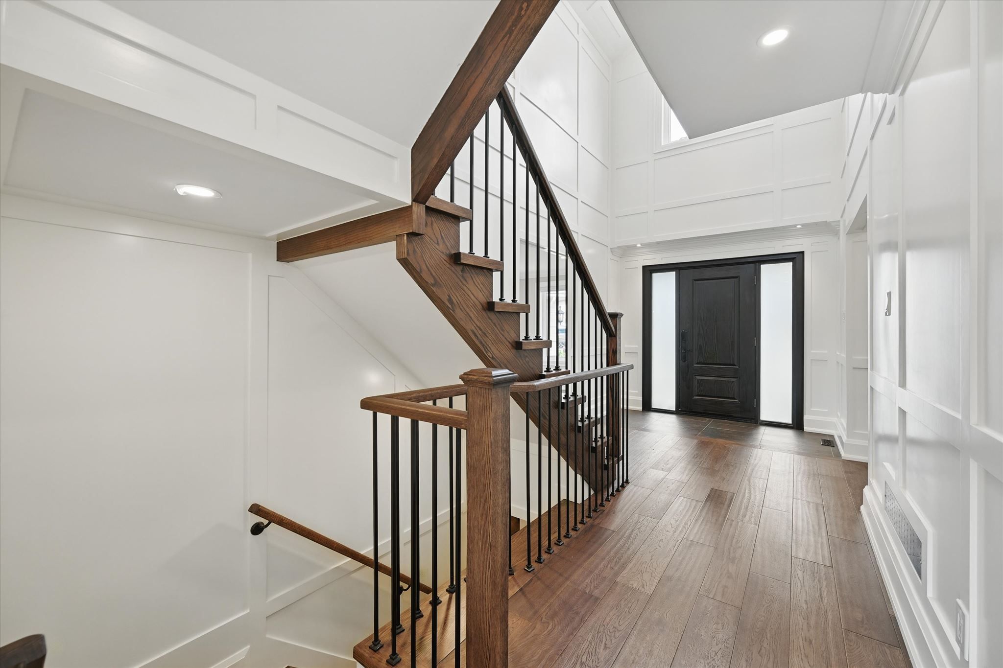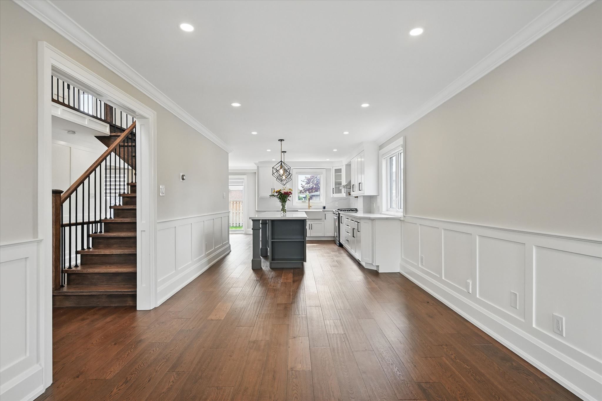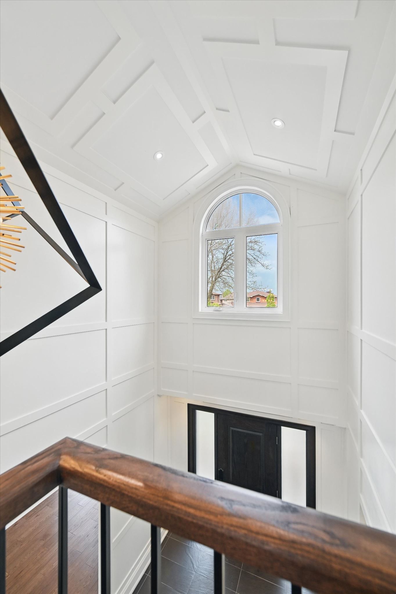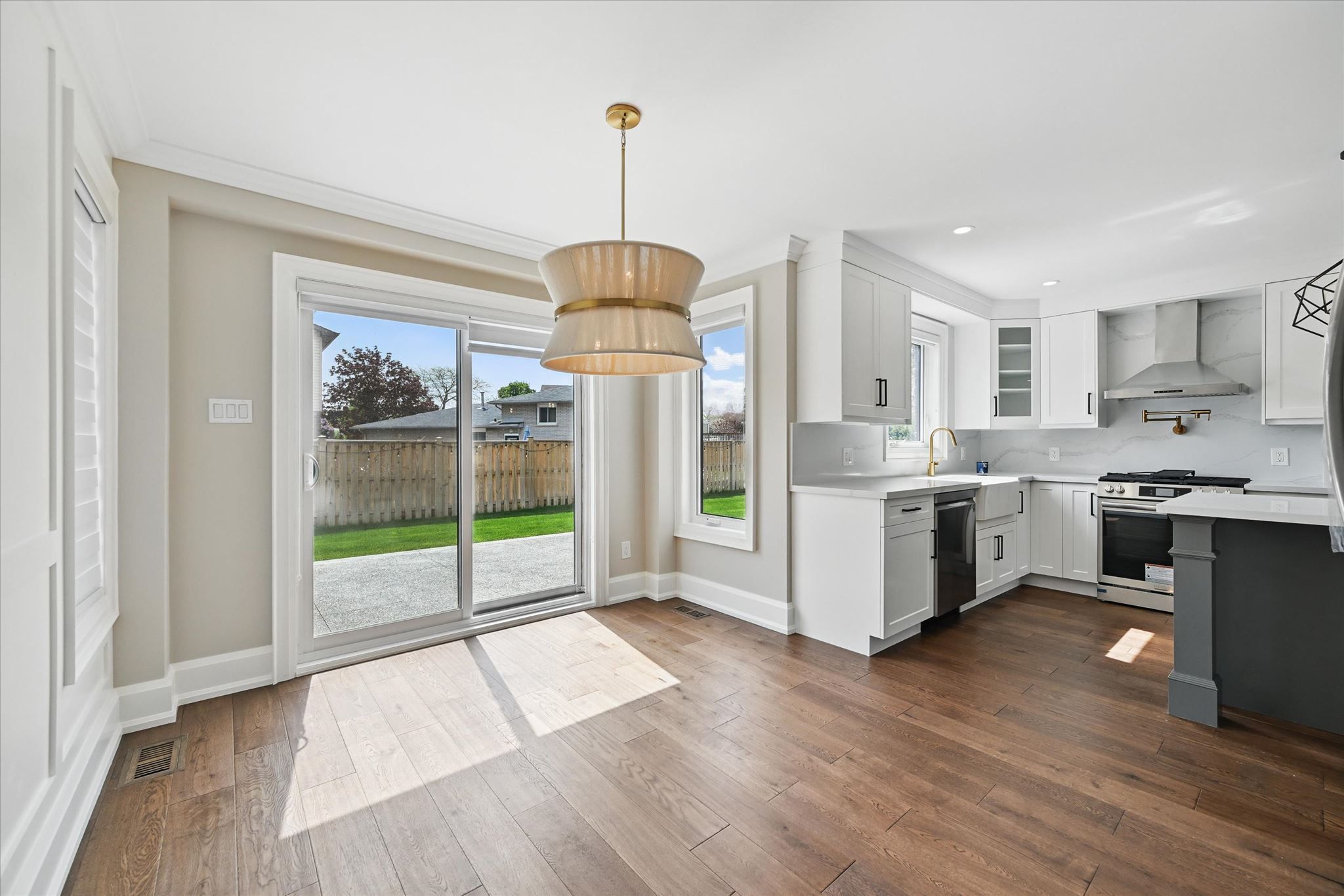 Welcome to 7 grandview avenue! Nestled in one of stoney creek's sought-after lakefront beach communities, just steps to lake ontario and minutes to shopping, dining, schools, and quick qew access. Situated on a quiet, family-friendly court, this home was meticulously renovated in 2023 with exceptional quality from top to bottom. A bright, open foyer with soaring ceilings, elegant staircase, and classic wall paneling creates a warm first impression. The main level features a formal living room and a stunning open-concept kitchen with modern soft-close cabinetry, under-cabinet lighting, quartz counters and backsplash, oversized island with built-in wine display, bar fridge and microwave, natural gas range with pot filler, and porcelain apron sink. There is a large dining room with patio doors to rear yard and an inviting family room offers a gas fireplace with custom built-ins, plus a 2 pc bath and large laundry room to complete this level. Upstairs offers three spacious bedrooms, including a primary retreat with walk-in closet and a 4-piece ensuite with double sinks, make-up station and glass shower. A 5-piece main bath features double sinks, deep soaker tub. The lower level includes a fully self-contained in-law suite with separate walk-up entrance, featuring a living room, kitchen with quartz counters and backsplash, stainless steel appliances, bedroom, 3-piece bath, laundry, and ample storage. The fully fenced pie-shaped yard boasts a huge exposed aggregate patio, concrete pad for future shed, and plenty of space to entertain or for kids to play. Extensive upgrades include trim and wainscoting, 5" engineered hardwood flooring, solid interior doors, 7" baseboards, crown molding, pot lights throughout, custom closets, and modern iron railings. Exposed aggregate driveway, walkways, and patios with stamped concrete borders. Double attached garage and double-wide driveway for up to 8 cars. 13 appliances included. Nothing to do but move in!