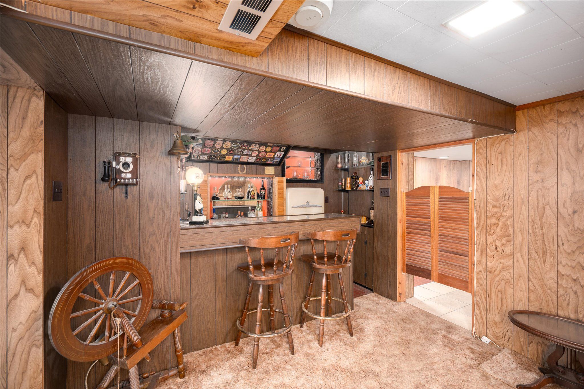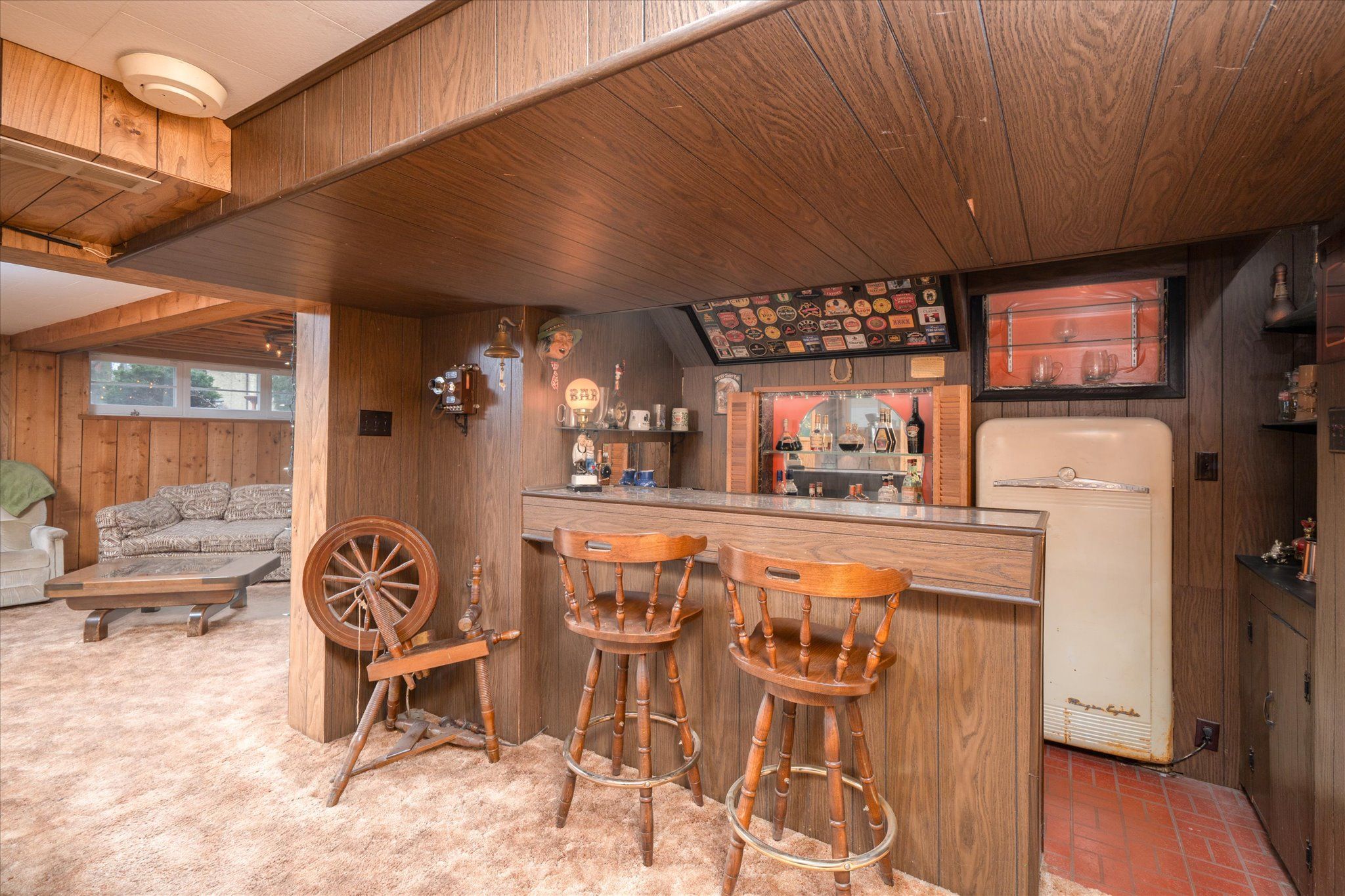 • Finished basement has a separate entrance, recreation room, and rustic bar.
