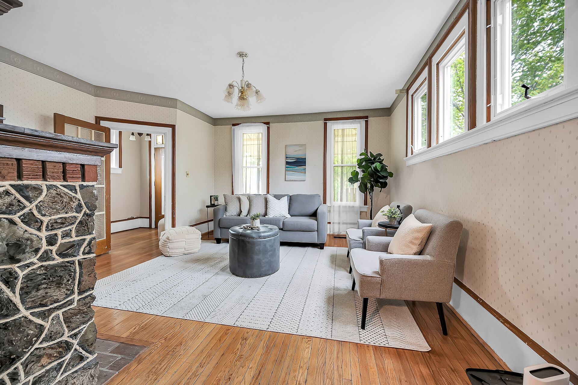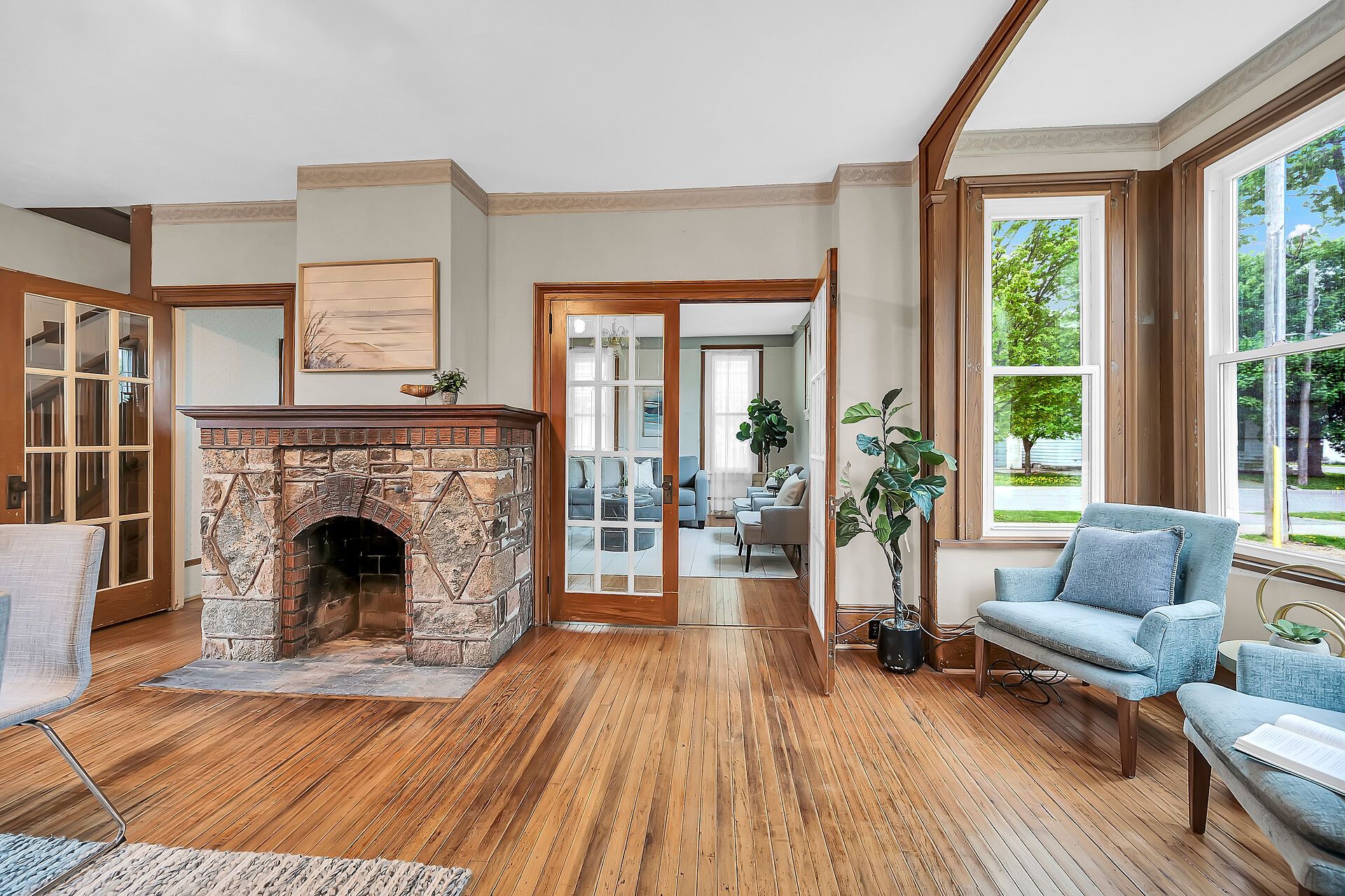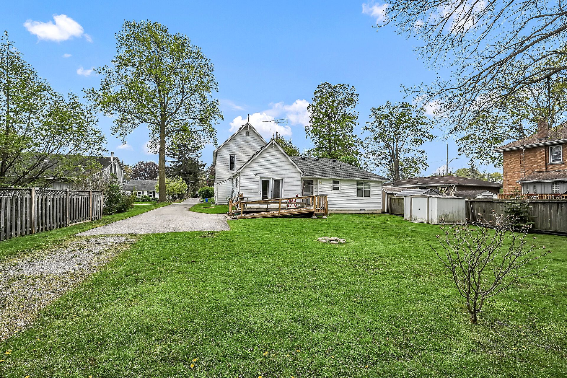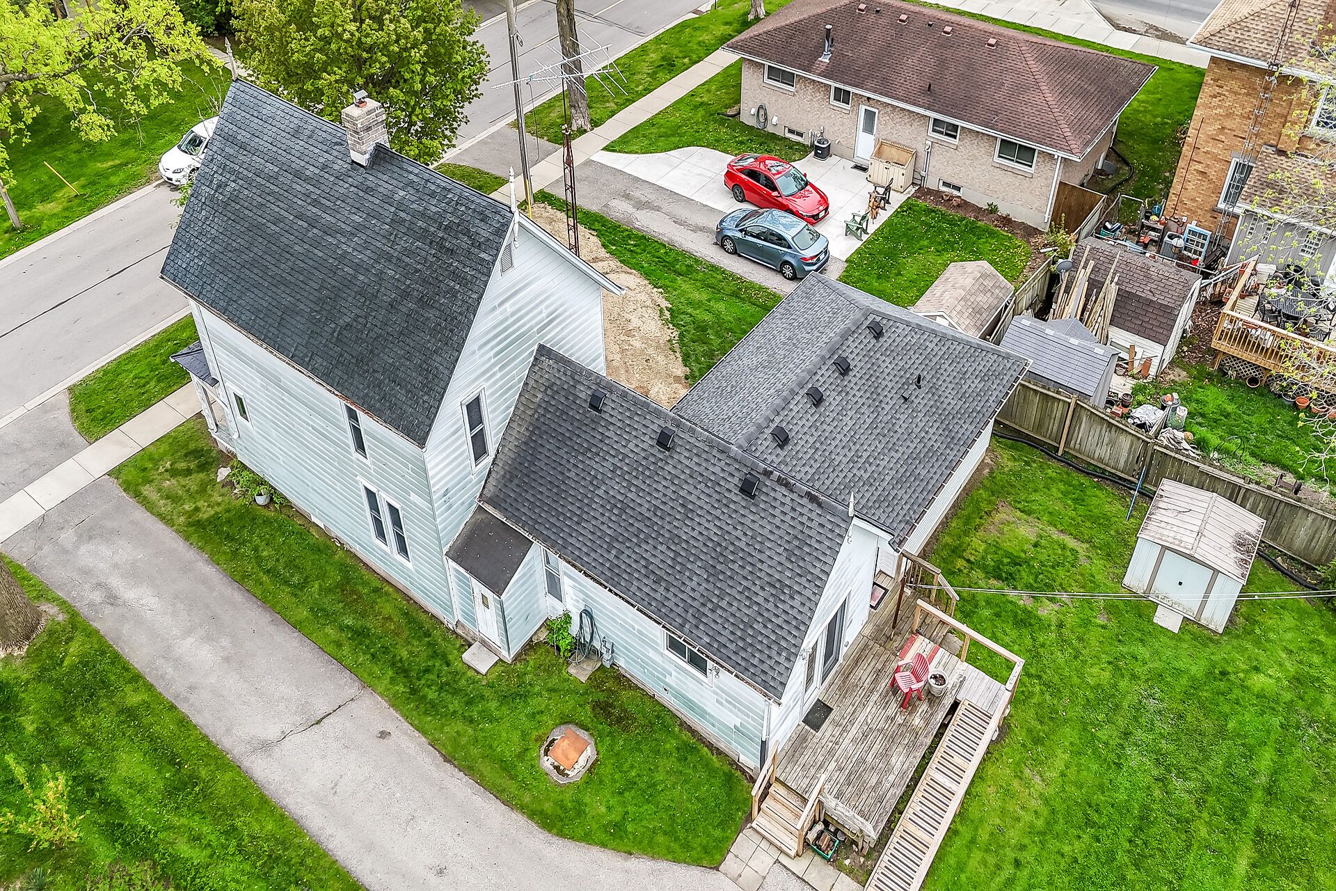 Stately 2 storey "dover classic" plus 2017 in-law style addition located in the heart of port dover - near schools & churches - walking distance to all of this popular lake erie town's sought after amenities - including live theatre, weekly "music in the park" attractions, eclectic shops, trendy eateries, mini golf, links style golf course & famous beach front. Positioned proudly on huge, mature 0. 23 acre treed lot, the tastefully appointed home boasts quaint covered front porch & paved driveway extending to back yard where 128sf rear deck landing leads to separate doors accessing both primary & addition section. The freshly redecorated original home introduces 2,210sf of well preserved, character filled living area incs 1,077 sf of original main level living space sporting spacious multi-purpose room ftrs garden door deck walk-out - segues to functional kitchen - then pass thru french doors to inviting living room enhanced with authentic wood burning natural stone fireplace - continues to similar themed family room incs reverse side of stone fireplace - completed with welcoming front foyer. Ornate staircase ascends to 625sf - 3 bedroom upper level flanking 4pc bath. Beautifully refinished period hardwood flooring & heavy wood baseboards/trim compliment timeless décor with yesteryear's flair. Versatile 180sf service style partial basement houses newer n/g furnace equipped with ac-both new 2022, n/g hot water heater (rental), sump pump & new 200 amp hydro panel-2025. Bright 498sf west-wing addition, built in 2018, provides the perfect multi-generational venue for either parents and/or children and/or an economic rental option. Ftrs open concept design highlighted with living room/kitchenette, sizeable bedroom, 4pc bath & foyer - accented with low maintenance vinyl flooring. Attractive & affordable - unbeatable combination!