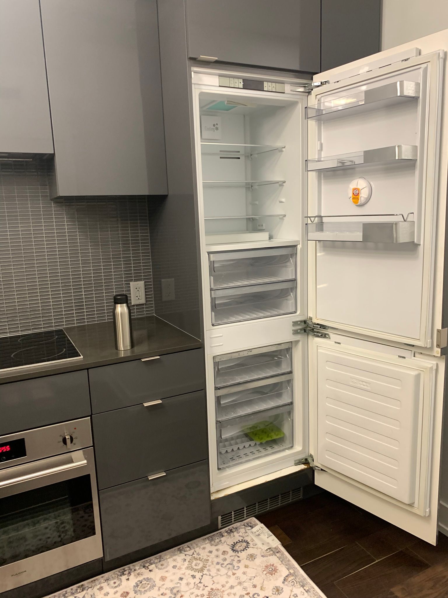 • Modern kitchen features built-in appliances and a center island.