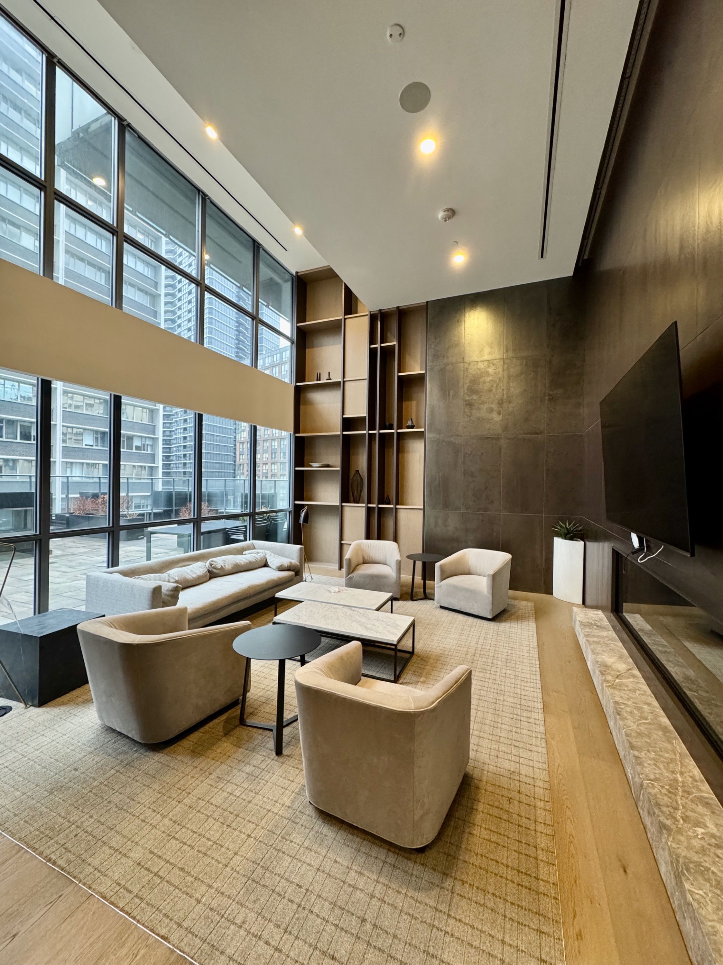 • Located on the 30th floor with stunning views of the city skyline.