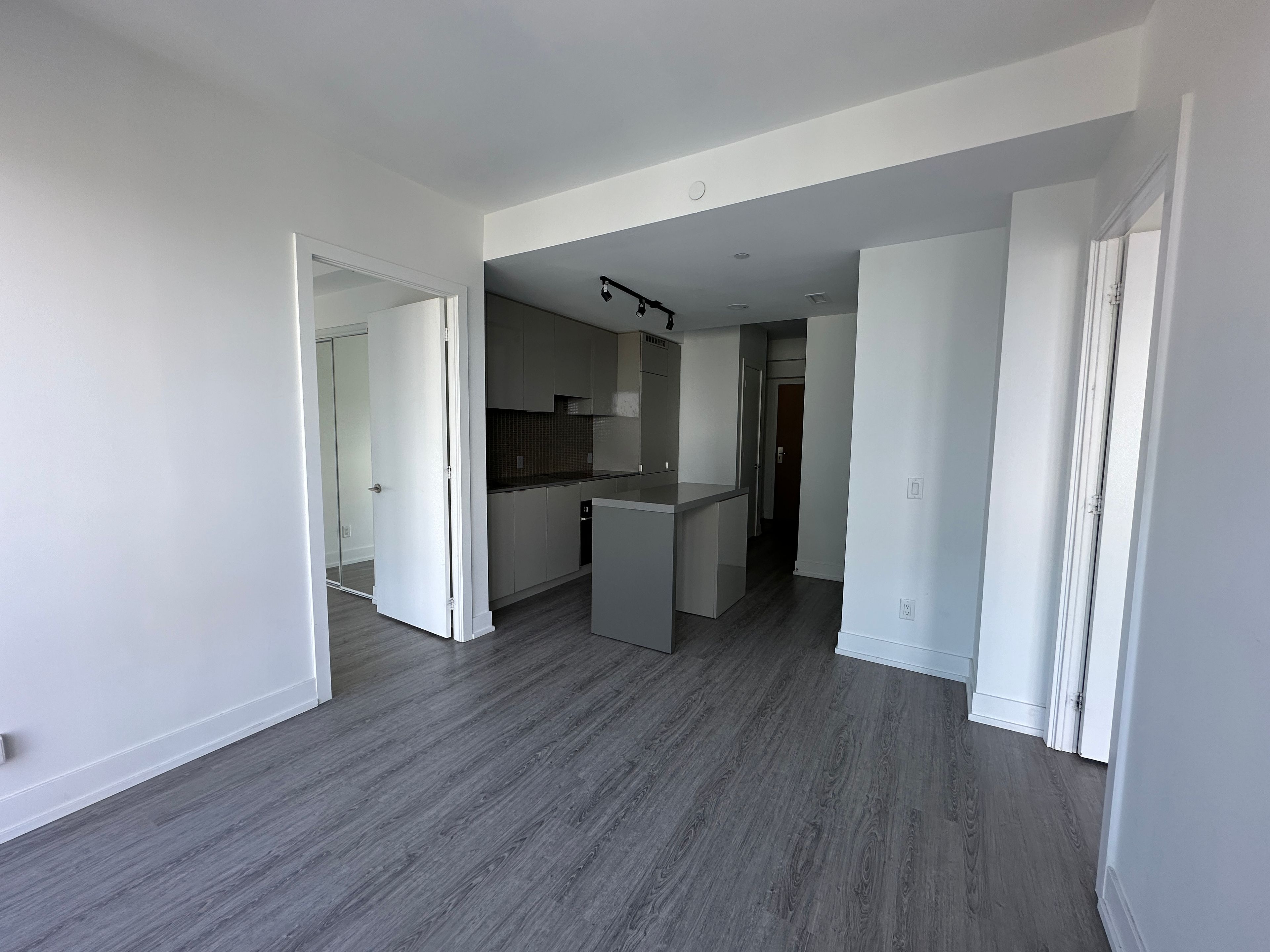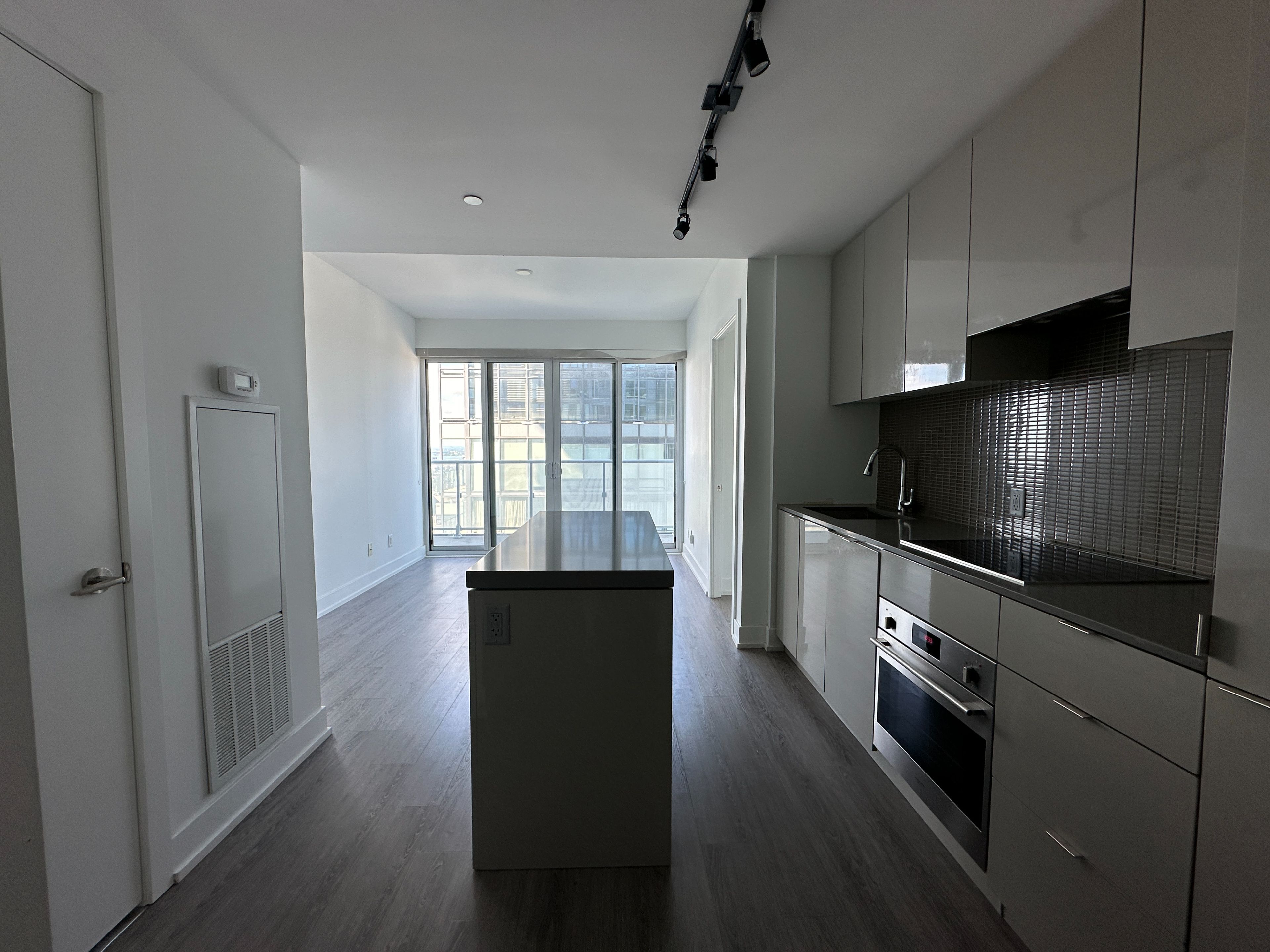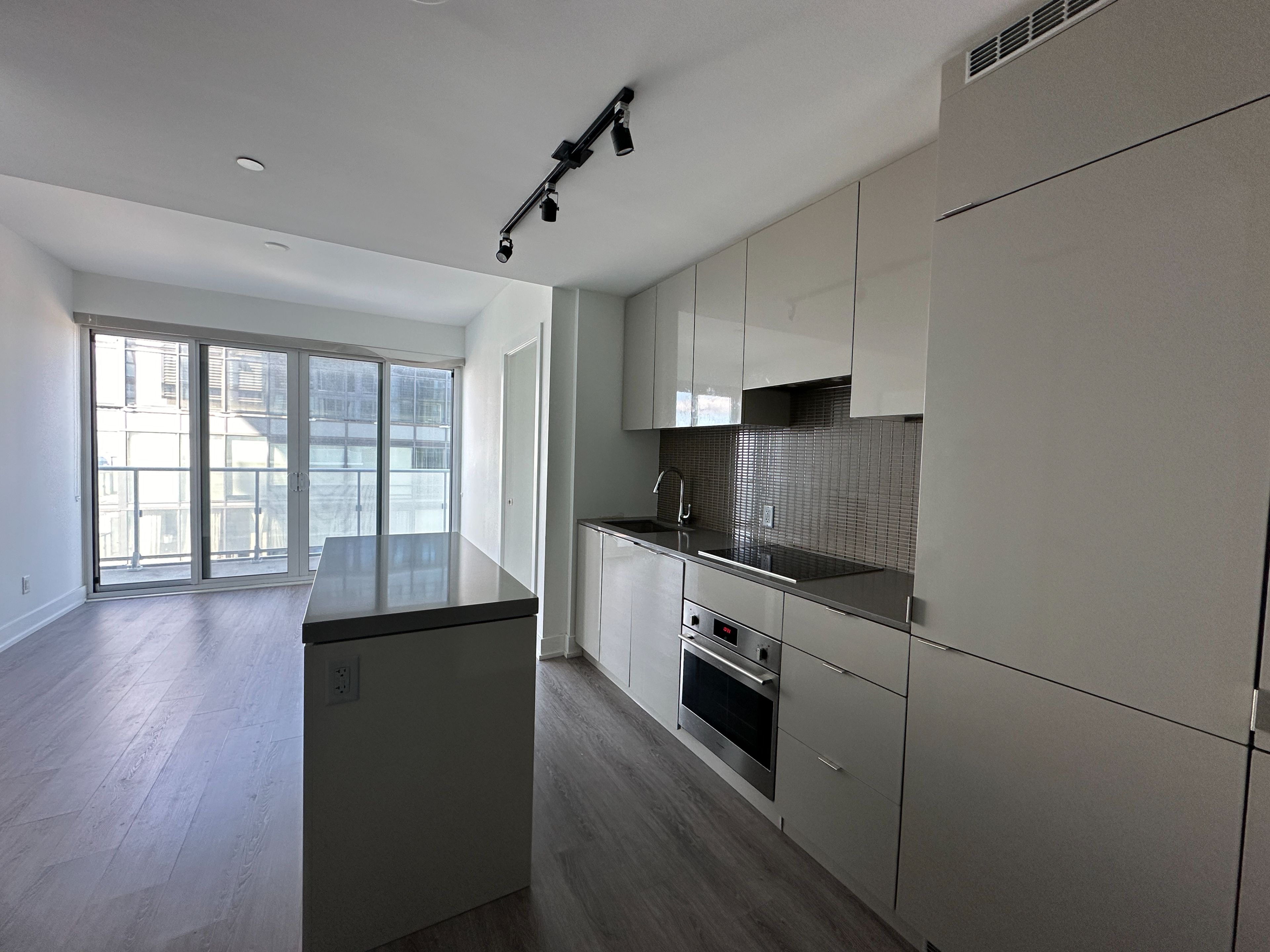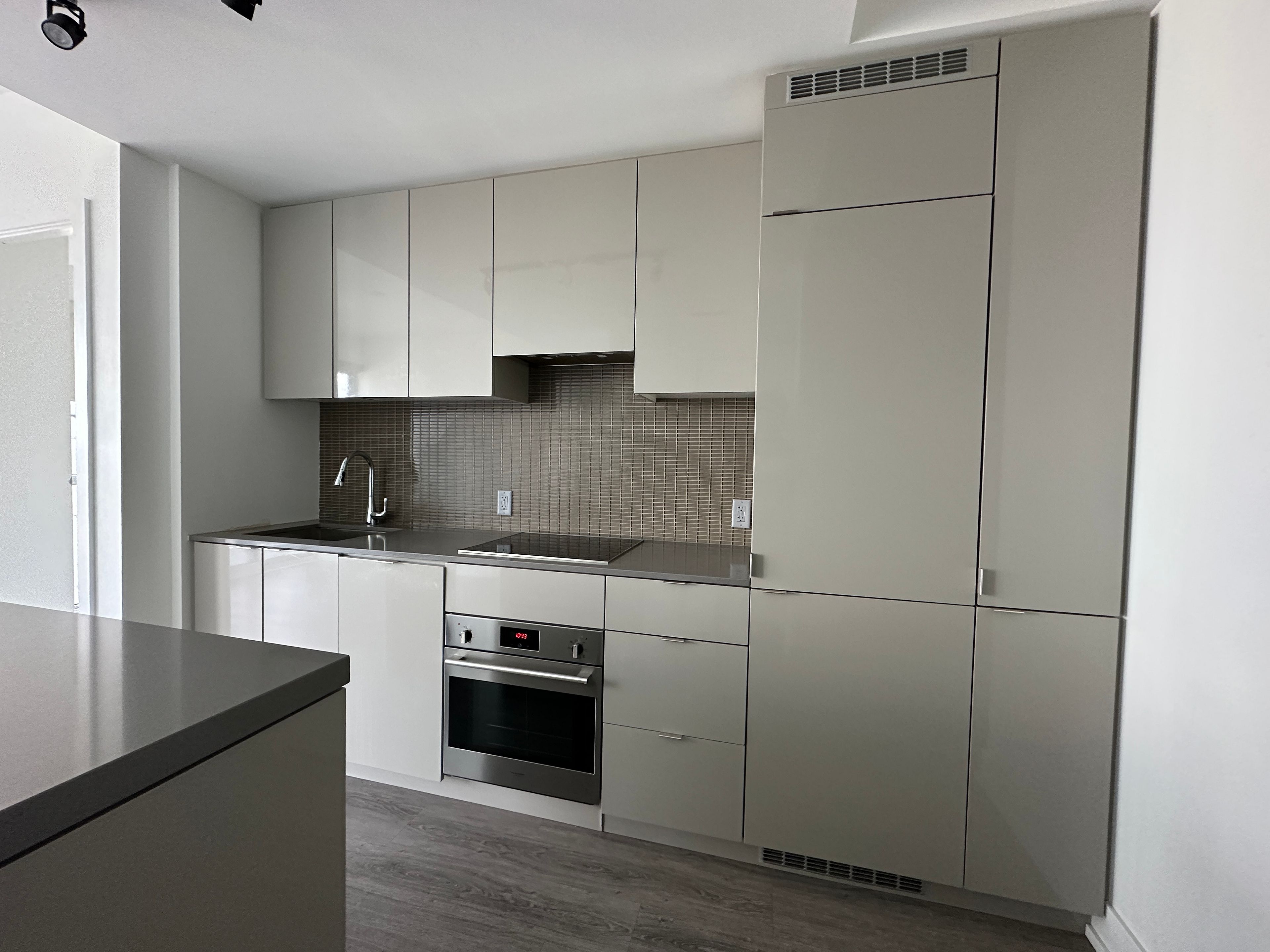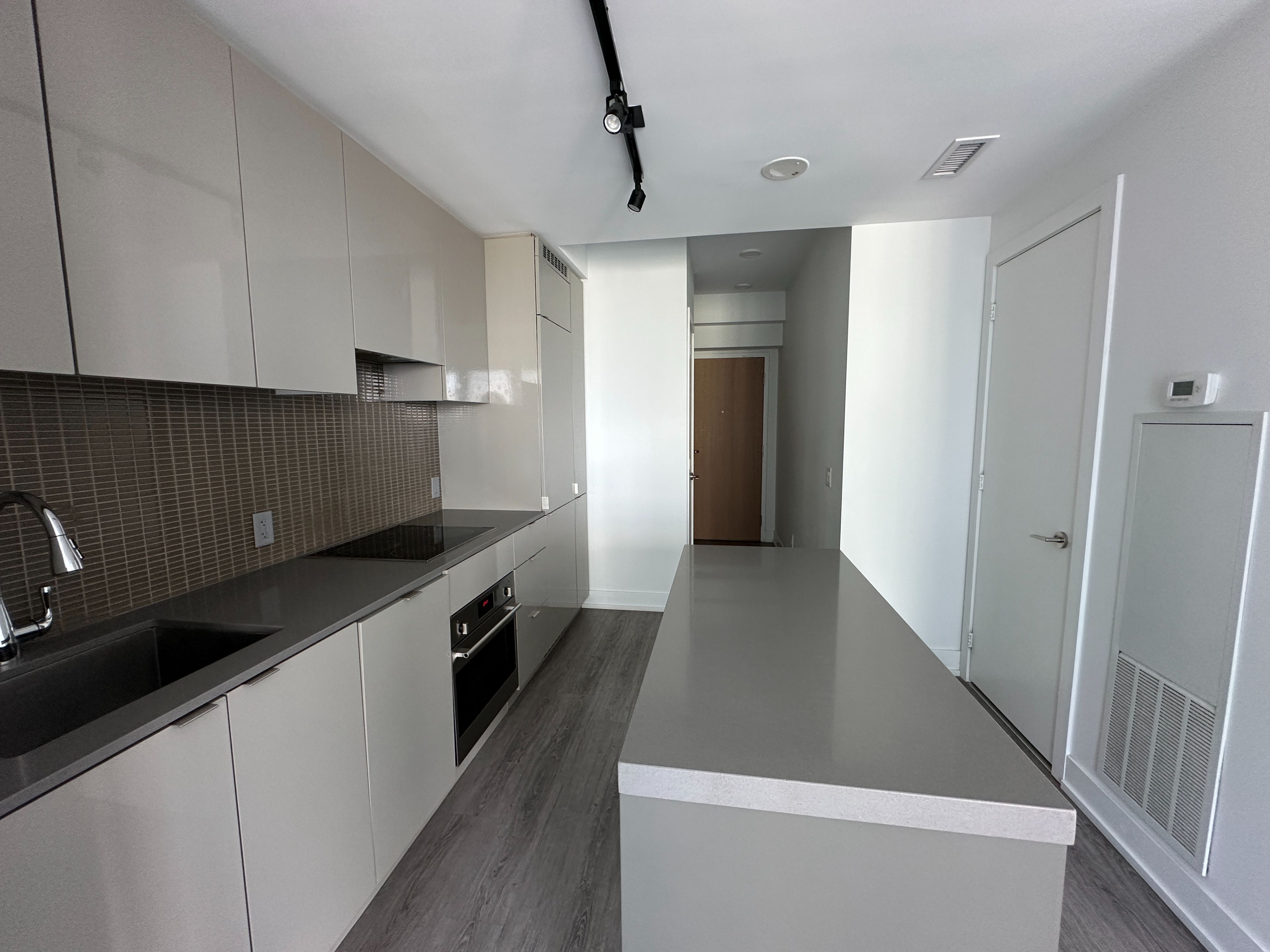 • Modern kitchen with quartz countertops and 9' ceilings.