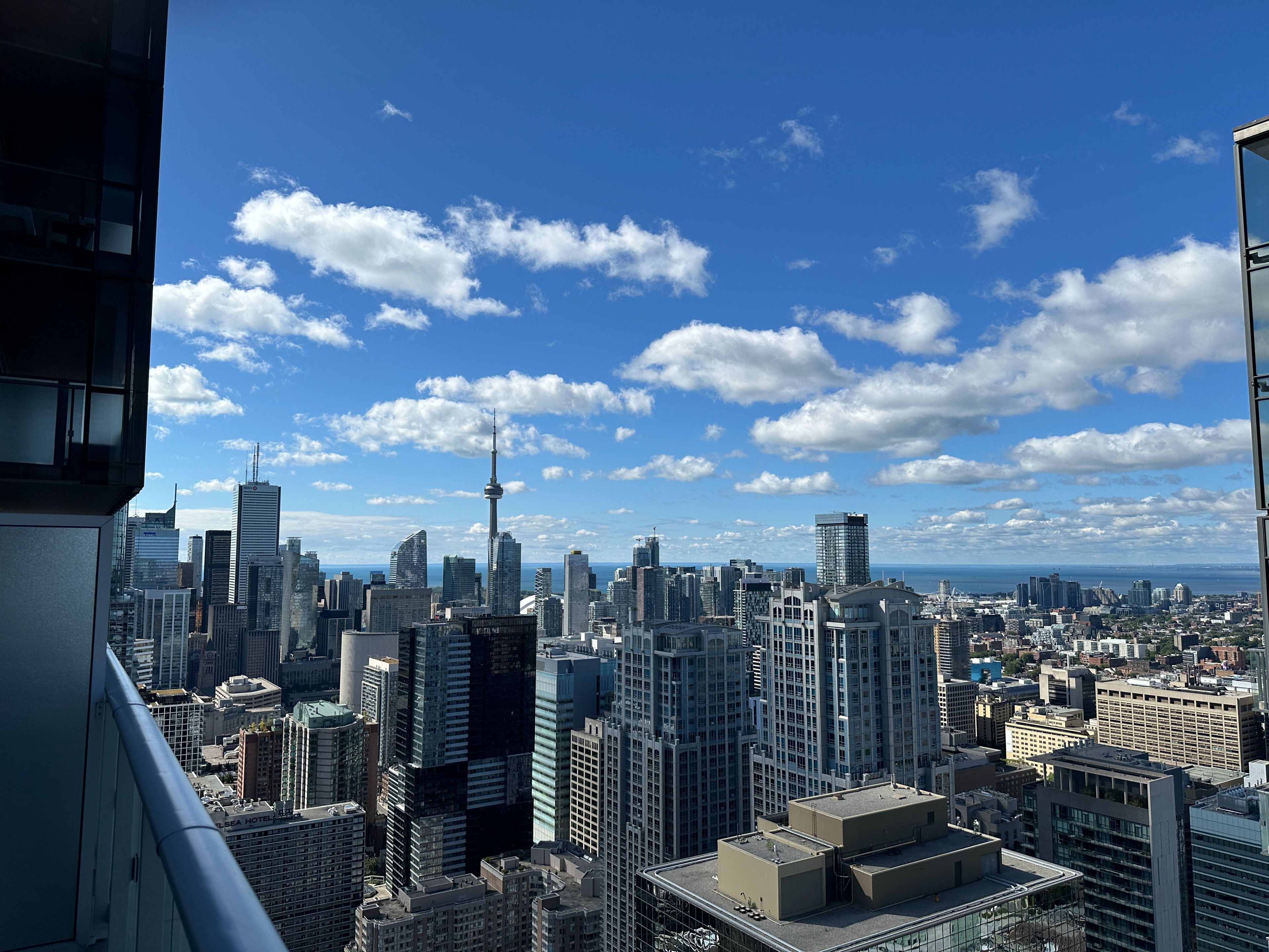 Sunny & desirable, 2bed 2bath, split-plan unit with open balcony @ yc condo, yonge & college. Spectacular unobstructed city & lake views from the 55th floor. 9' ceilings, floor-to-ceiling windows, modern open kitchen w quartz counter. Amenities include gym, yoga room, infinity pool, steam room, lounge/bar with dining room, private dining rooms with outdoor terraces & bbqs, visitor parking, 24/7 security/concierge. Steps to ttc, starbucks, shoppers, banks, restaurants, pubs, college park; mins to loblaws, lcbo, eaton centre, park, bay st, & everything. Walk to u of t and tmu (ryerson).