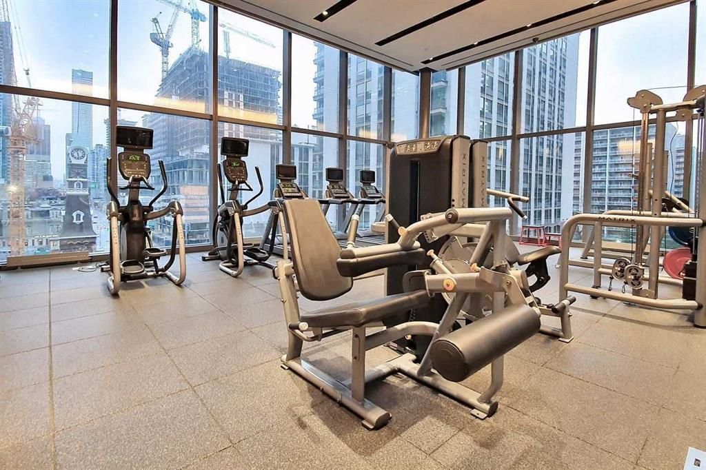 Elevate your lifestyle by living in a penthouse offering breathtaking south west unobstructed views of the city, lake, & cn tower from an extended wrap-around private balcony. A true landmark designed by world-renowned burdifilek, totaling 1,244 sq ft of living space including 219 sq ft of balcony, features convenient high speed elevators, soaring 10 ft ceilings, floor to ceiling windows, premium finishes and upgraded wide-plank wood flooring. The gourmet kitchen boasts contemporary panel doors, sleek quartz island, and integrated appliances. Spacious living area anchored by fireplace, & step out to the oversized balcony for morning coffee or sunset cocktails. Enjoy your meal in the dining area framed by glass windows with an iconic backdrop. The primary bedroom with a spa like 5 piece ensuite offers a deep soaker tub, double sinks, and separate shower stall with frameless glass door and elegant tiling. Bright and spacious second bedroom with mirror closet. Enjoy resort style amenities over 3 floors. The famous "aqua 66" infinity pool, sky lounge with panoramic vistas, state of the art fitness centre, yoga/aerobics room, game room, bar, and dining/party room with catering kitchen, visitor parking, car sharing and 24hr concierge. A walker's, rider's and biker's paradise (walk score: 100) just steps to the subway, u of t, tmu, ocat, financial district, hospitals, and the eaton centre, restaurants theater & much more.....