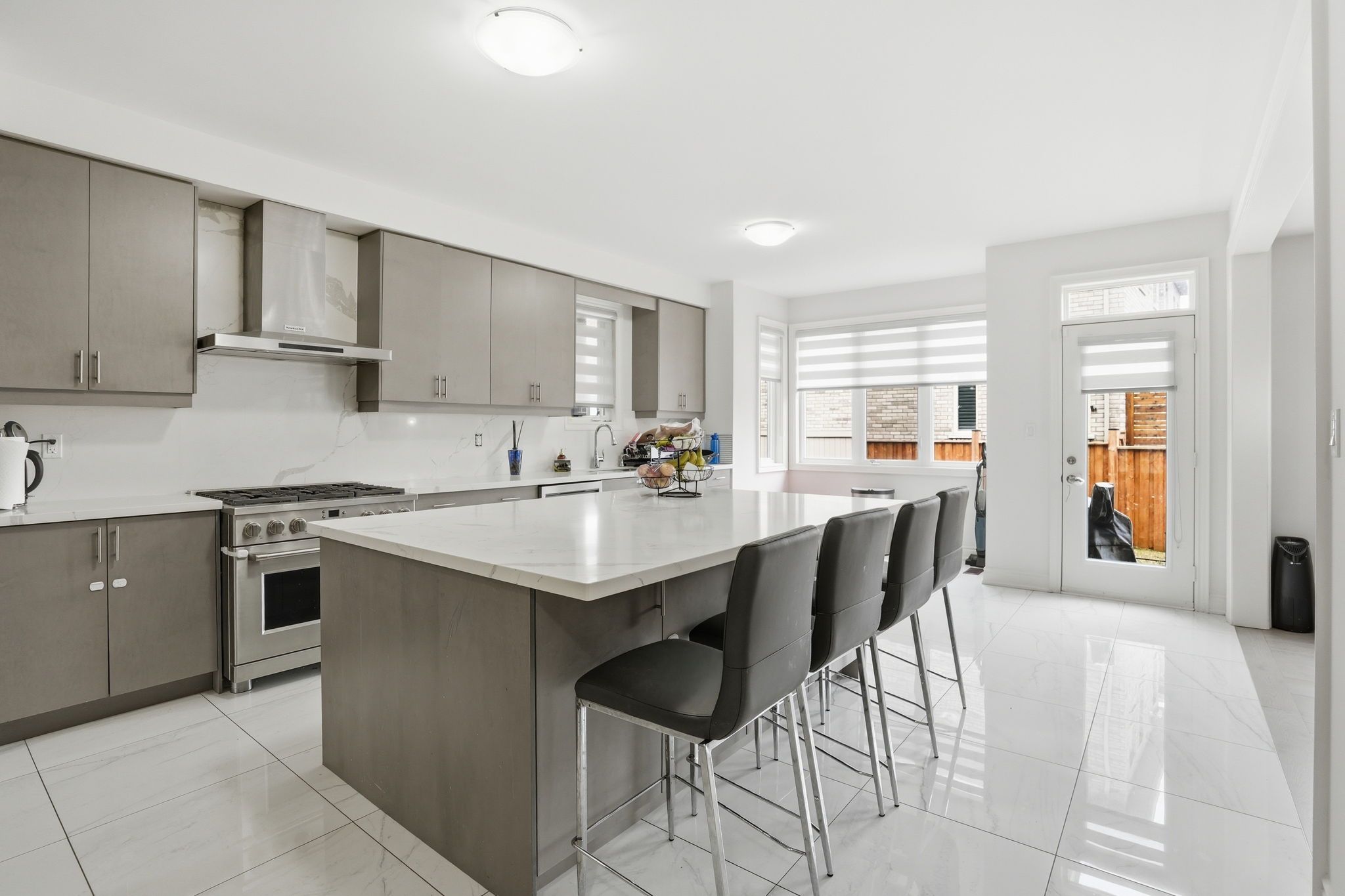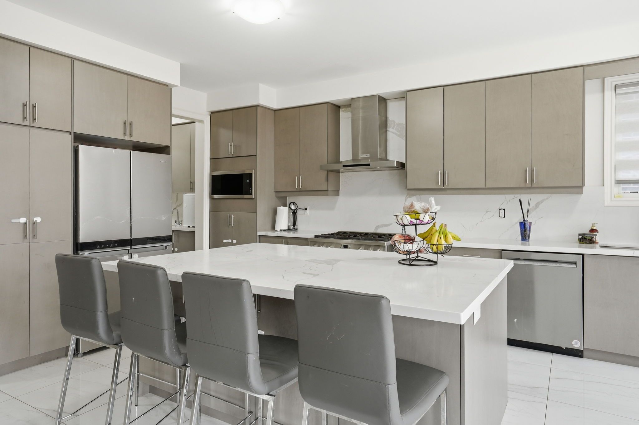• Gourmet kitchen features quartz countertops and a large island for gatherings.