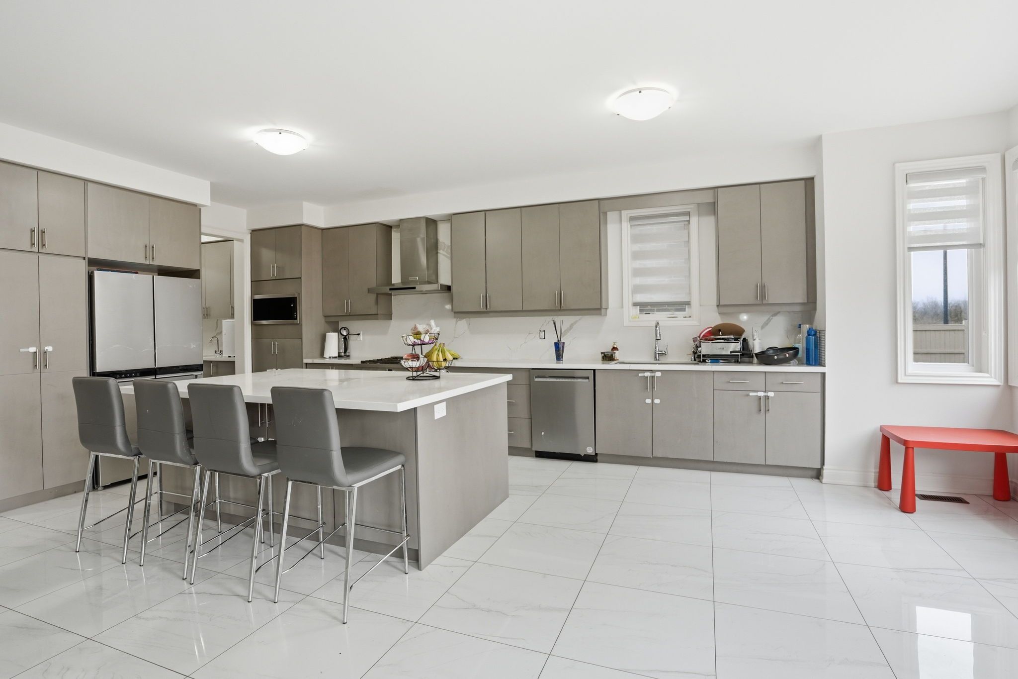 This lovely 2023 greenpark home is nestled in the charming community of waterdown. The spacious residence features four + three bedrooms and four + two bathrooms, with nearly 5,000 square feet of finished living space across three levels. It is ideal for growing families or multi-generational living. The main floor offers a breathtaking open-concept layout with soaring 9-foot ceilings that fill the space with natural light. The gourmet kitchen serves as the heart of the home, complete with luxurious quartz countertops, a massive oversized island perfect for casual meals and gatherings, a convenient butler's pantry, abundant storage and exquisite custom cabinetry. Adjacent to the kitchen, the cozy family room flows effortlessly, making it ideal for year-round entertaining. A tucked-away room off the family area works perfectly as a home office or dedicated play space for children. Upstairs, you will find four generous bedrooms, three full bathrooms and a convenient laundry room. Oversized closets provide ample storage, while beautiful hardwood flooring throughout the principal areas adds timeless elegance and easy maintenance. The fully finished lower level stands out with three additional bedrooms and two full bathrooms, offering excellent potential for an in-law suite or guest accommodation. Abundant windows bring in plenty of natural light, complemented by modern finishes and greenpark's renowned quality craftsmanship. Located in beautiful waterdown, the home is close to trails, amenities, schools and provides easy access to burlington and hamilton. Don't miss this rare chance to own a near-new executive home in one of the area's most desirable neighborhoods! Rsa.