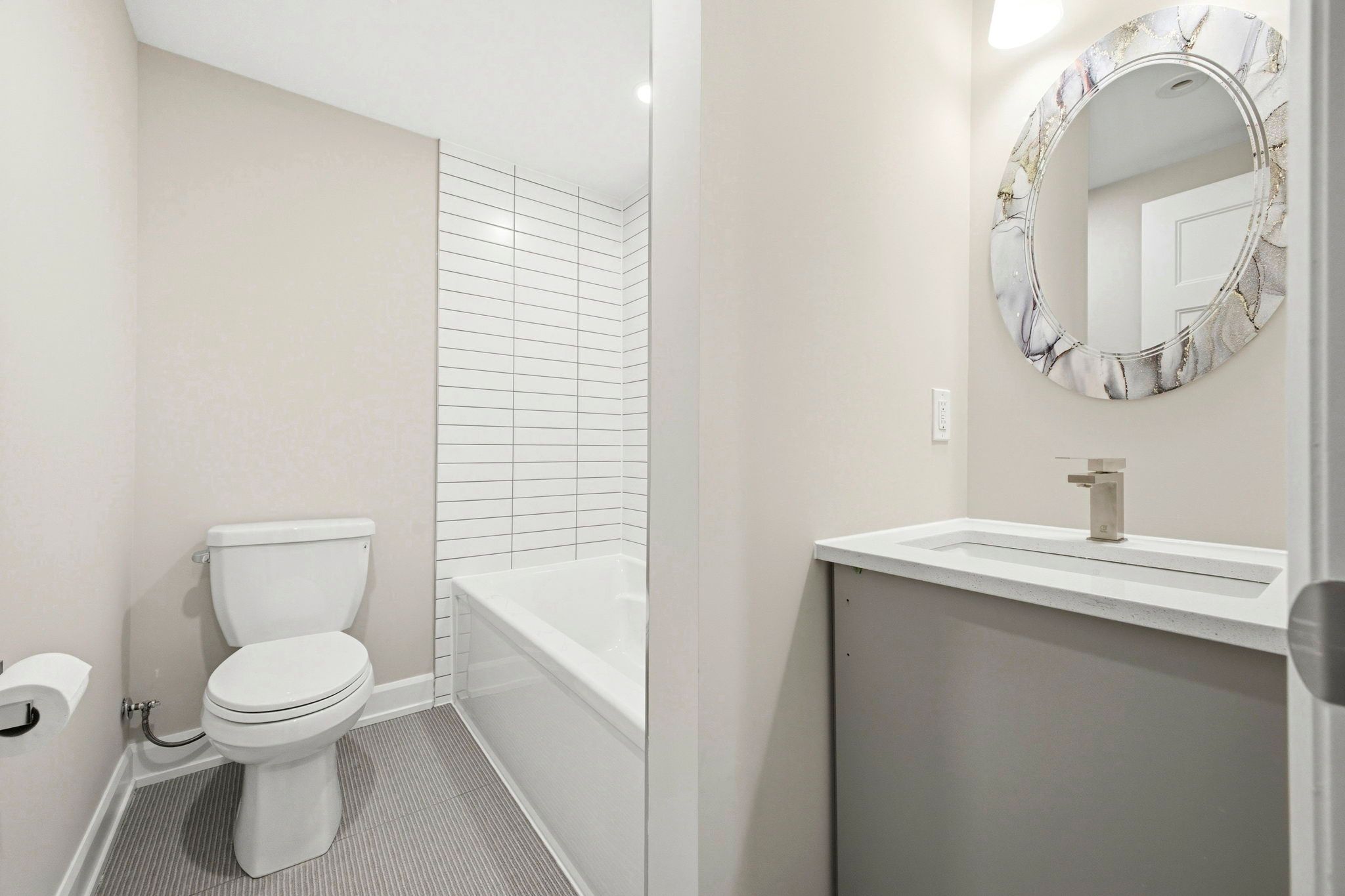 • Open-concept layout with upscale finishes and modern kitchen.