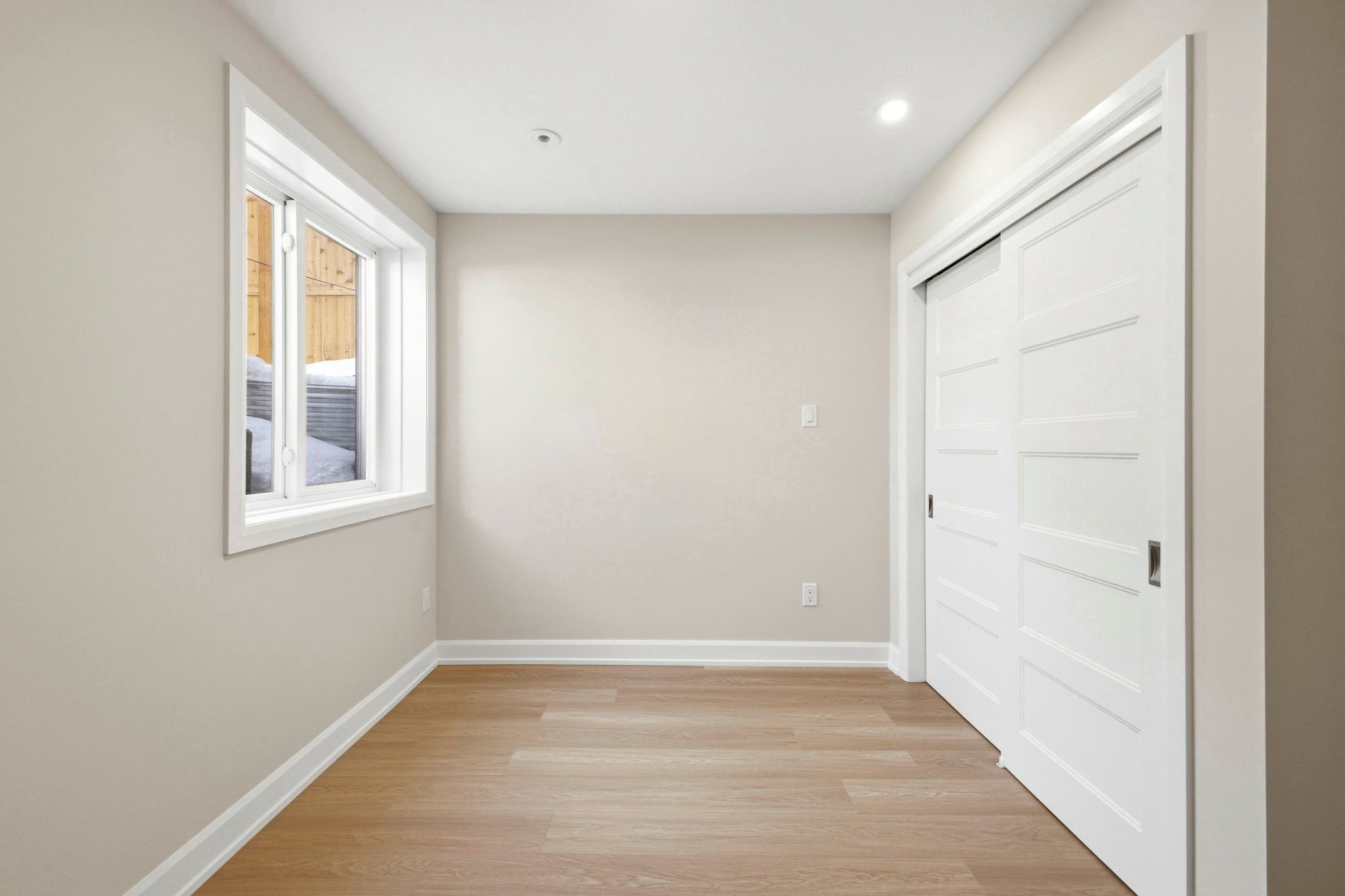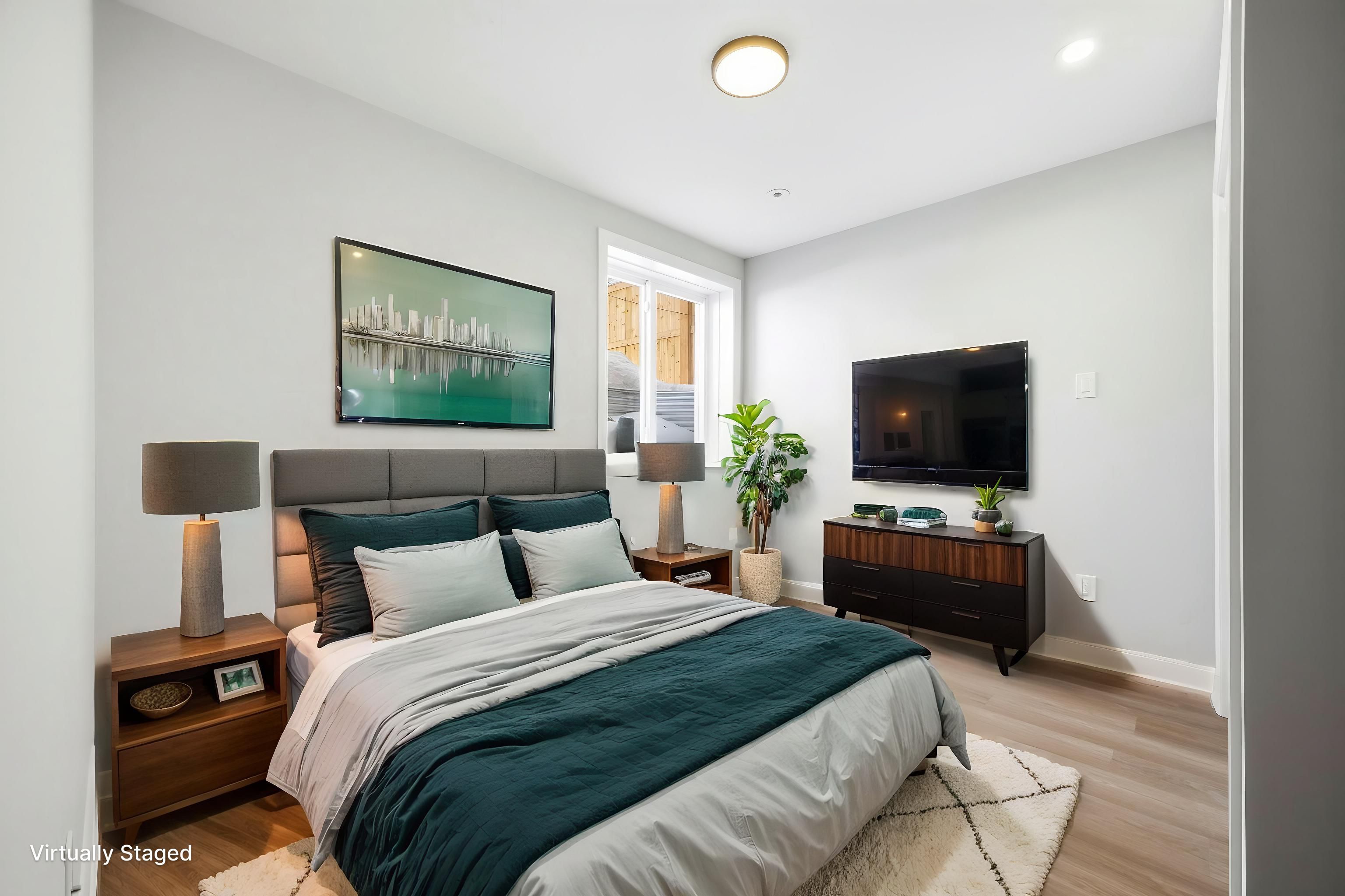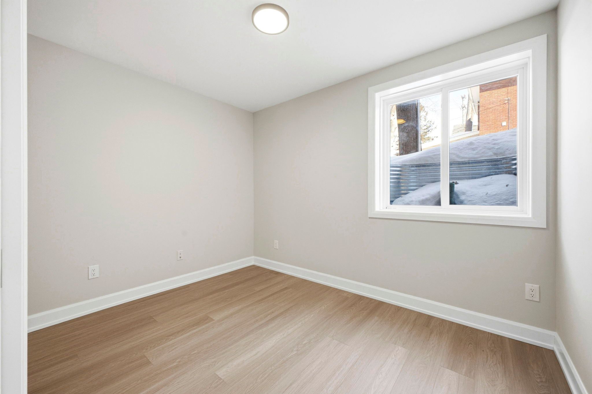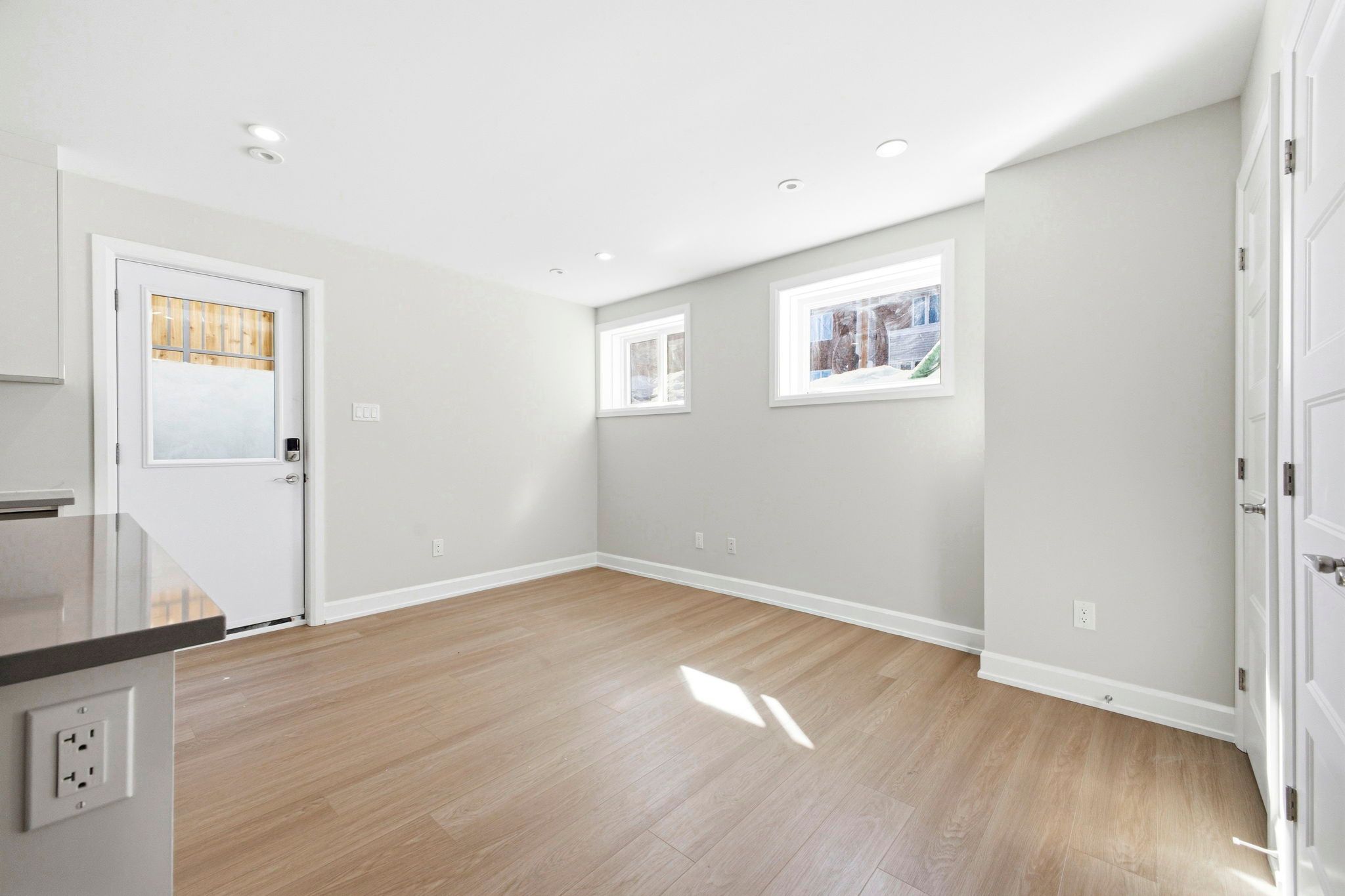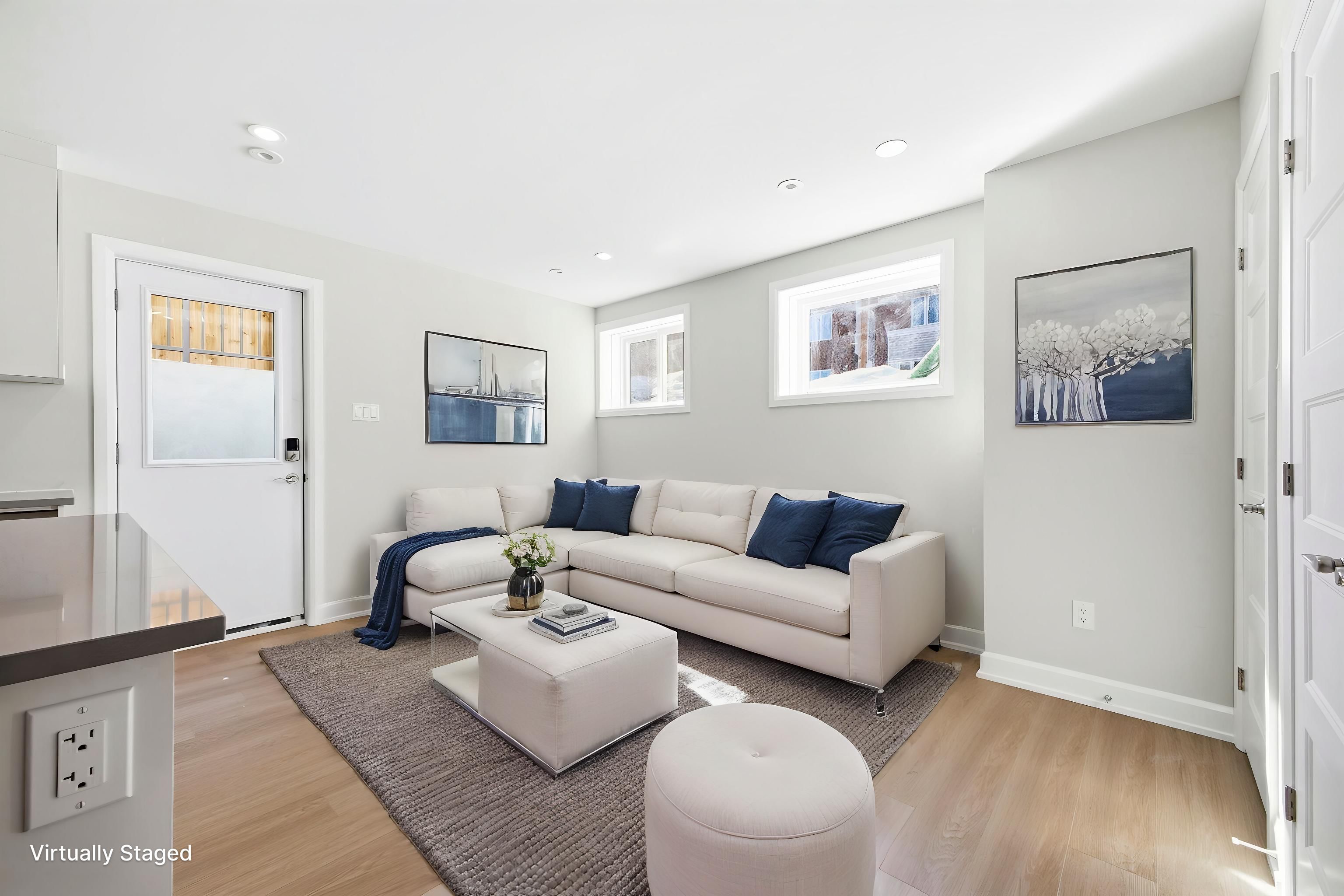 • Bright and airy lower-level apartment with oversized windows.